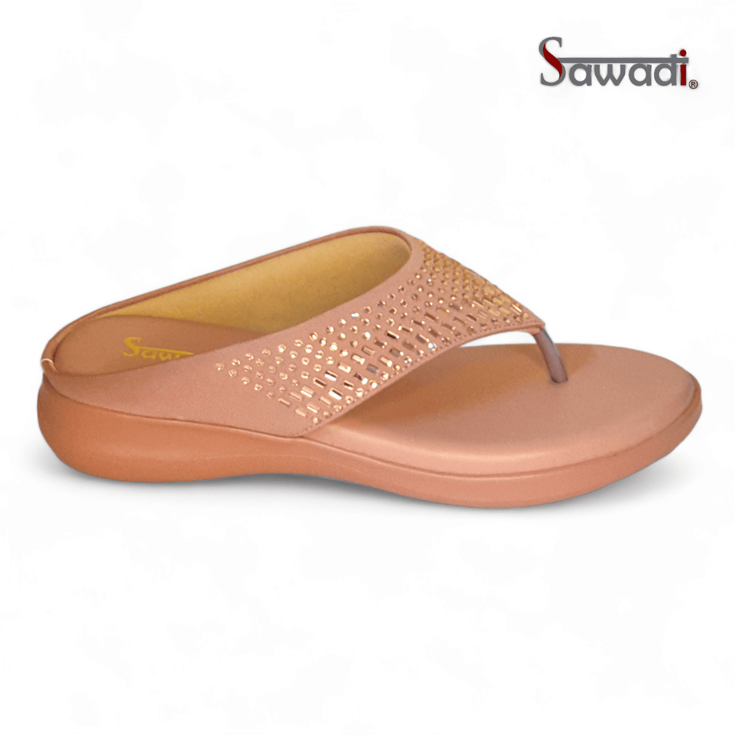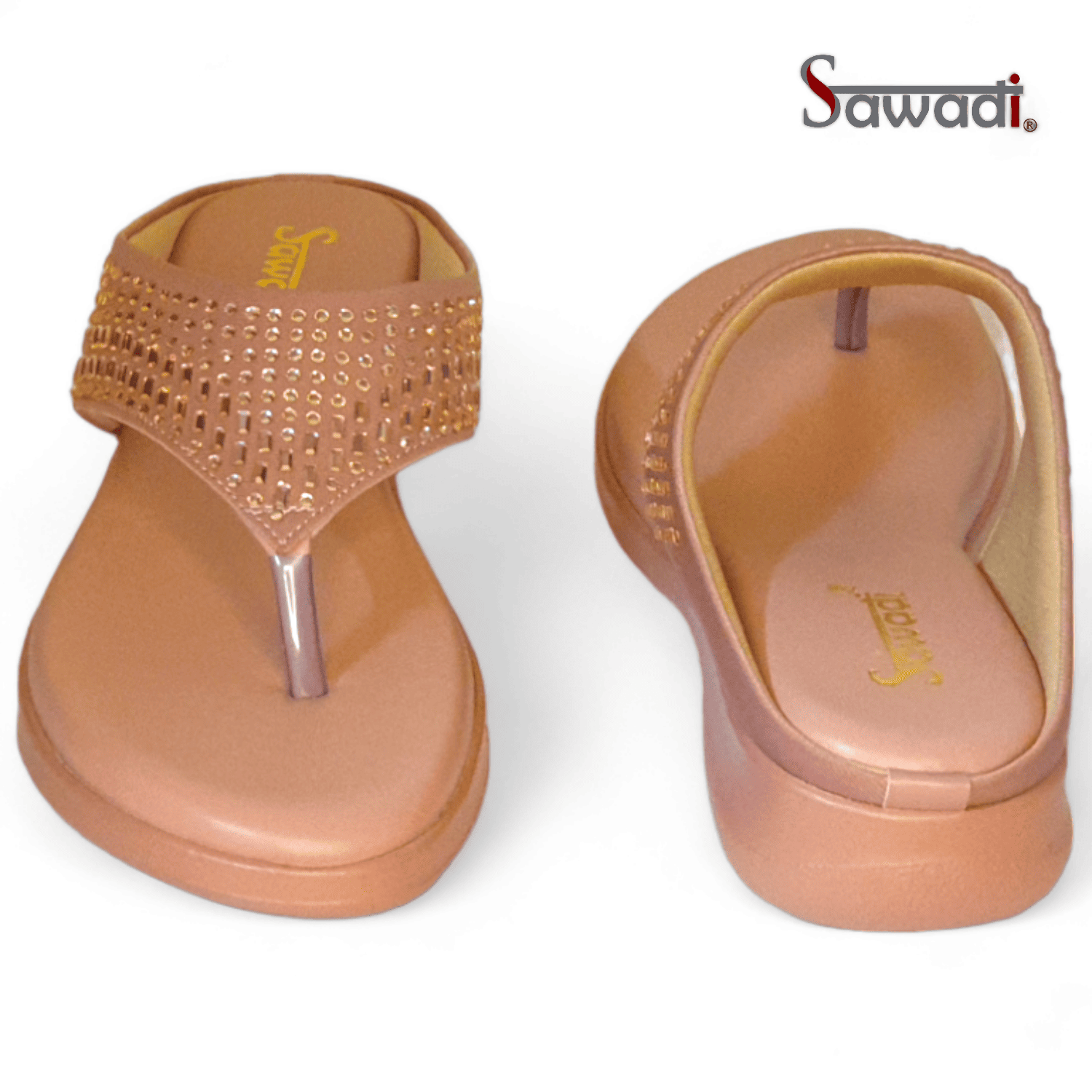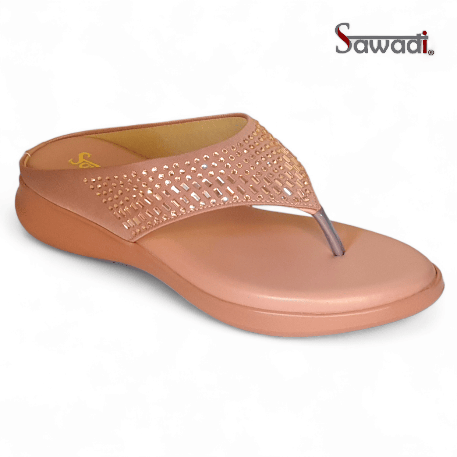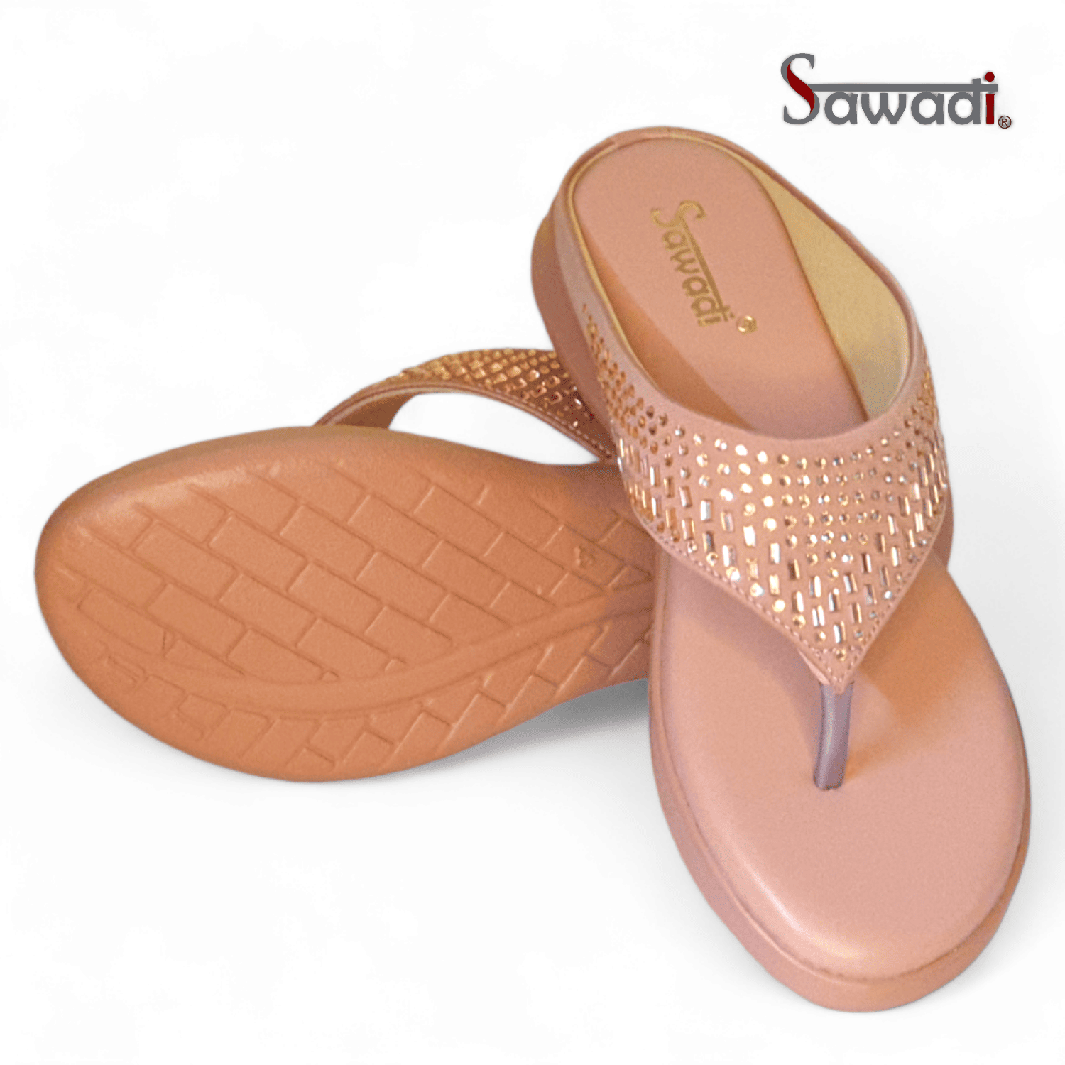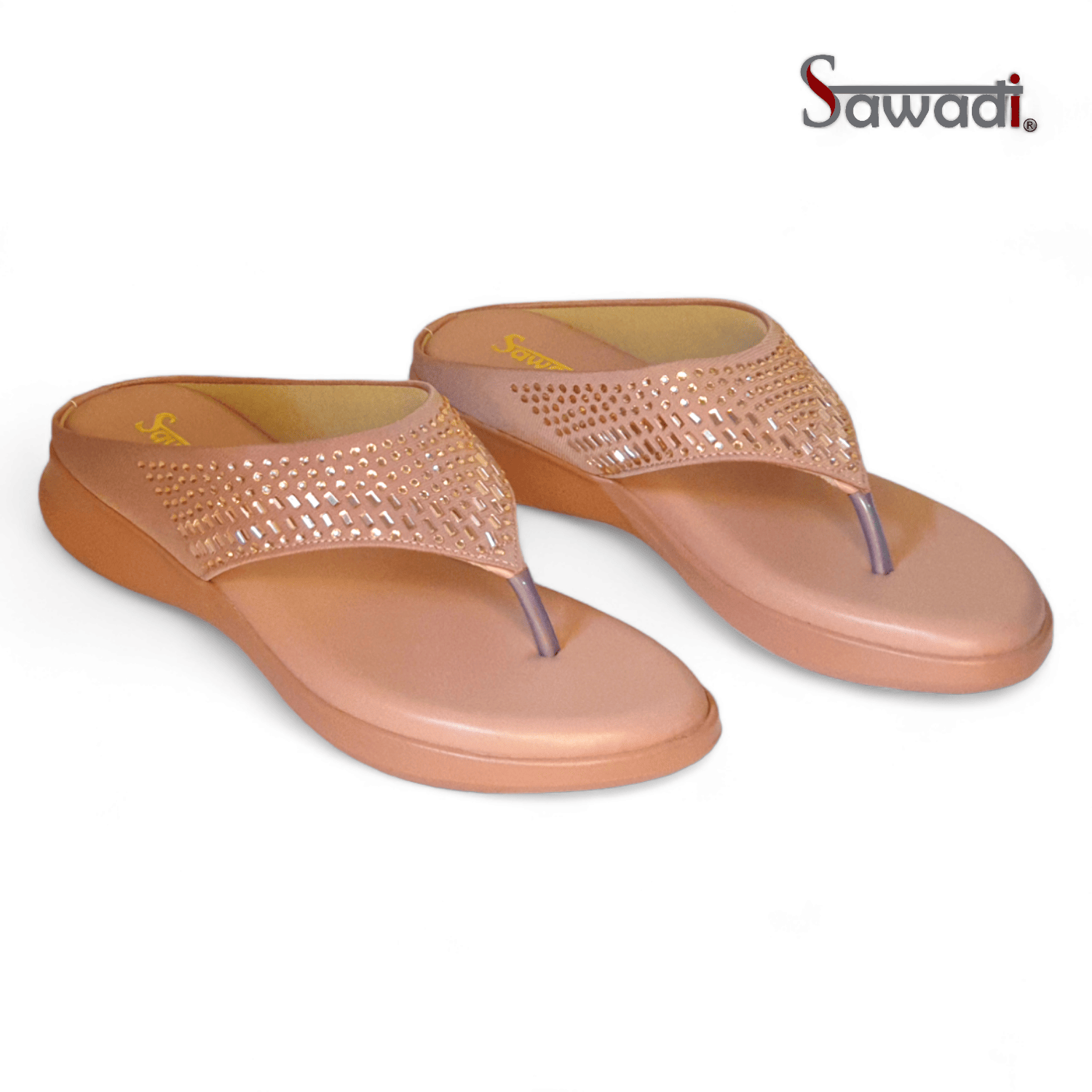 Home / Products / Women's Peach Wedge Sandals with Laser Cut Design | Comfortable Slip-On Toe Strap Footwear – Sawadimart ₹ 390 - 599