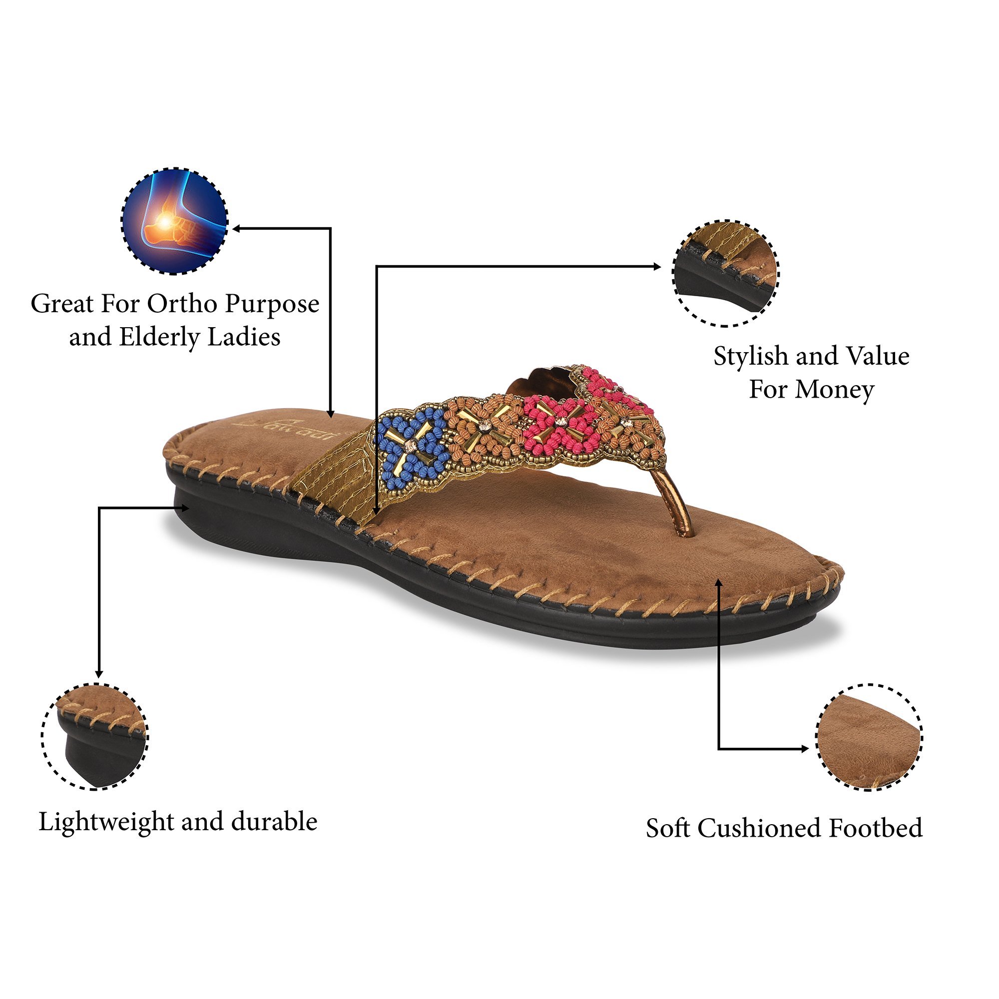 Soft,Padded and Cushioned Footbed offers comfort to the feet; Light weight EVA sole offers durablity and all day comfort; Value for money: Good quality product available at very competitive prices; Widely used by Women of all ages, Specially Old agd, Expecting mothers, Women with foot and knee pain / Arthritis etc