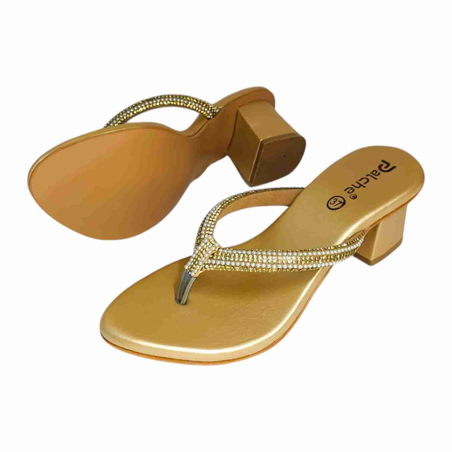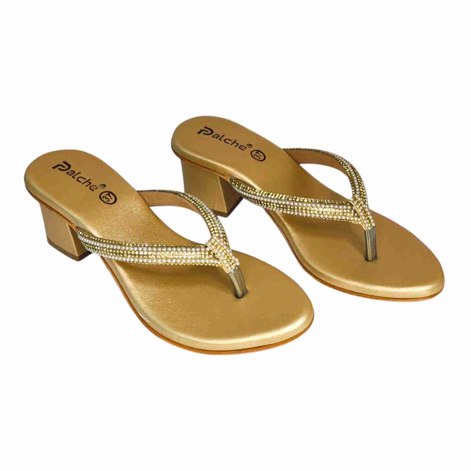 Home / Products / Palche Women’s Embellished Block Heel Thong Sandals – Stylish Party Wear Slip-Ons Price inclusive of all tax