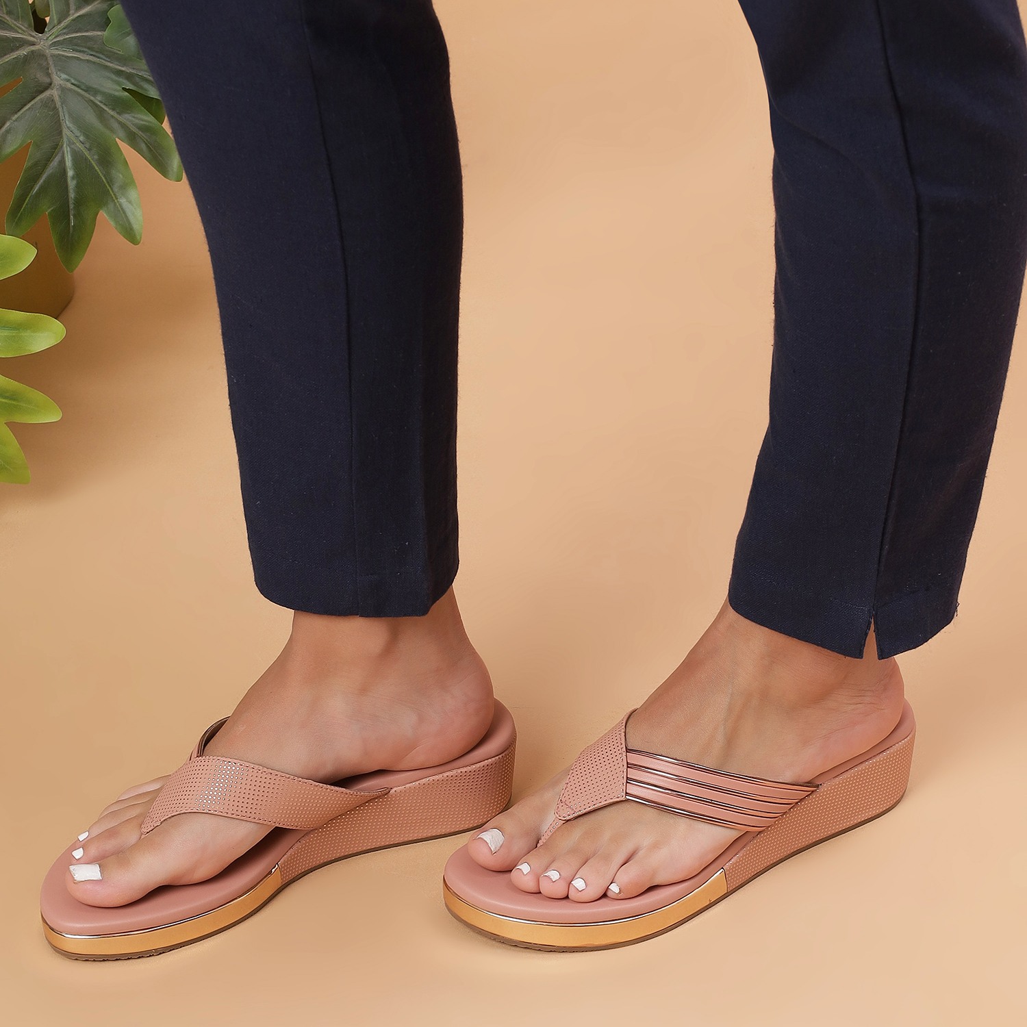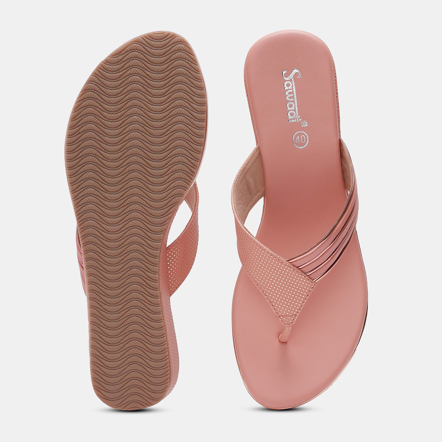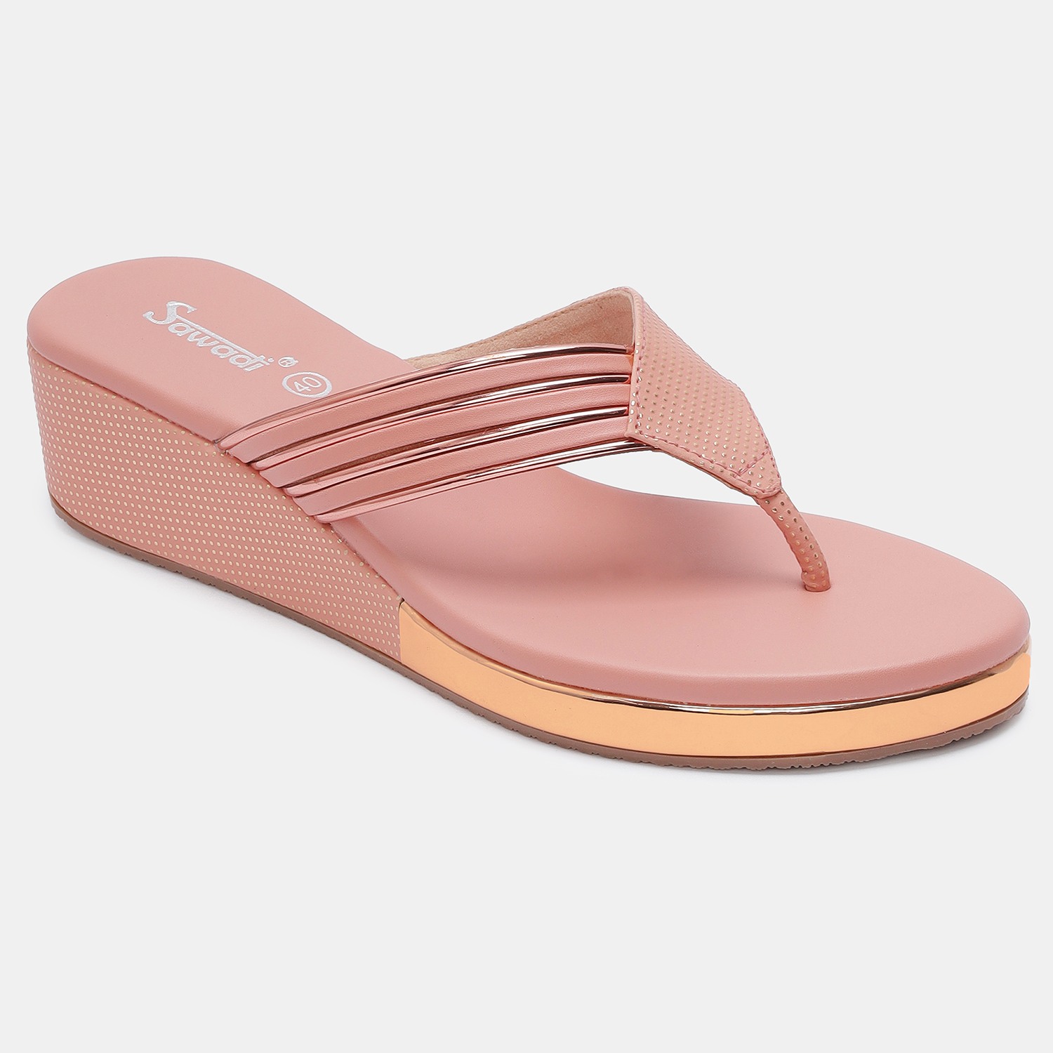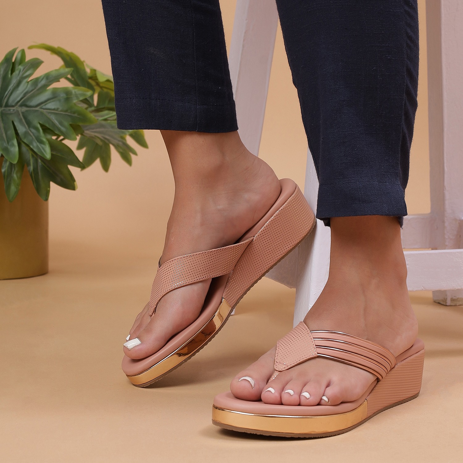 Home / Products / Stylish Peach Wedge Heel Sandals for Women | Comfortable Slip-On Platform Footwear Price inclusive of all tax