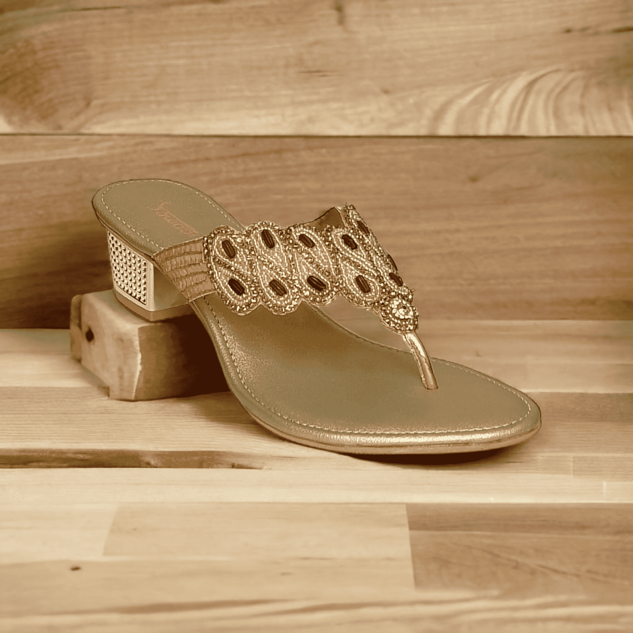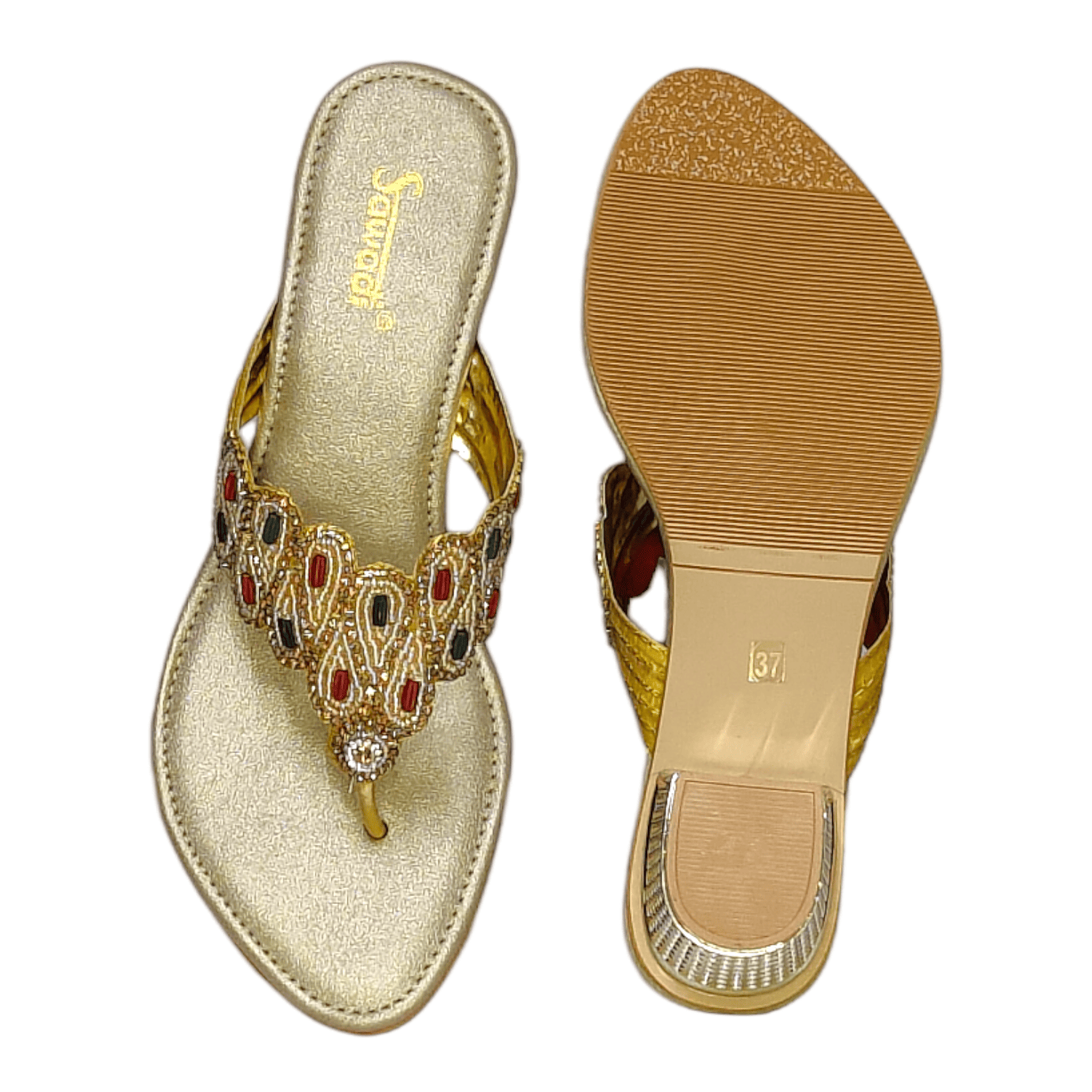 Women's Gold Barmi Heel Chappals from SAWADI