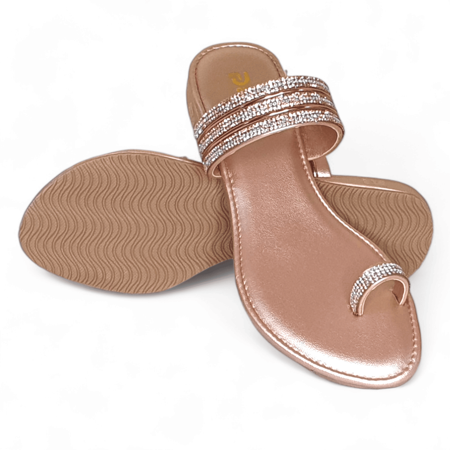 Home / Products / Elegant Gold Embellished One Toe Flats - Perfect Party & Casual Sandals | SawadiMart Price inclusive of all tax