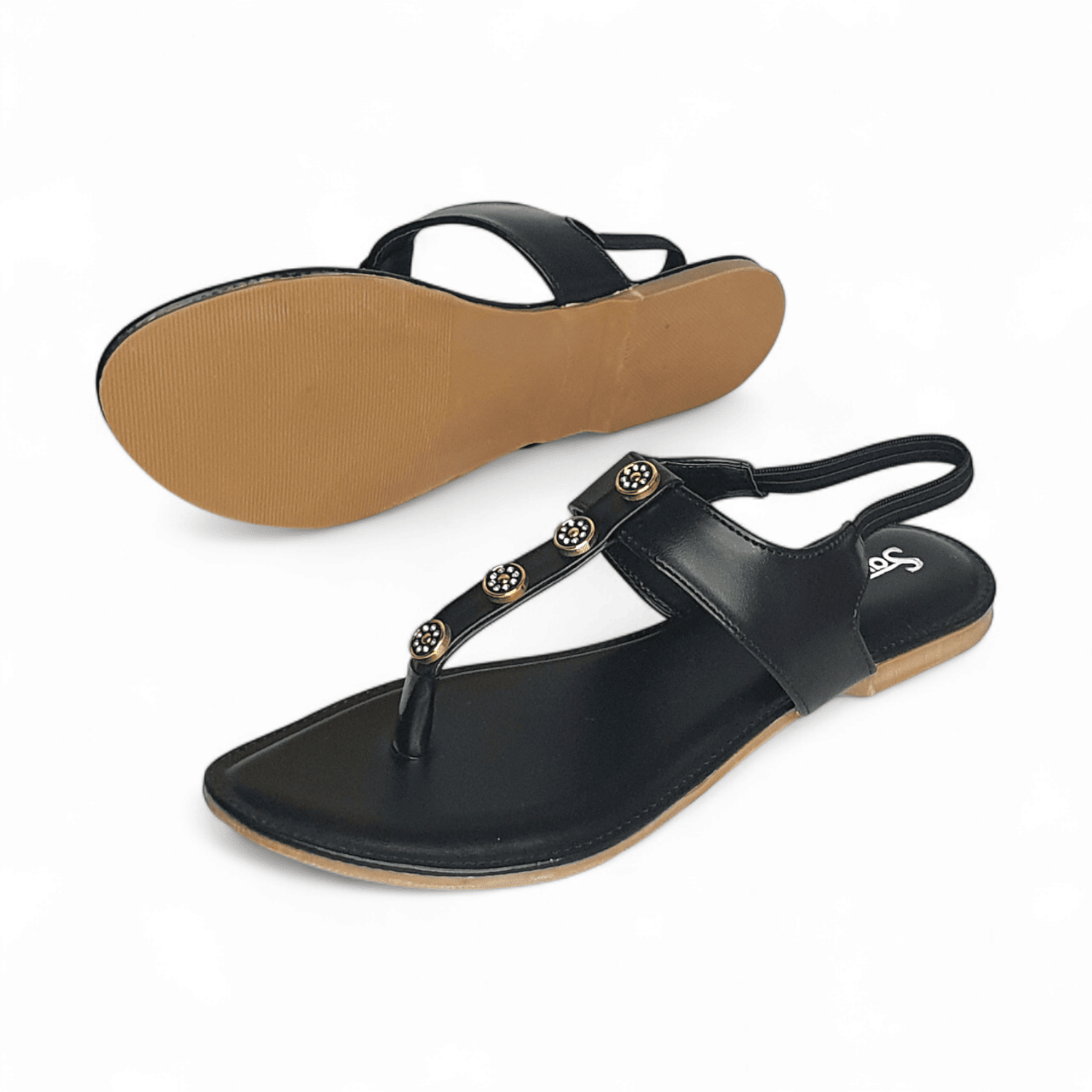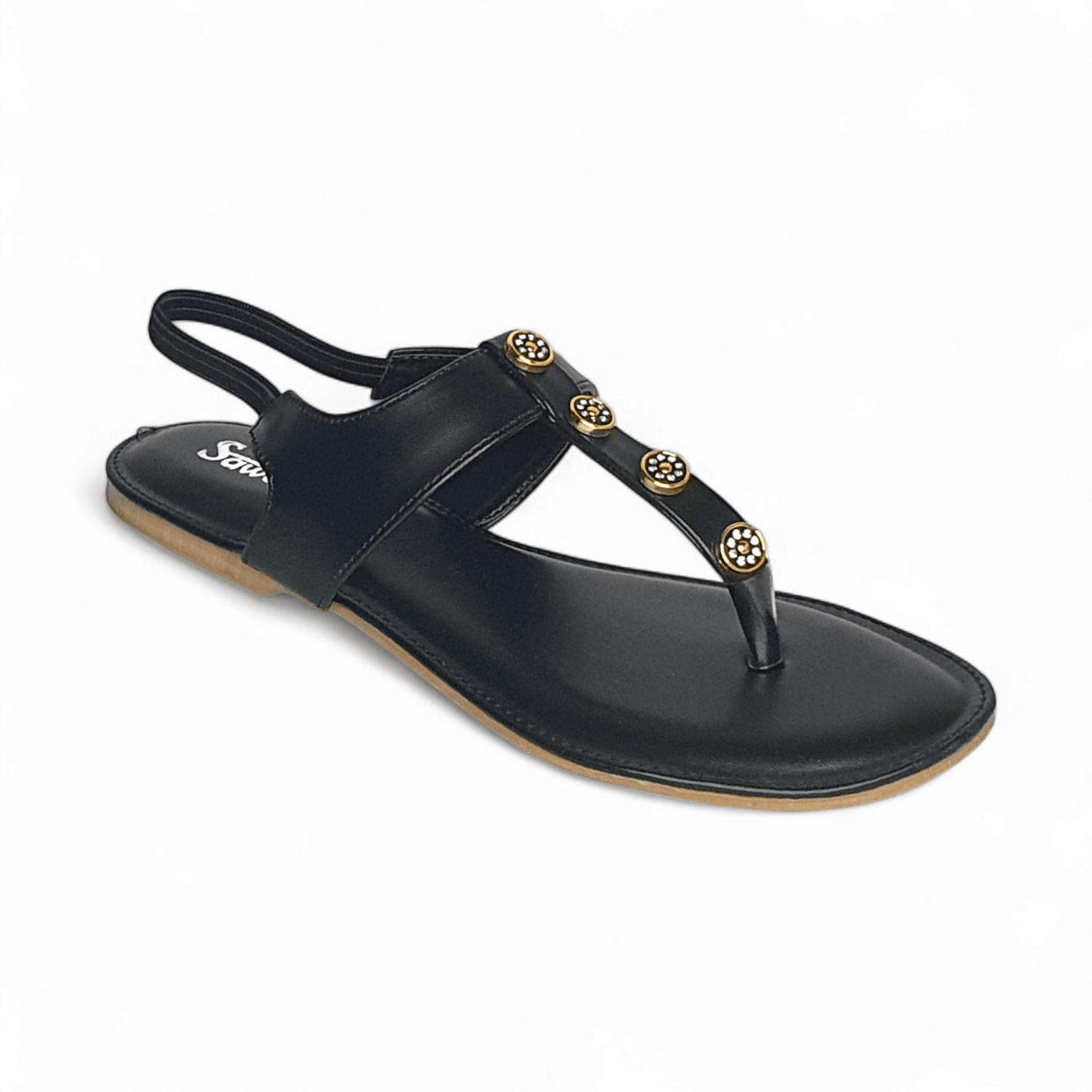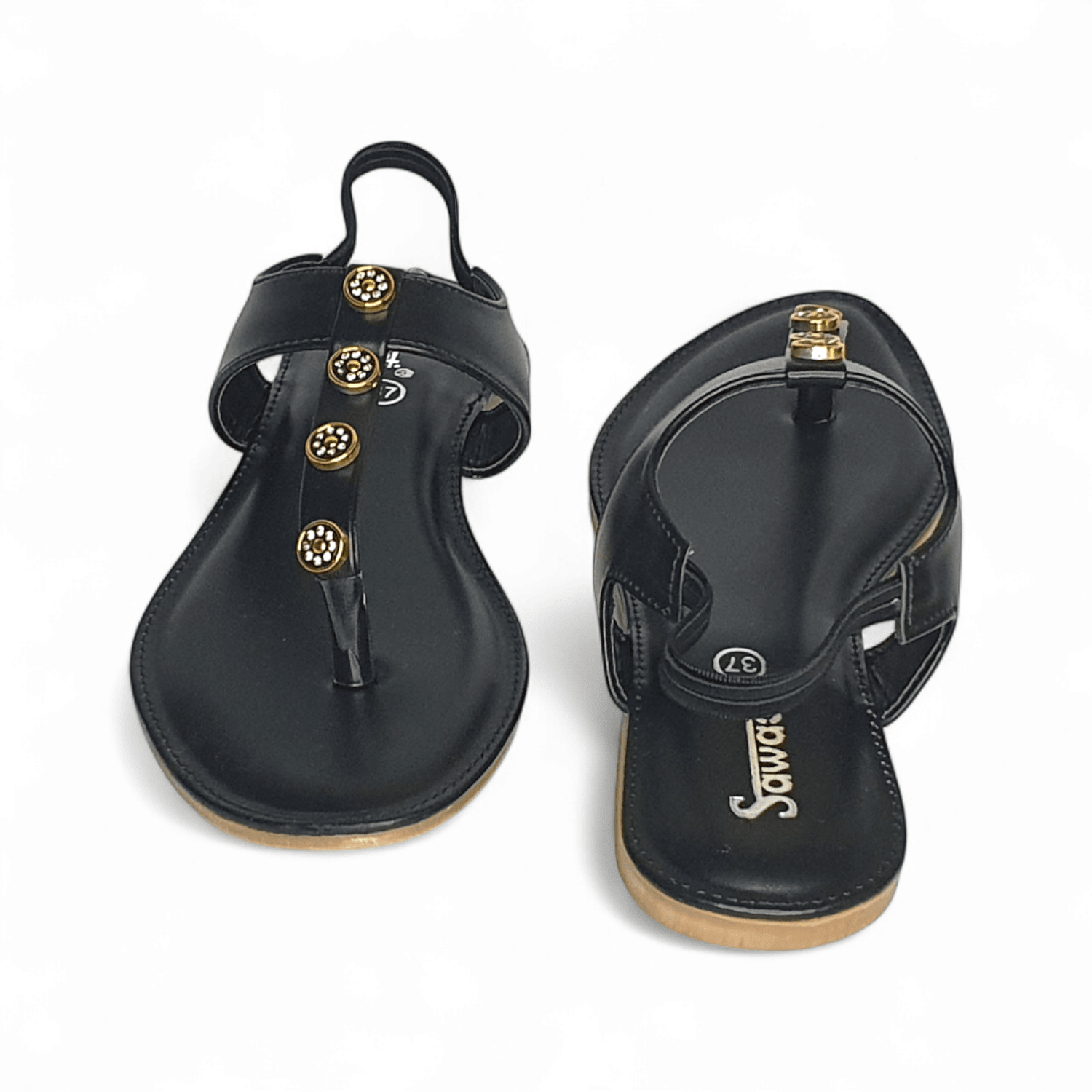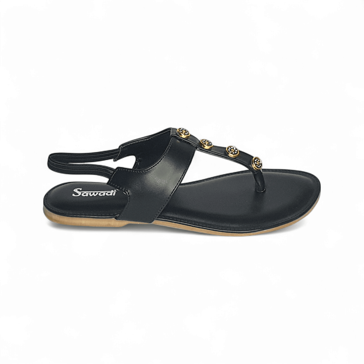 Home / Products / Black Embellished Flat Sandals for Women – Elegant Slip-On Comfort by Sawadi Price inclusive of all tax