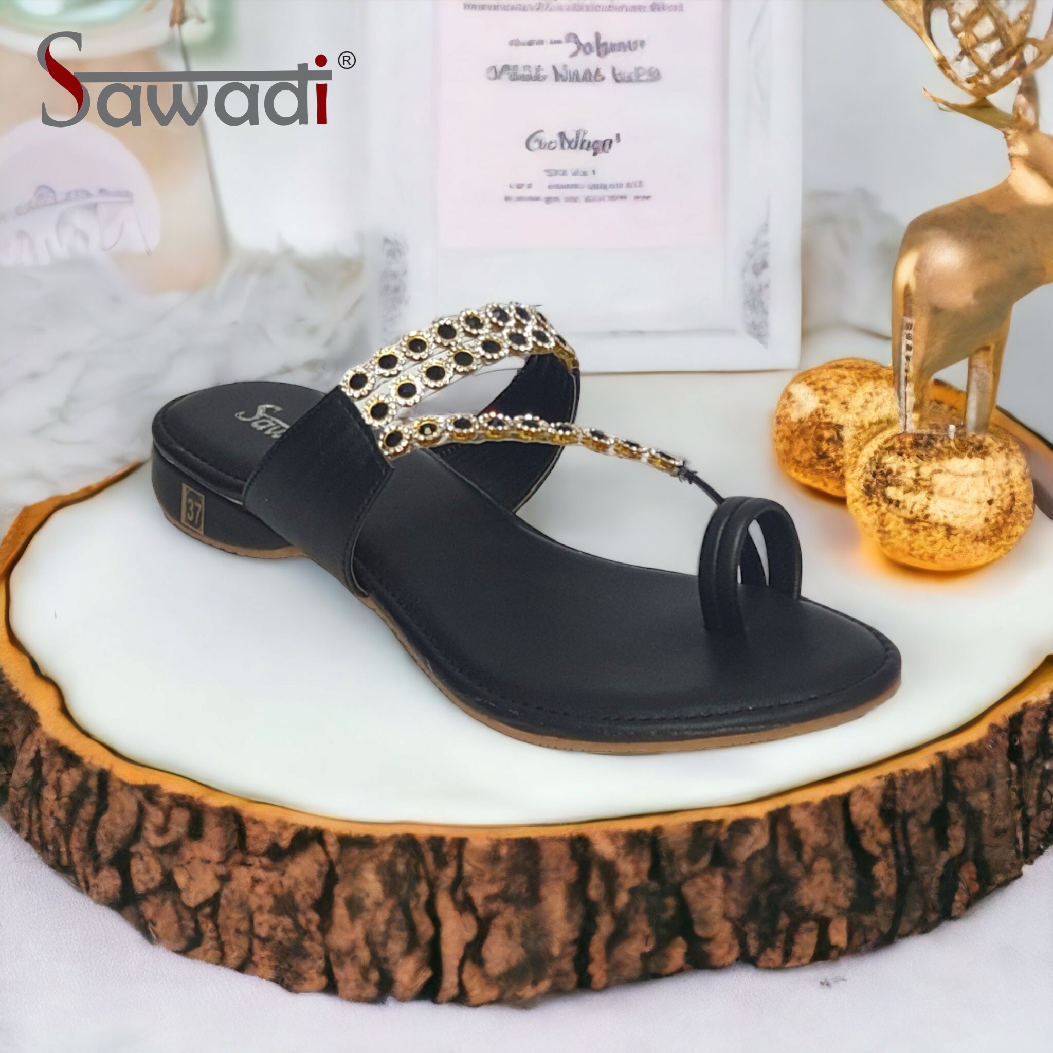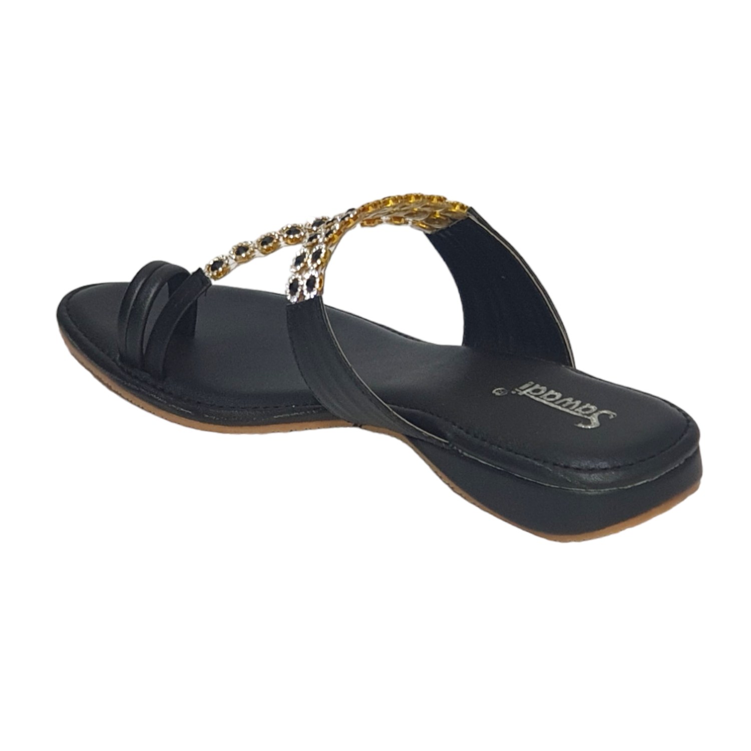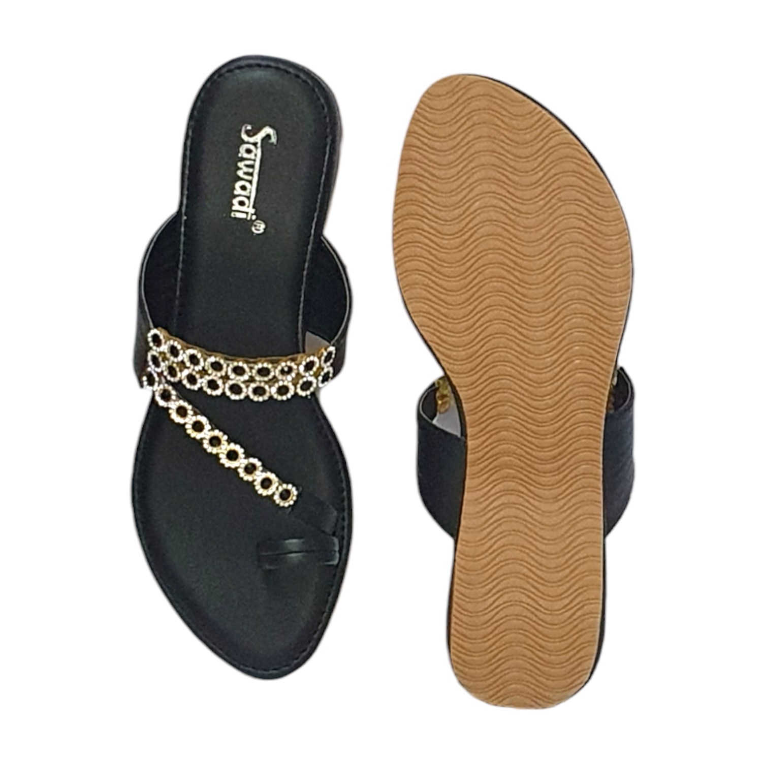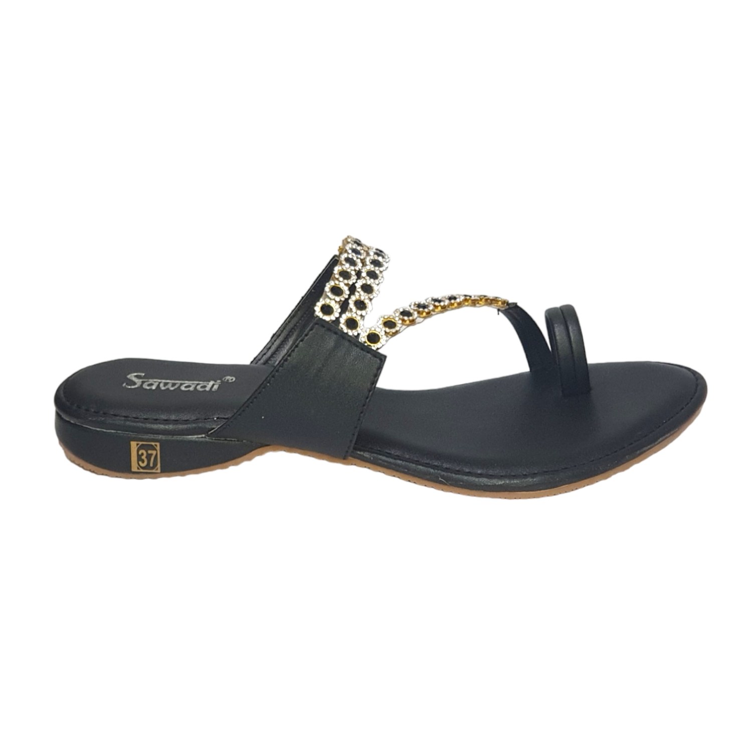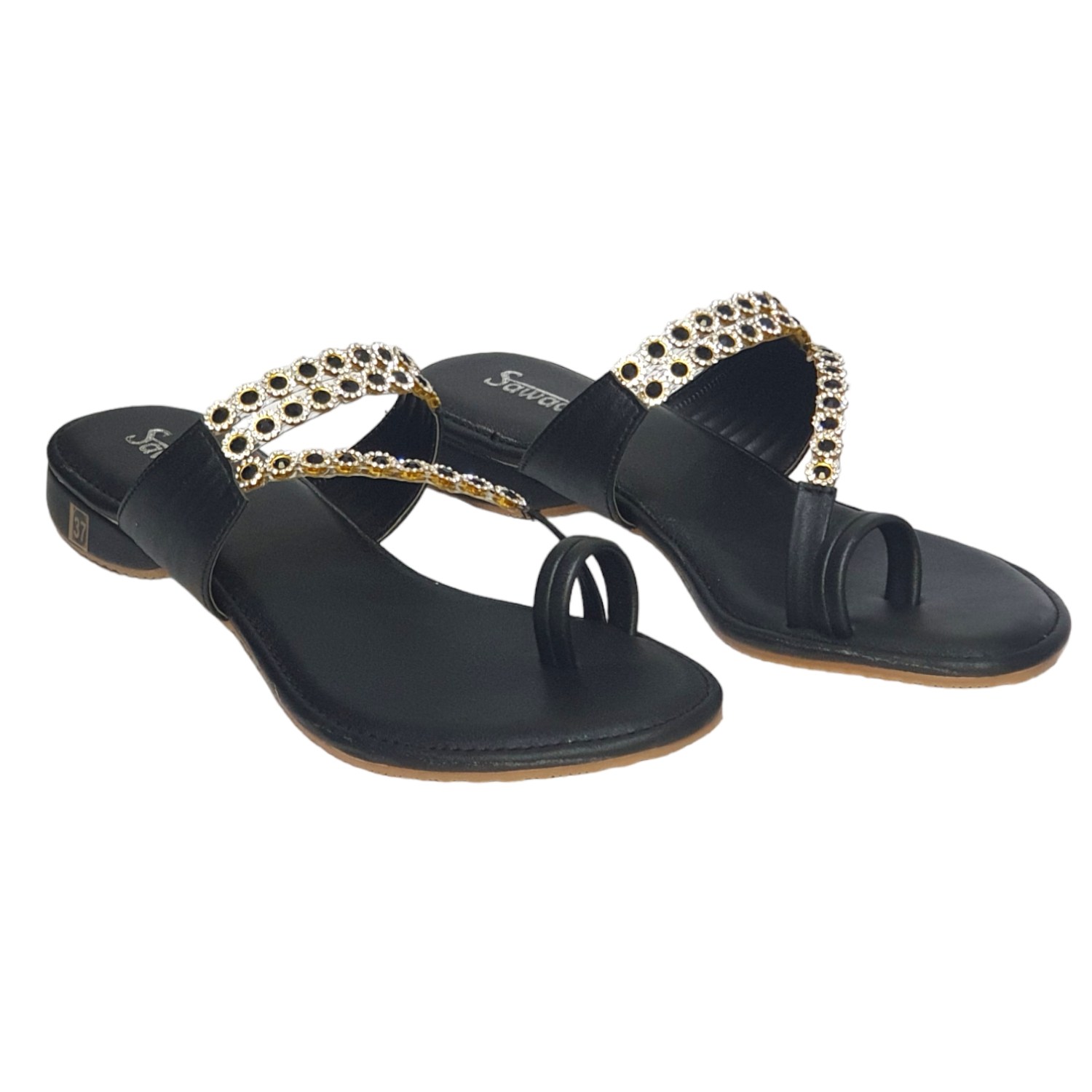 Home / Products / Sawadi Women Kashti Heel Toe_Ring chappals Women's Black Heel Toe_Ring Chappals by Sawadi