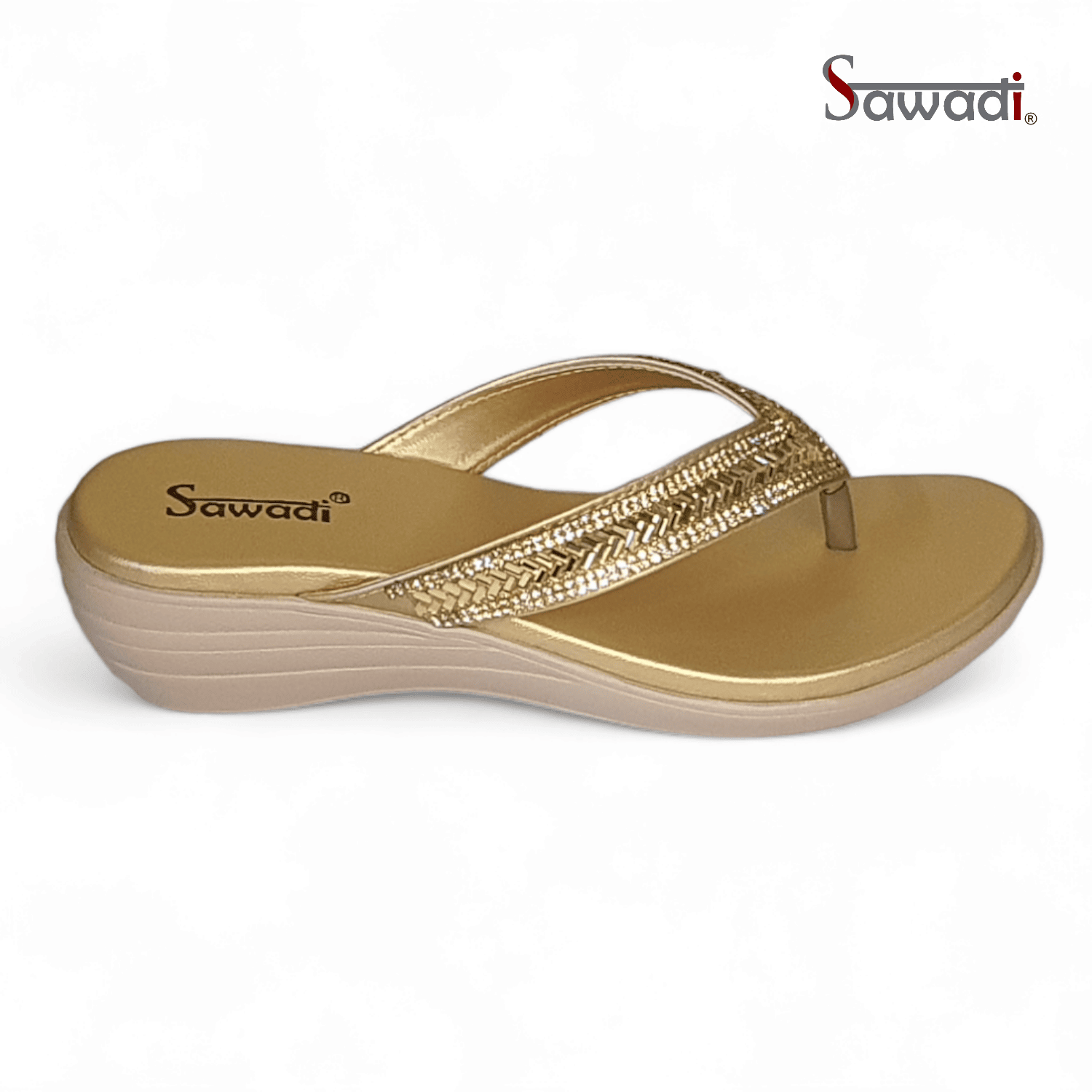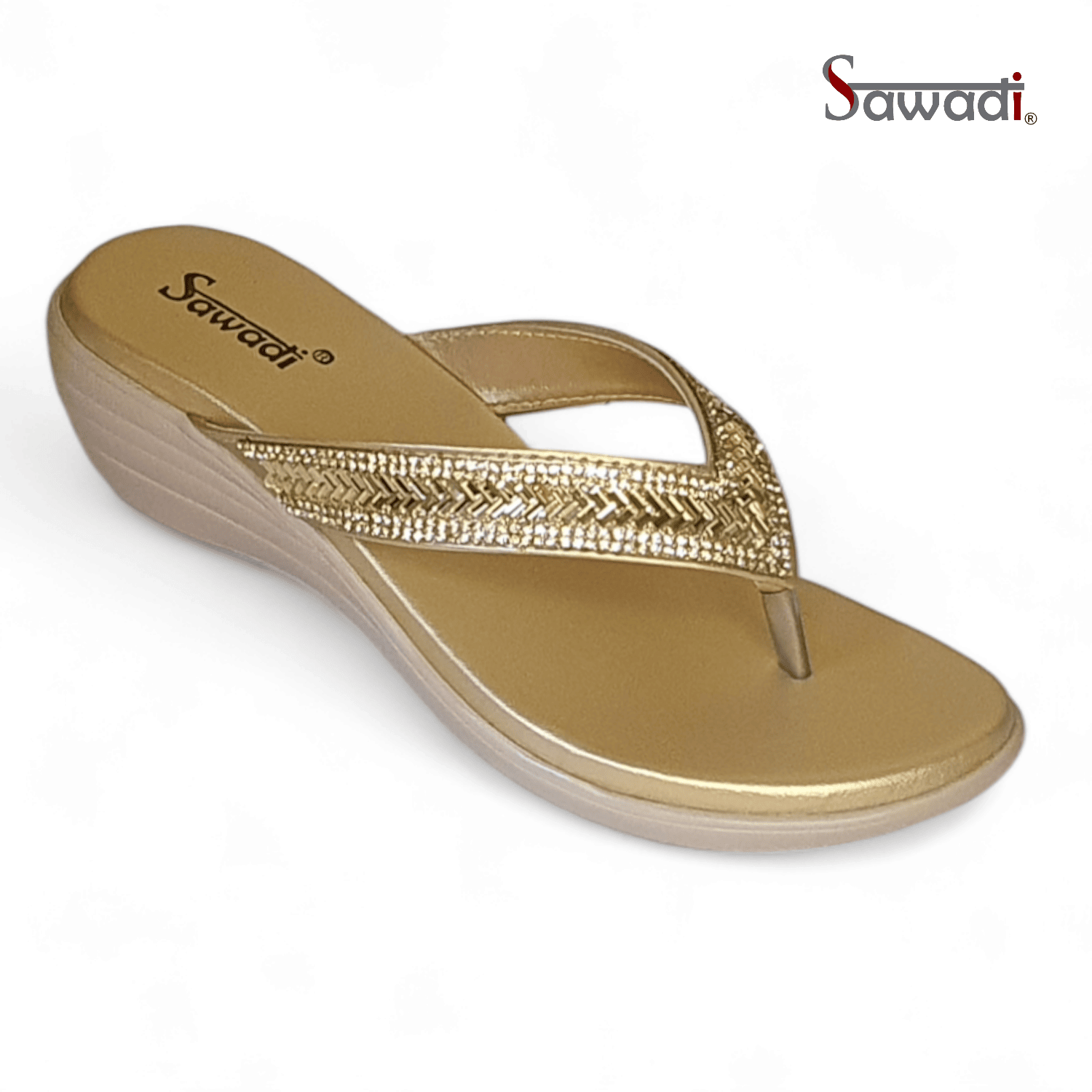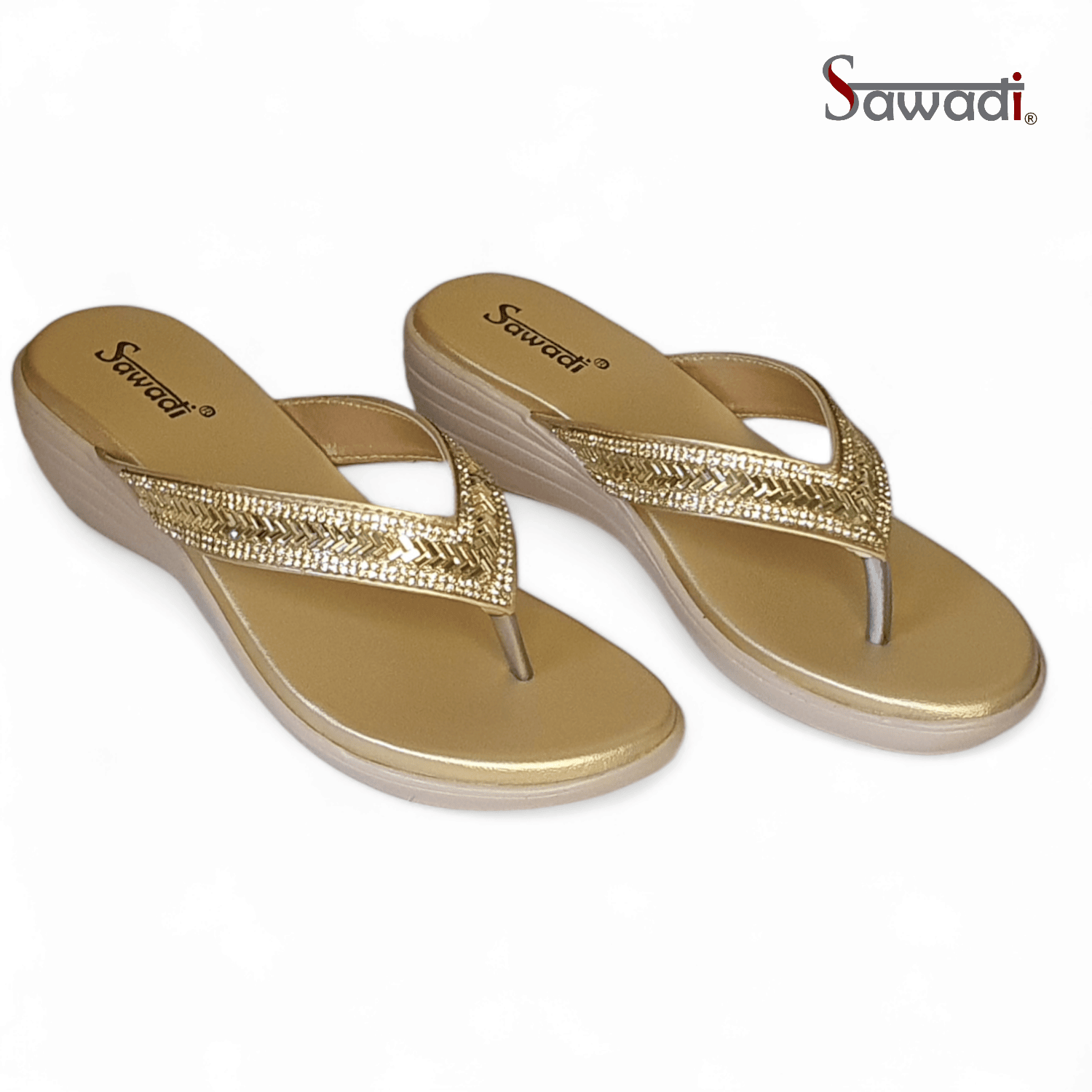 Golden Embellished Wedge Flip-Flop Sandals for Women – Ethnic & Casual Wear
