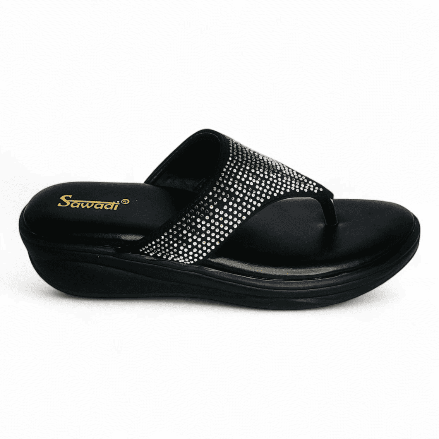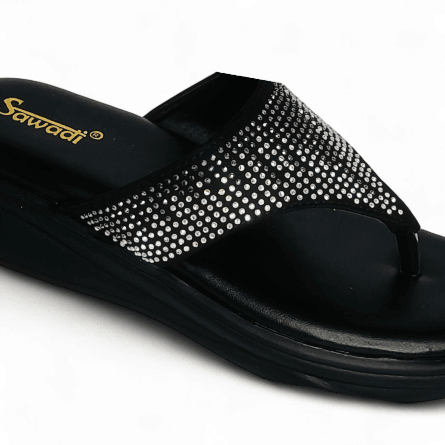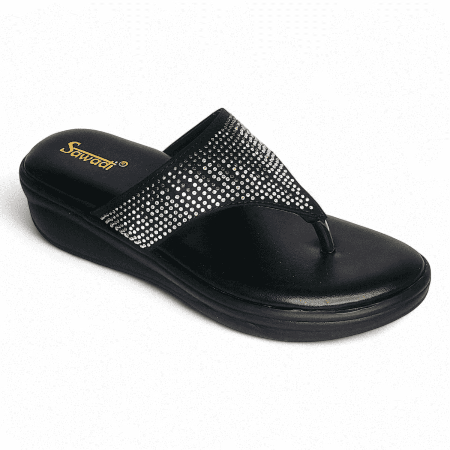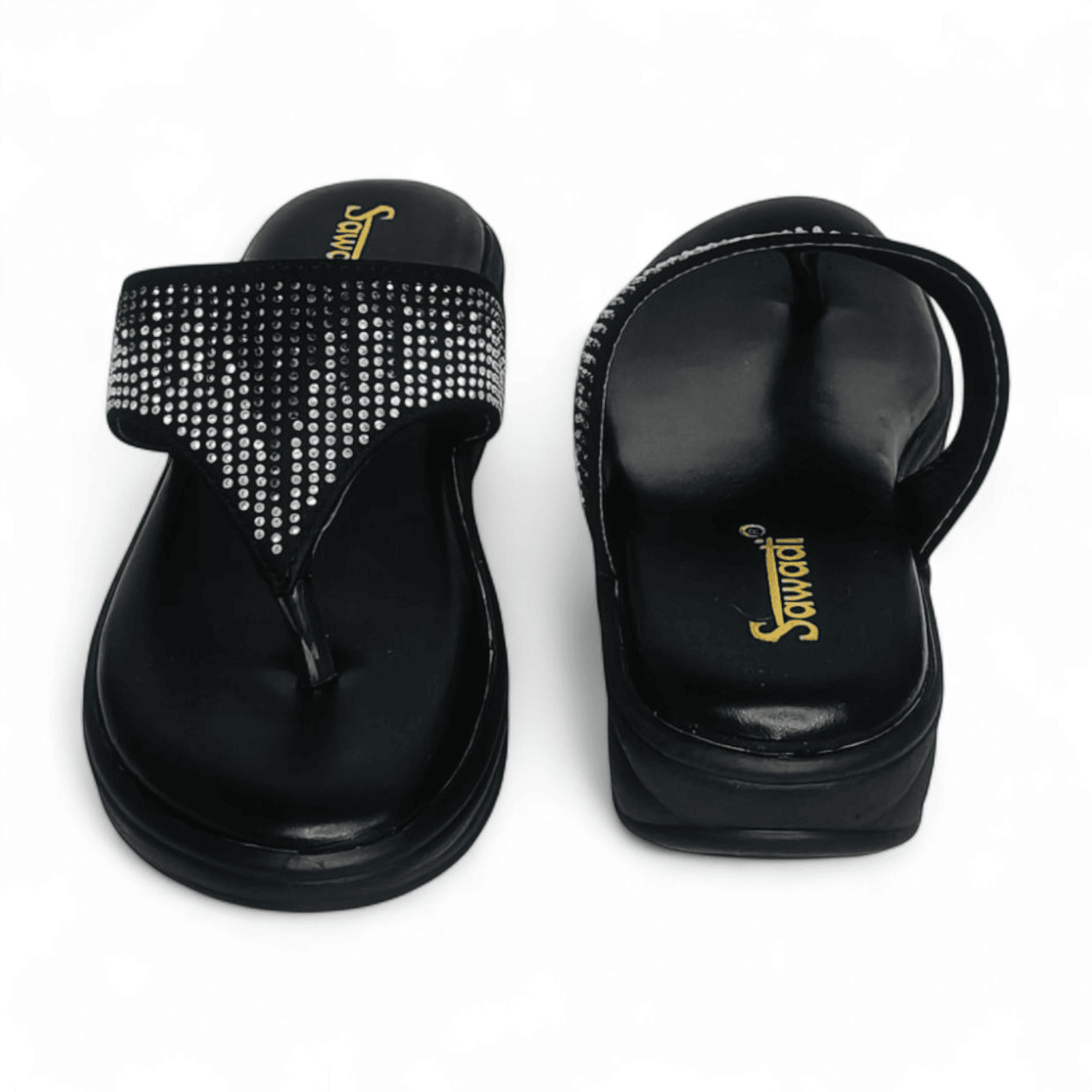 Home / Products / Sawadi Women’s Soft Cushioned Thong Flats with Stone-Embellished Broad Strap – Daily & Party Wear Slip-ons Price inclusive of all tax