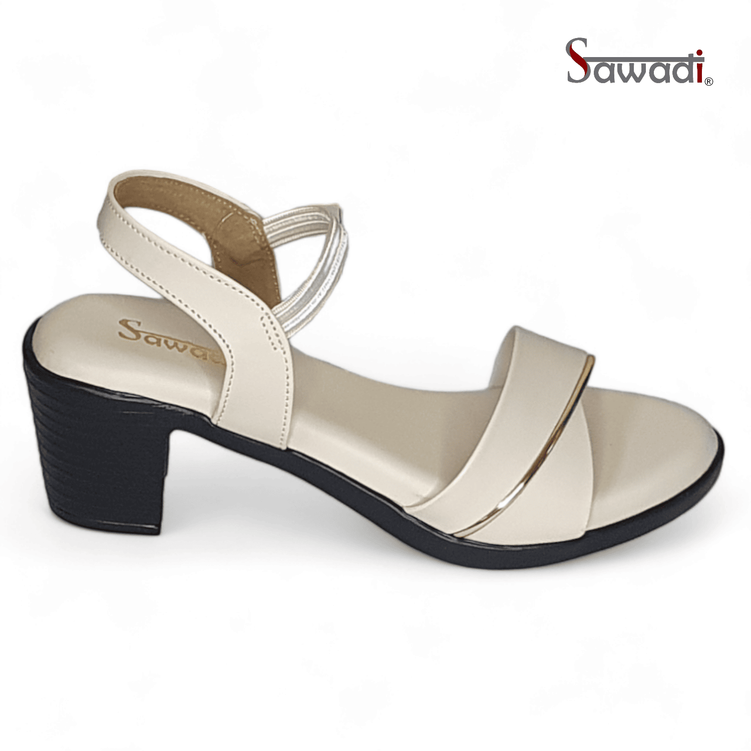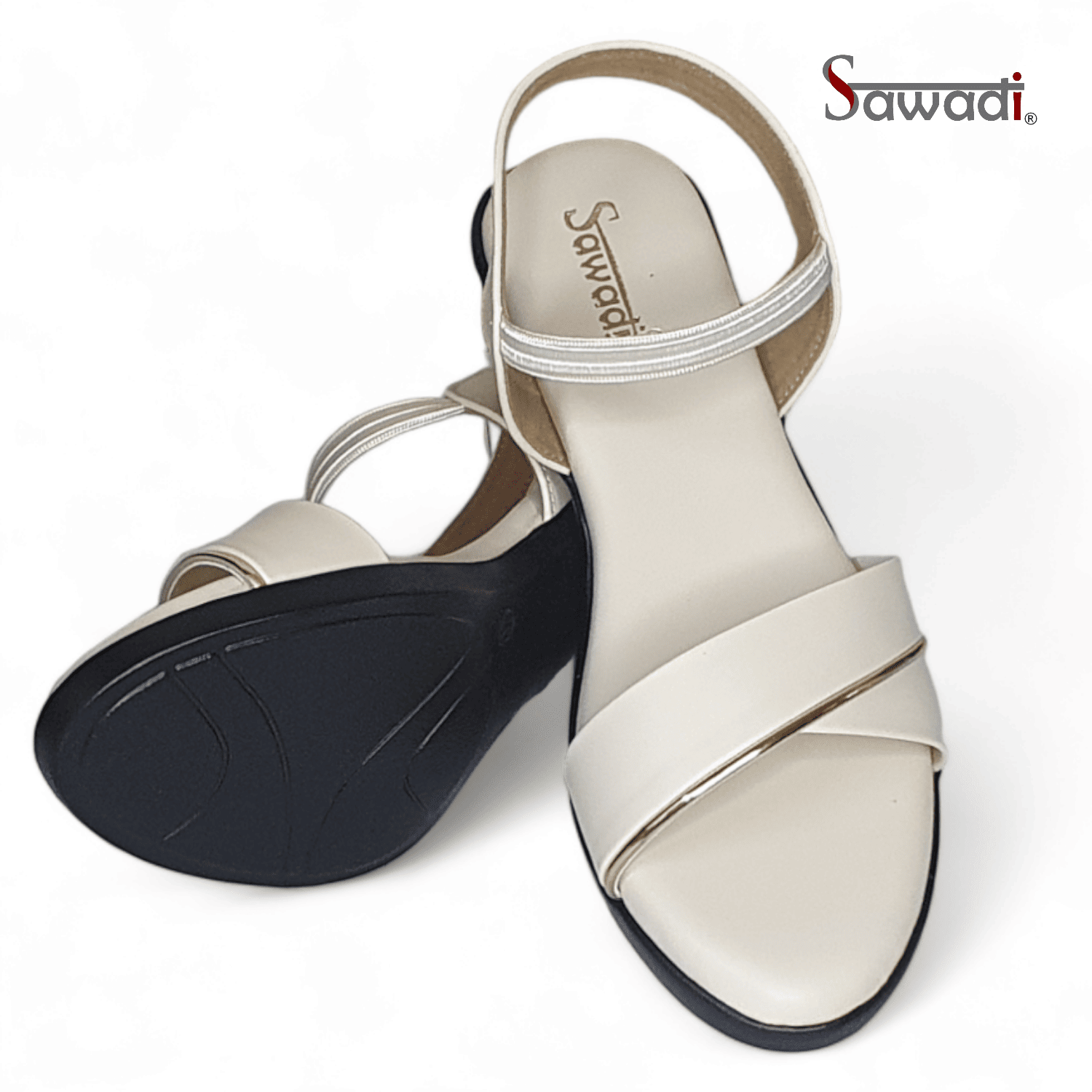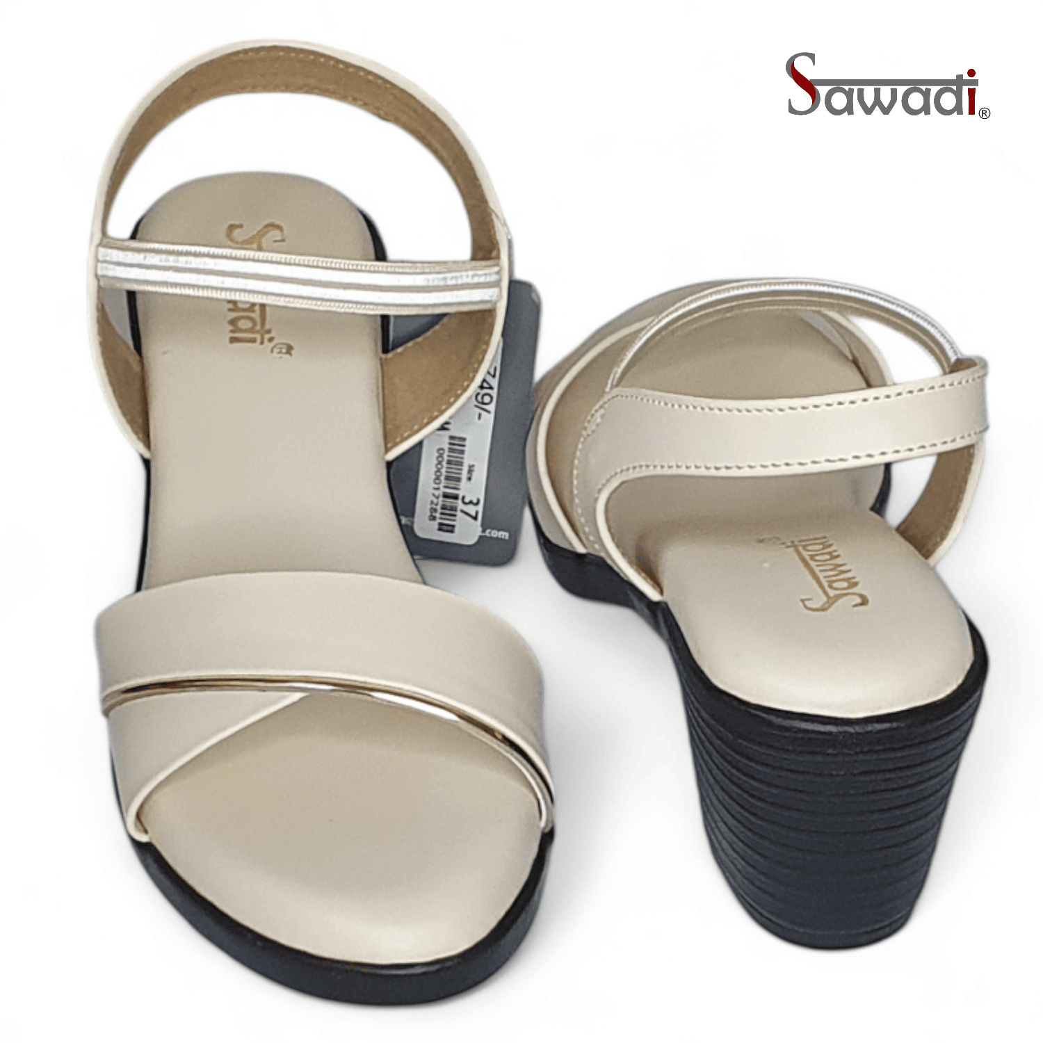 Sawadi Women’s Stylish Block Heel Sandals with Double Strap & Gold Trim