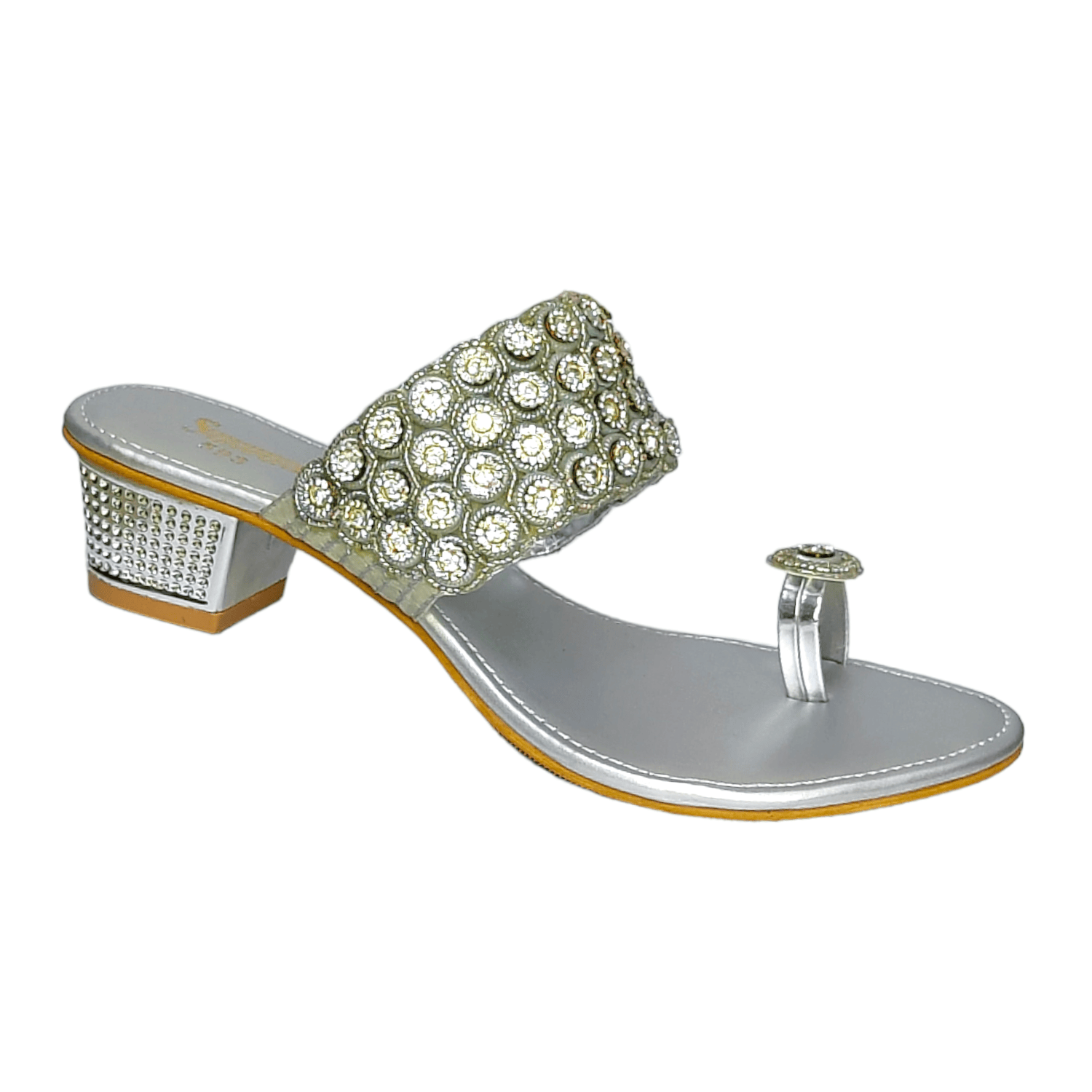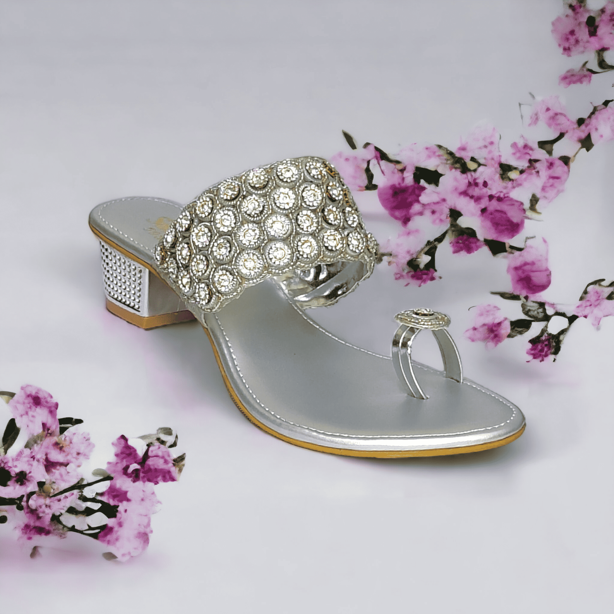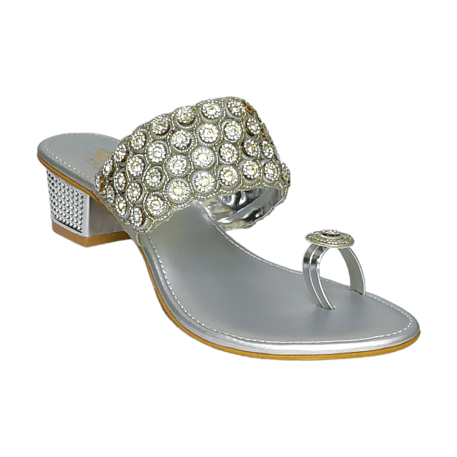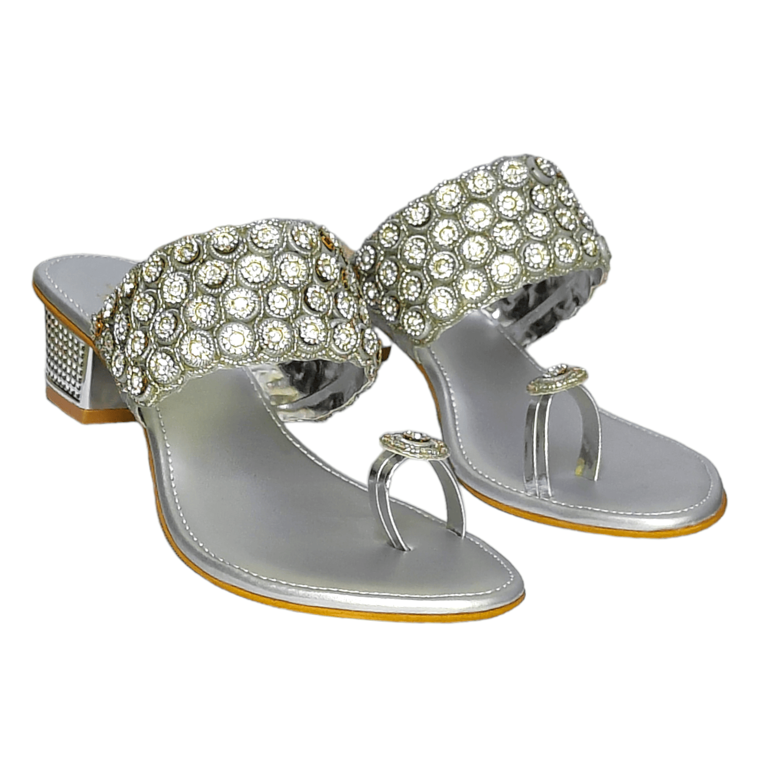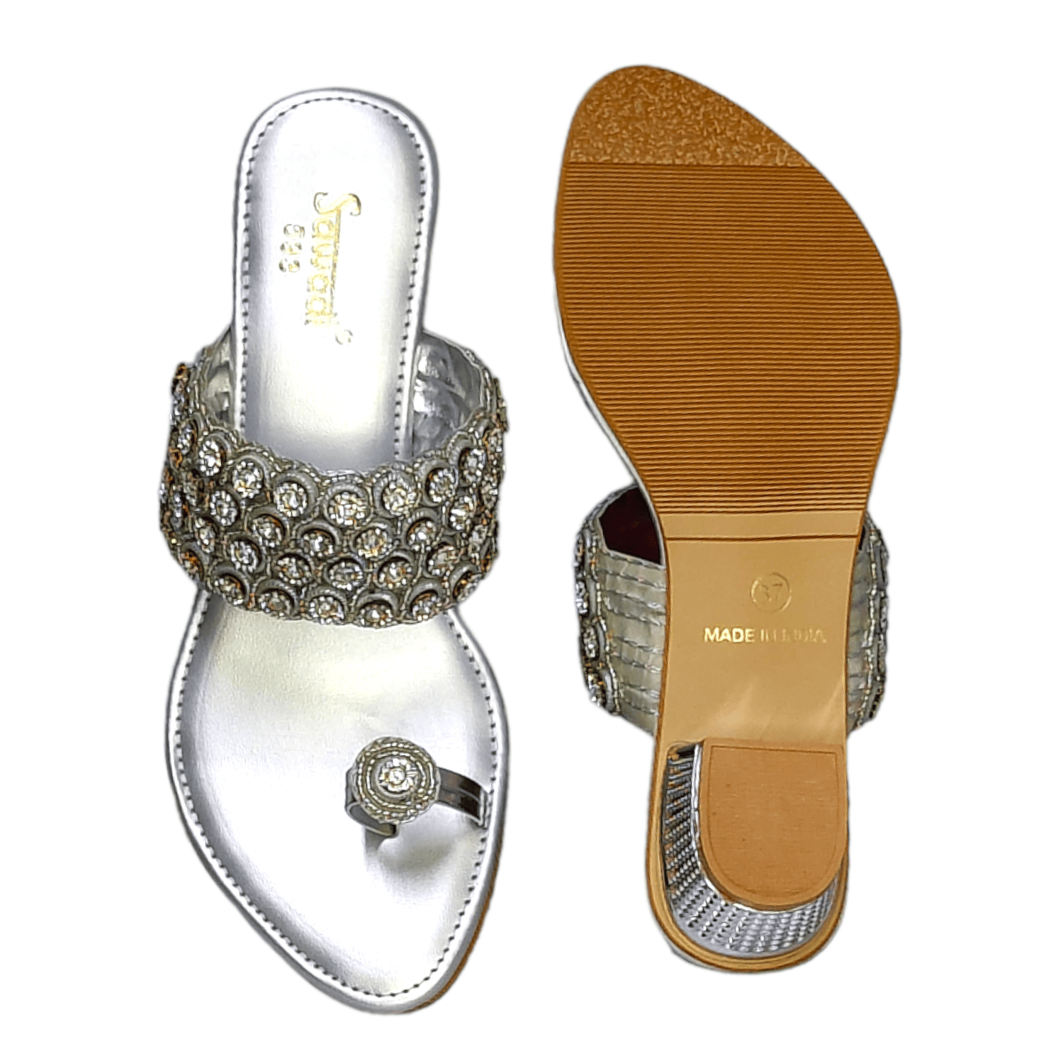 Women's Silver Sawadi Toe-Ring Heel Chappals