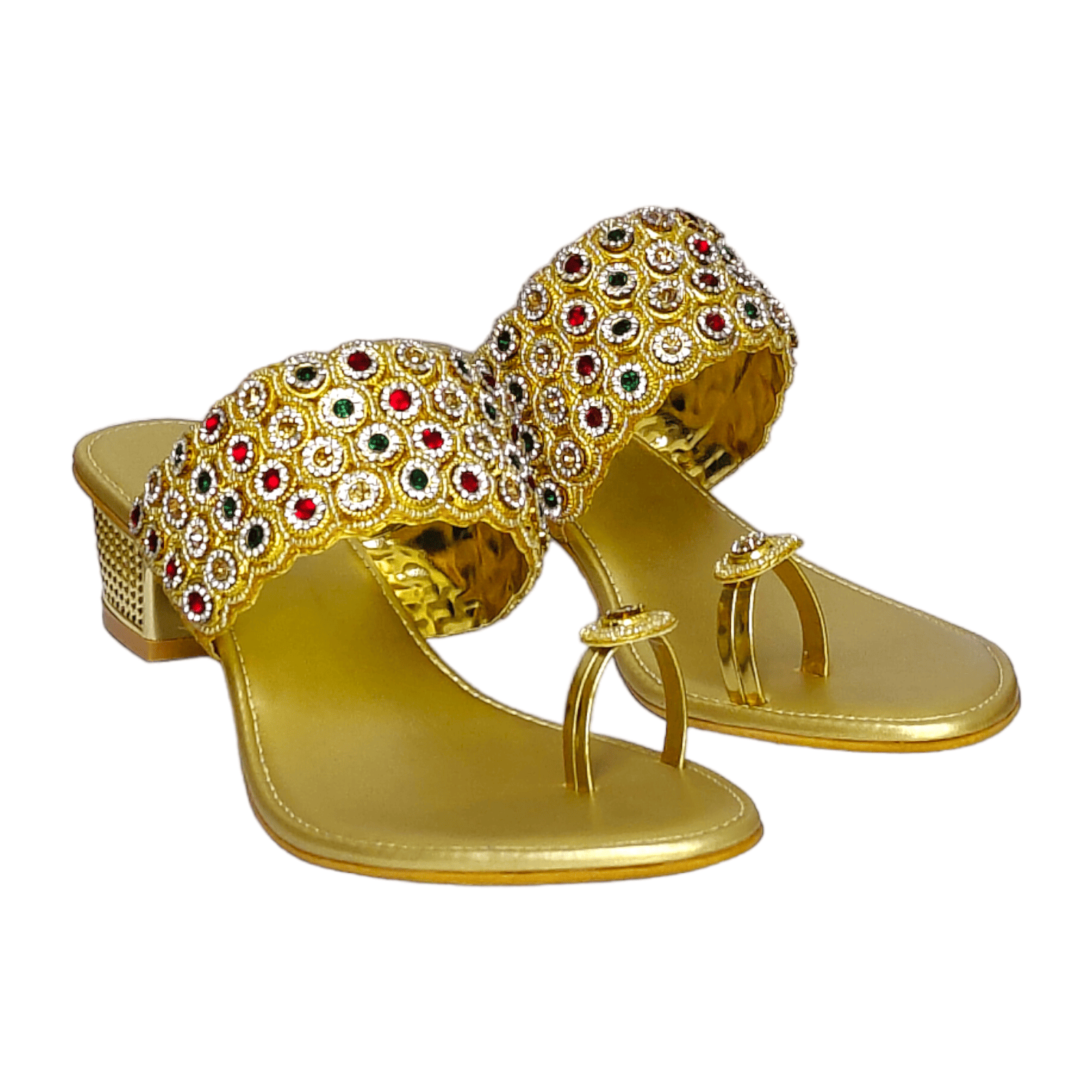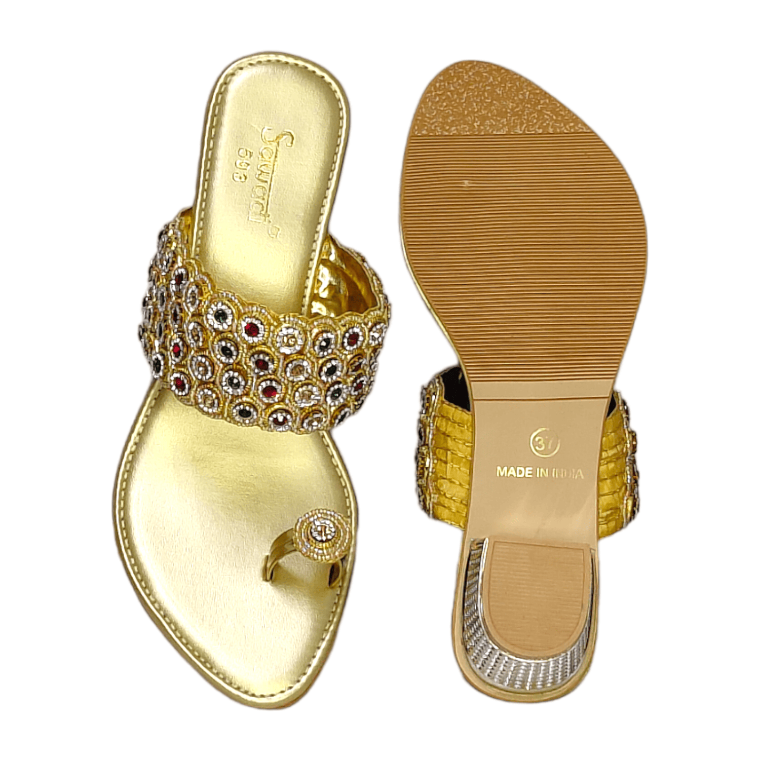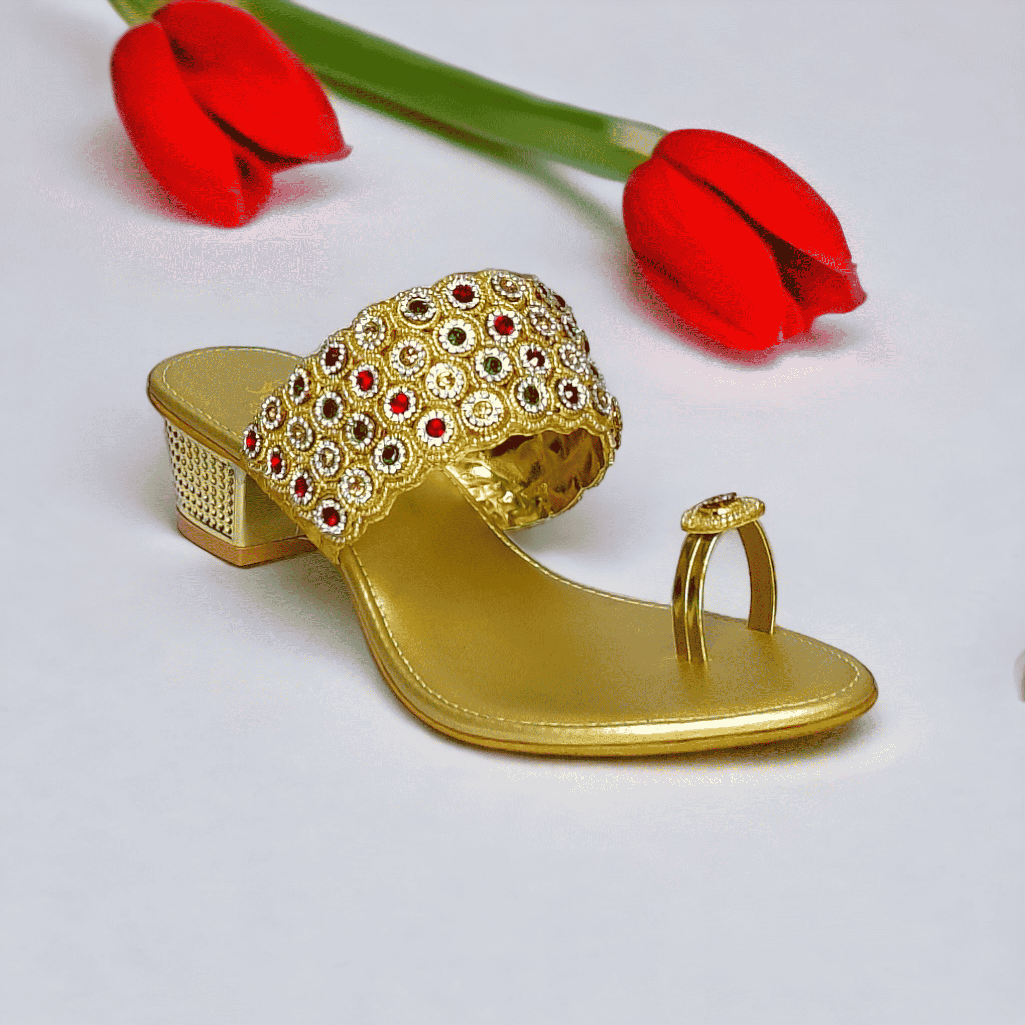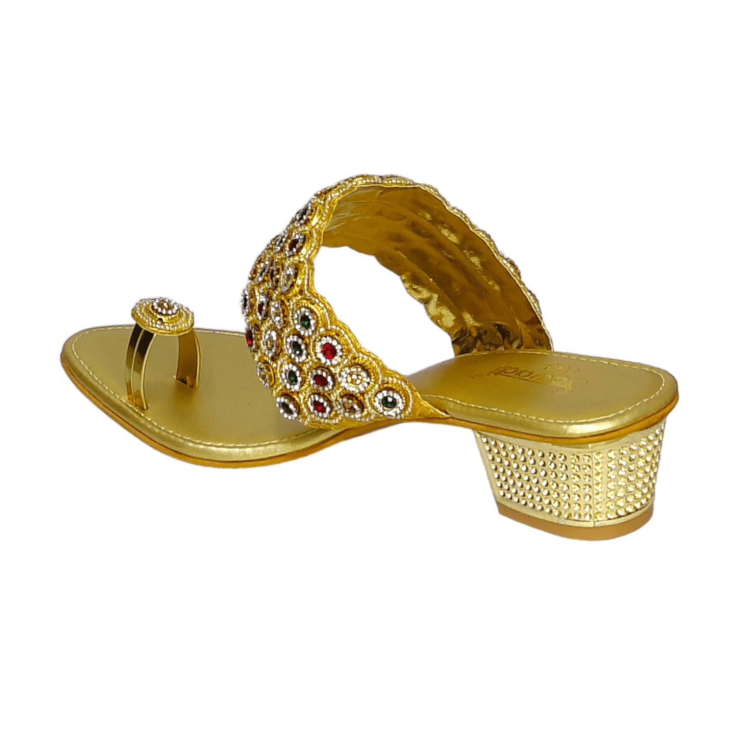 Women's Gold Toe-Ring Heel Chappals by Sawadi