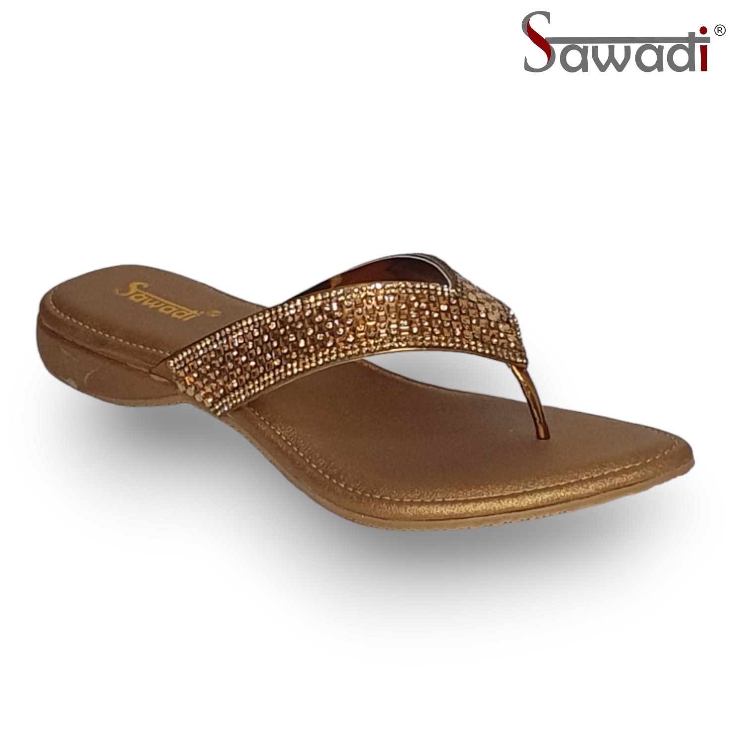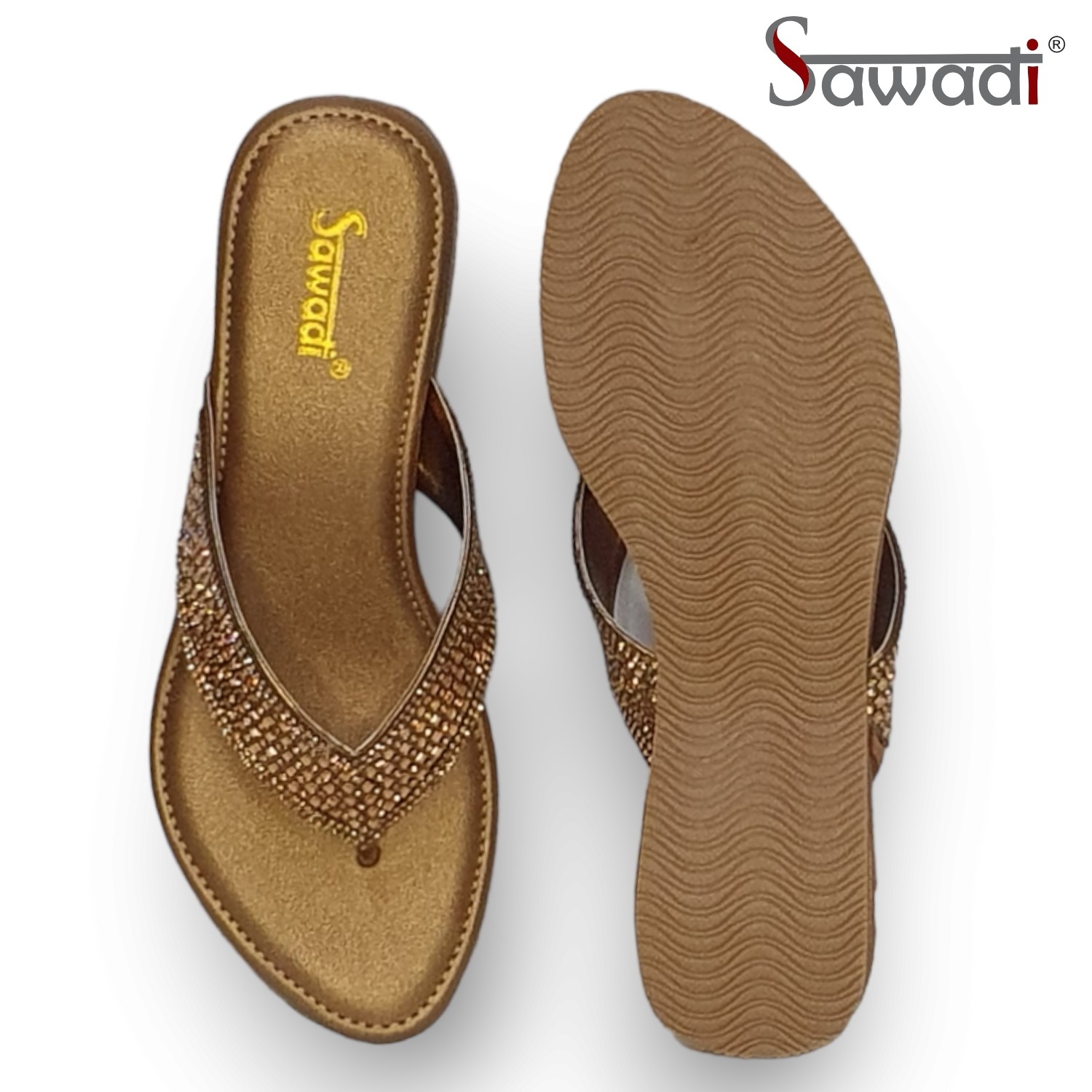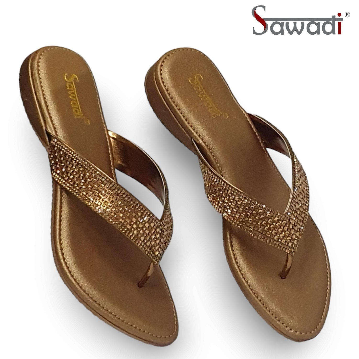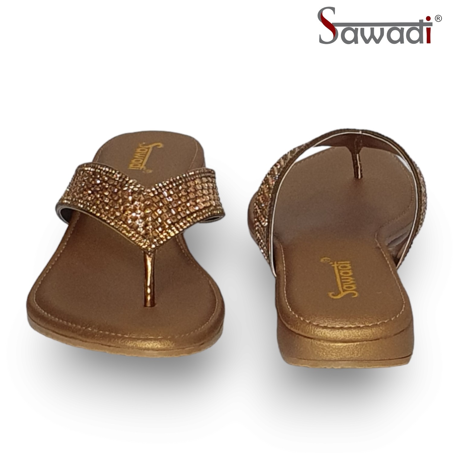 Home / Products / Antique Gold Embellished Slip-On Sandals for Women | Elegant Party Flats | Sawadimart Price inclusive of all tax