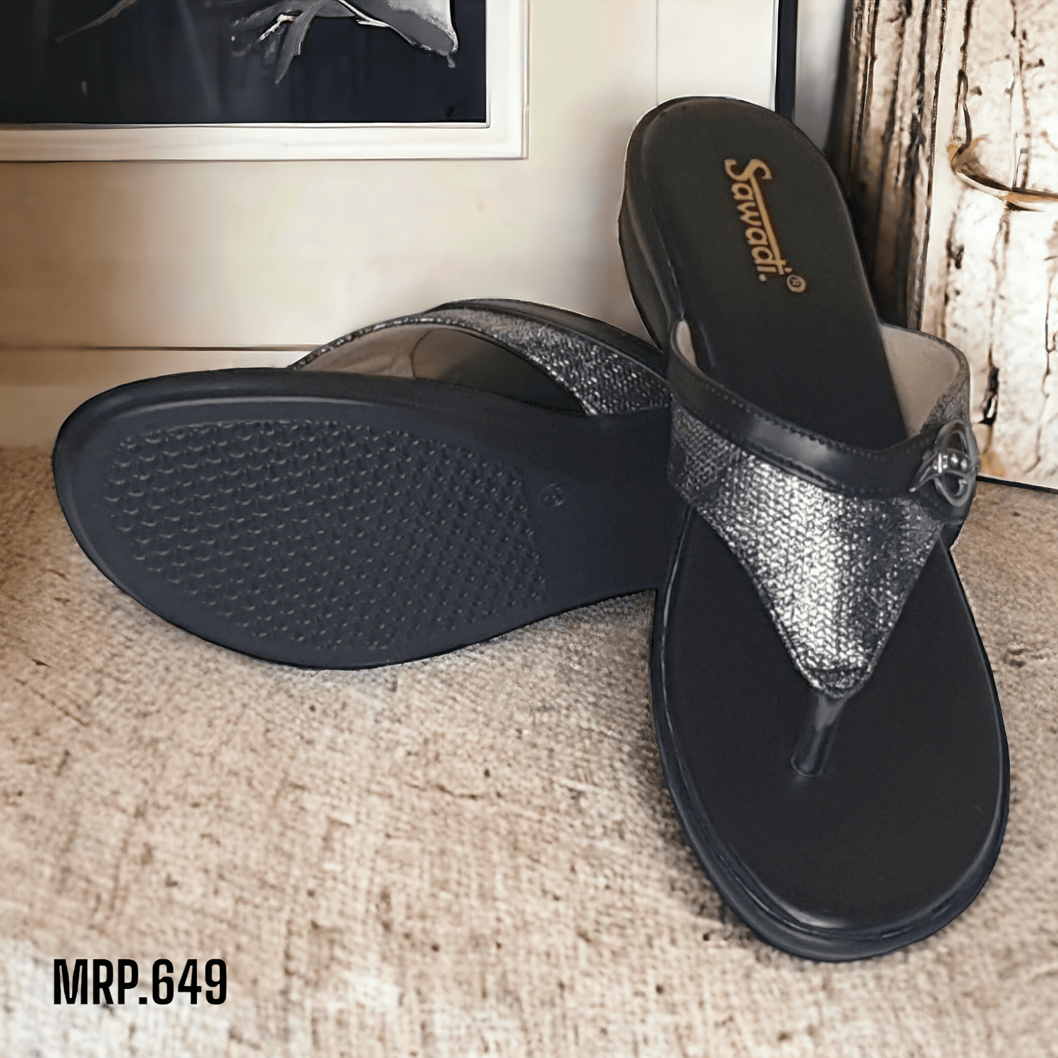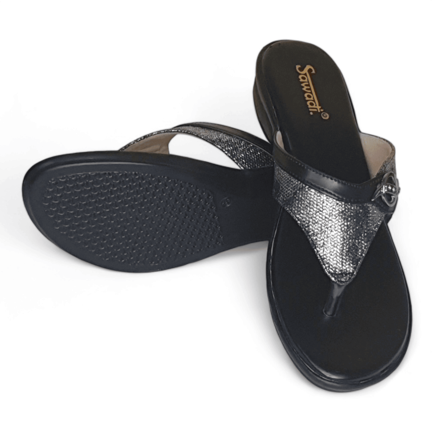 SAWADI Women's Black Casual & Daily Wear Chappals