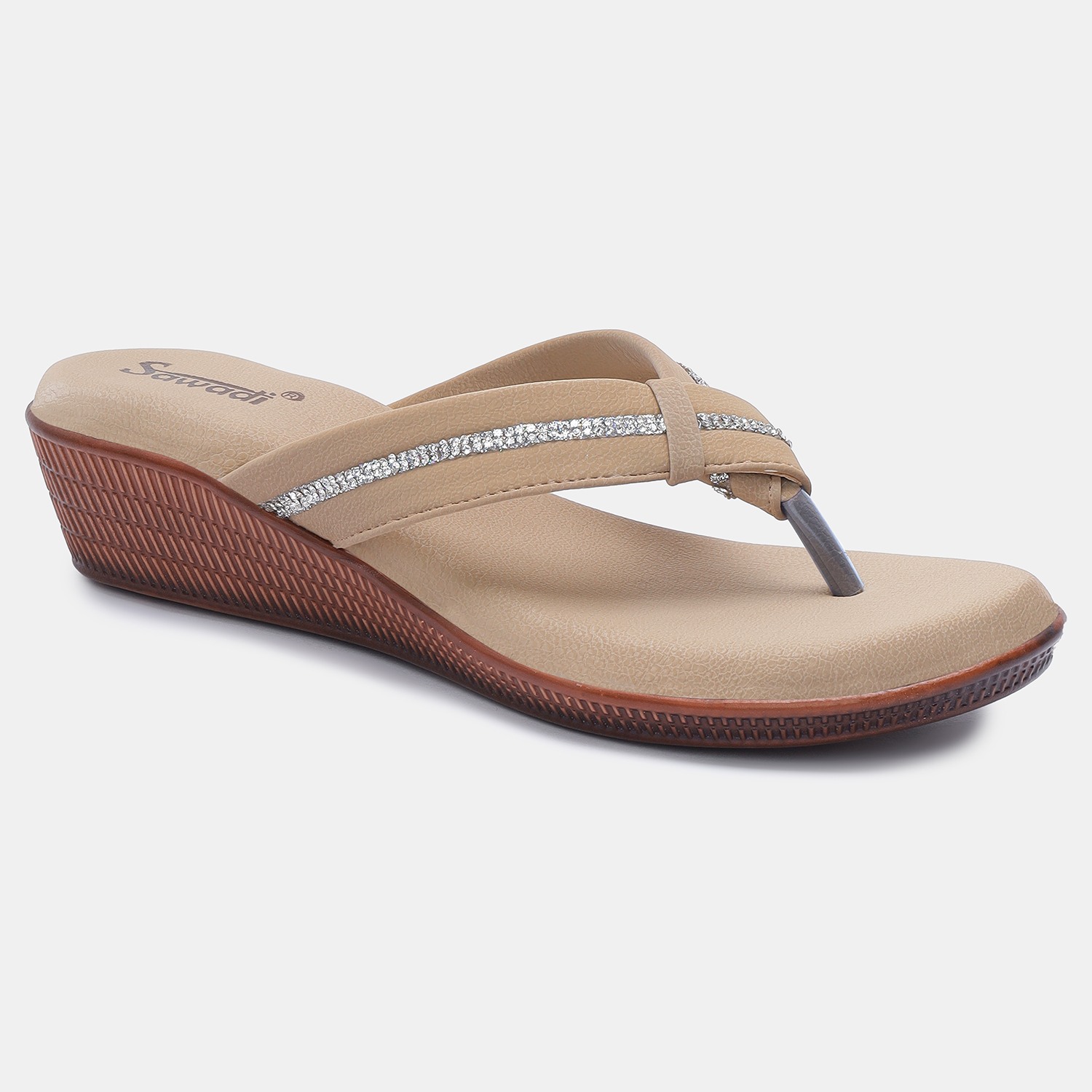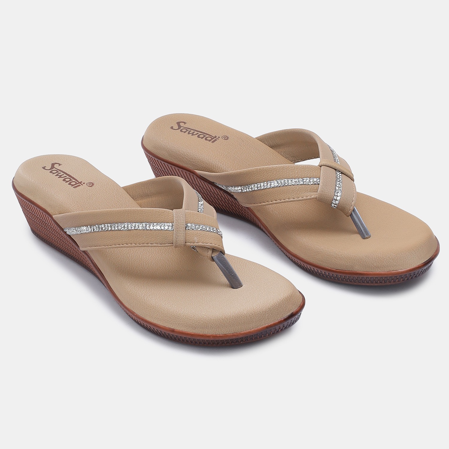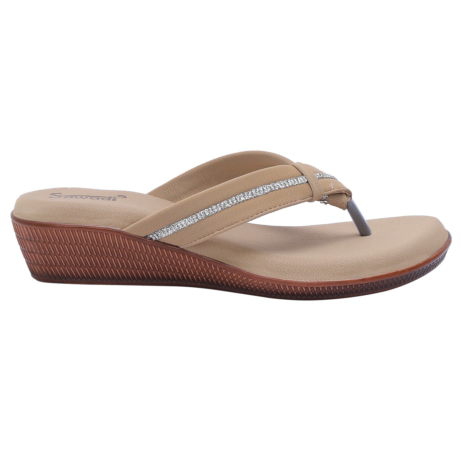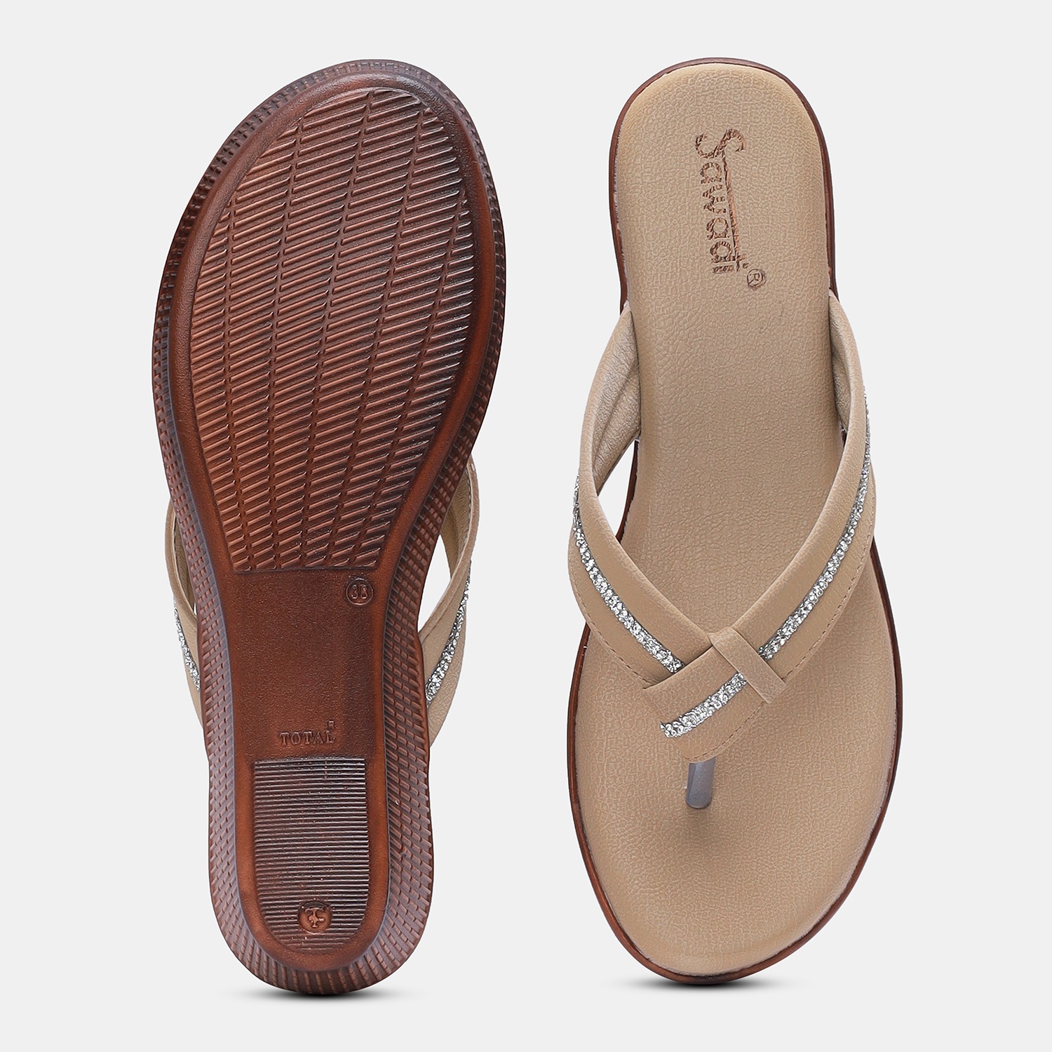 Home / Products / Stylish Beige Embellished Thong Sandals for Women Comfortable & Chic Beige Flat Sandals for Ladies