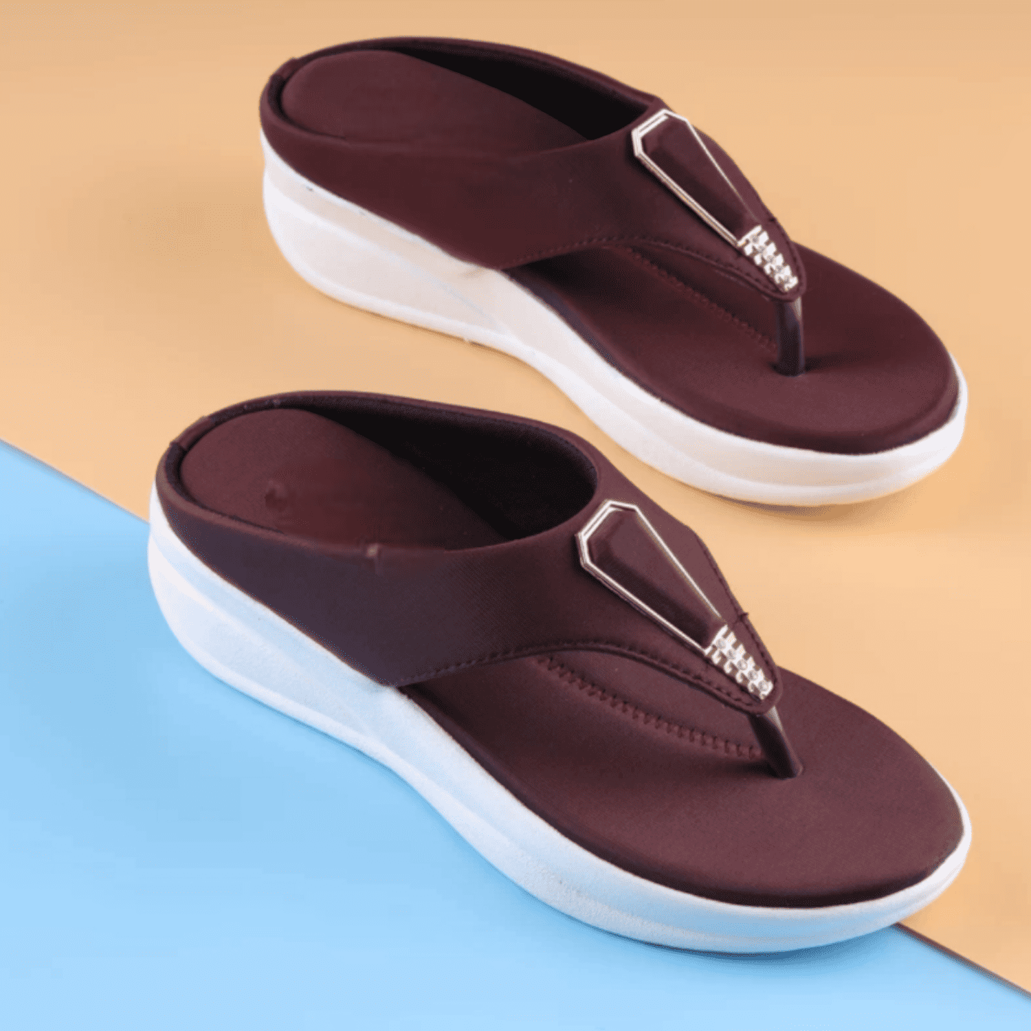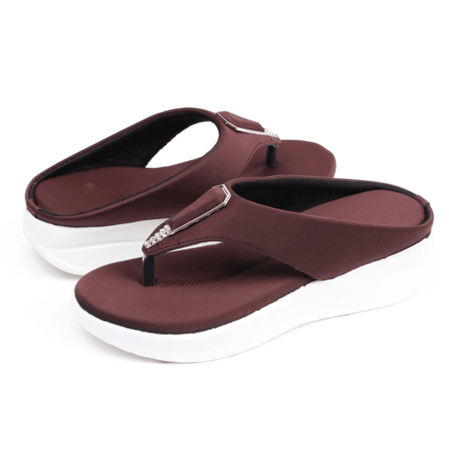 Home / Products / Chic Maroon Wedge Thong Sandals with Rhinestone Detail Chic Maroon Wedge Thong Sandals with Rhinestone