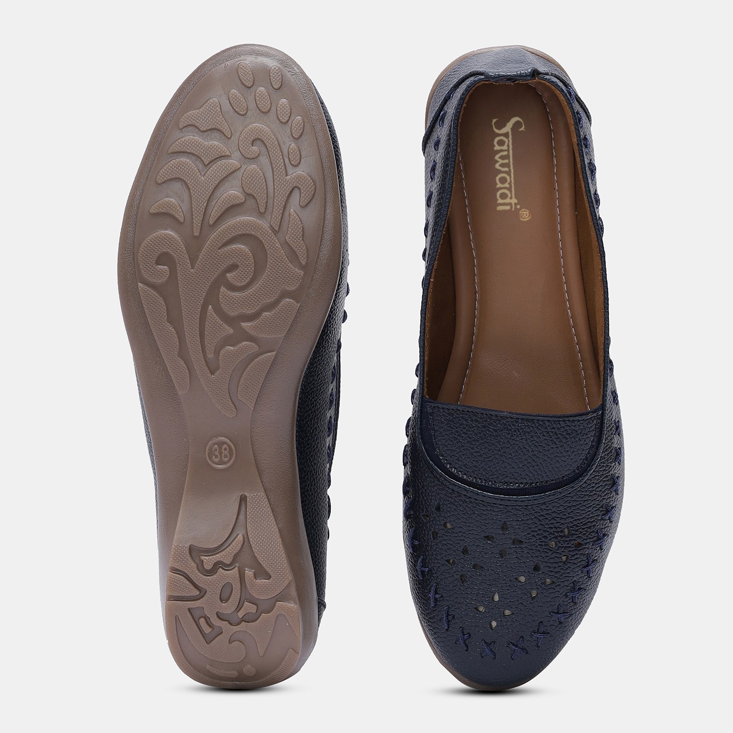 Home / Products / Stylish Navy Blue Perforated Ballet Flats for Women Price inclusive of all tax