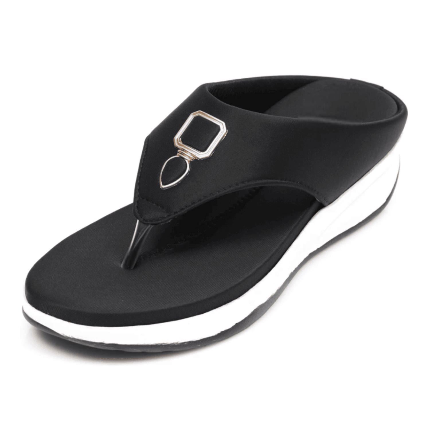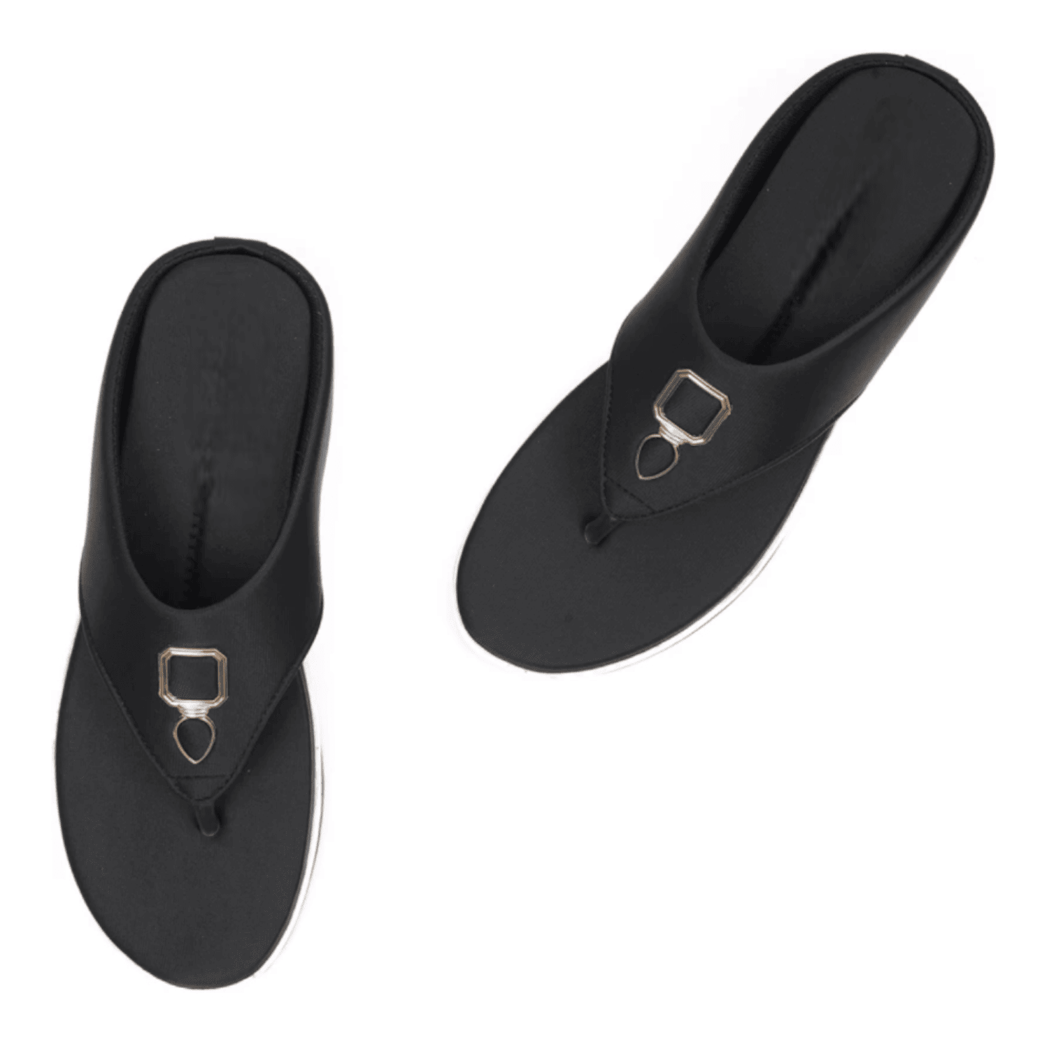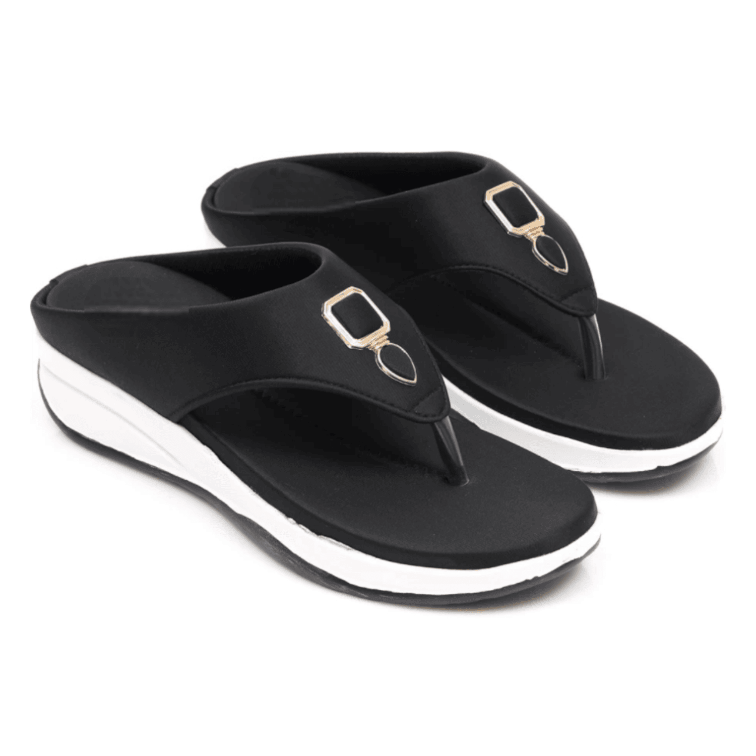 Home / Products / Comfortable Black Thong Wedge Sandals with Buckle Price inclusive of all tax