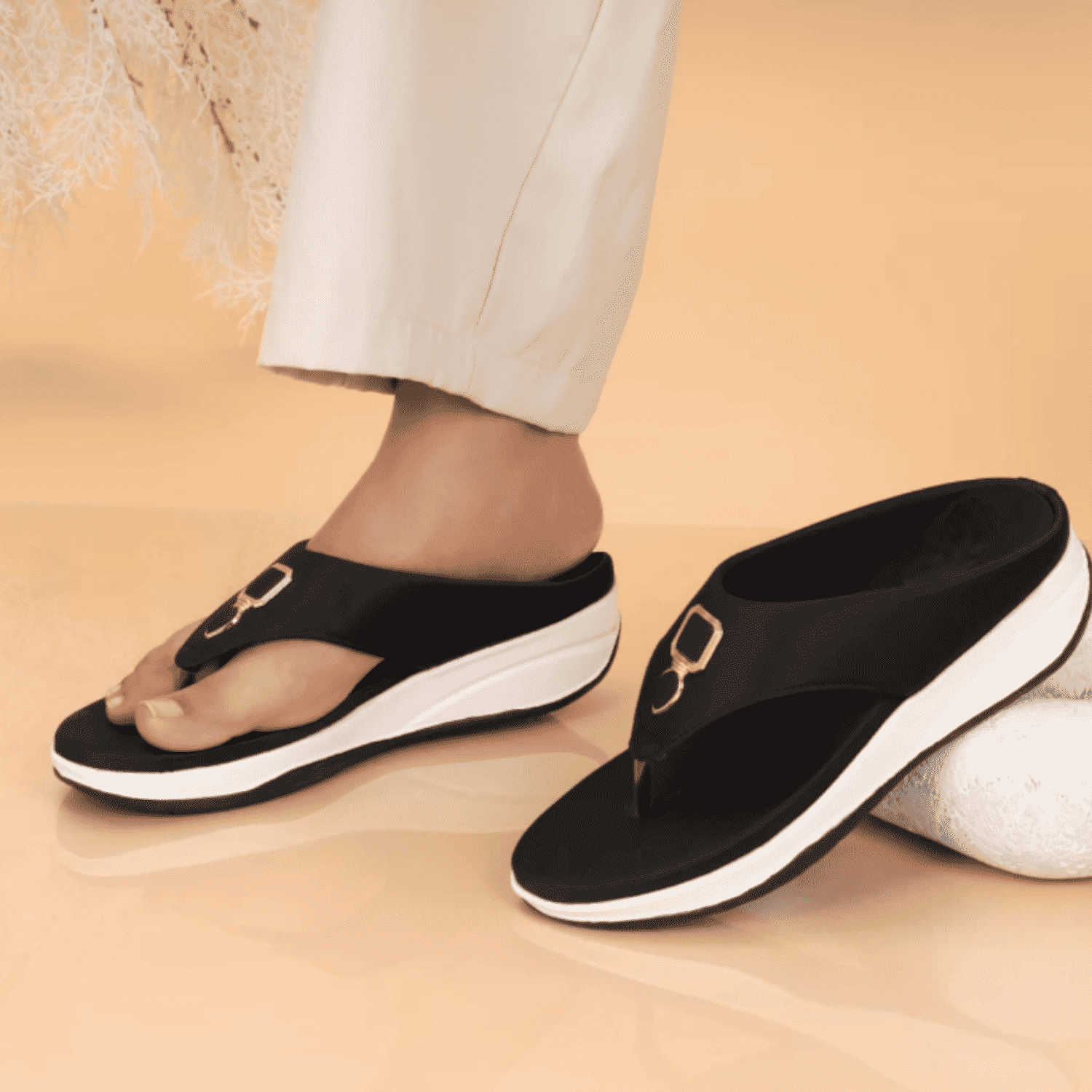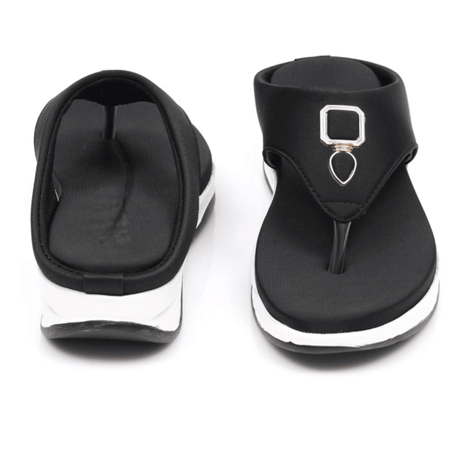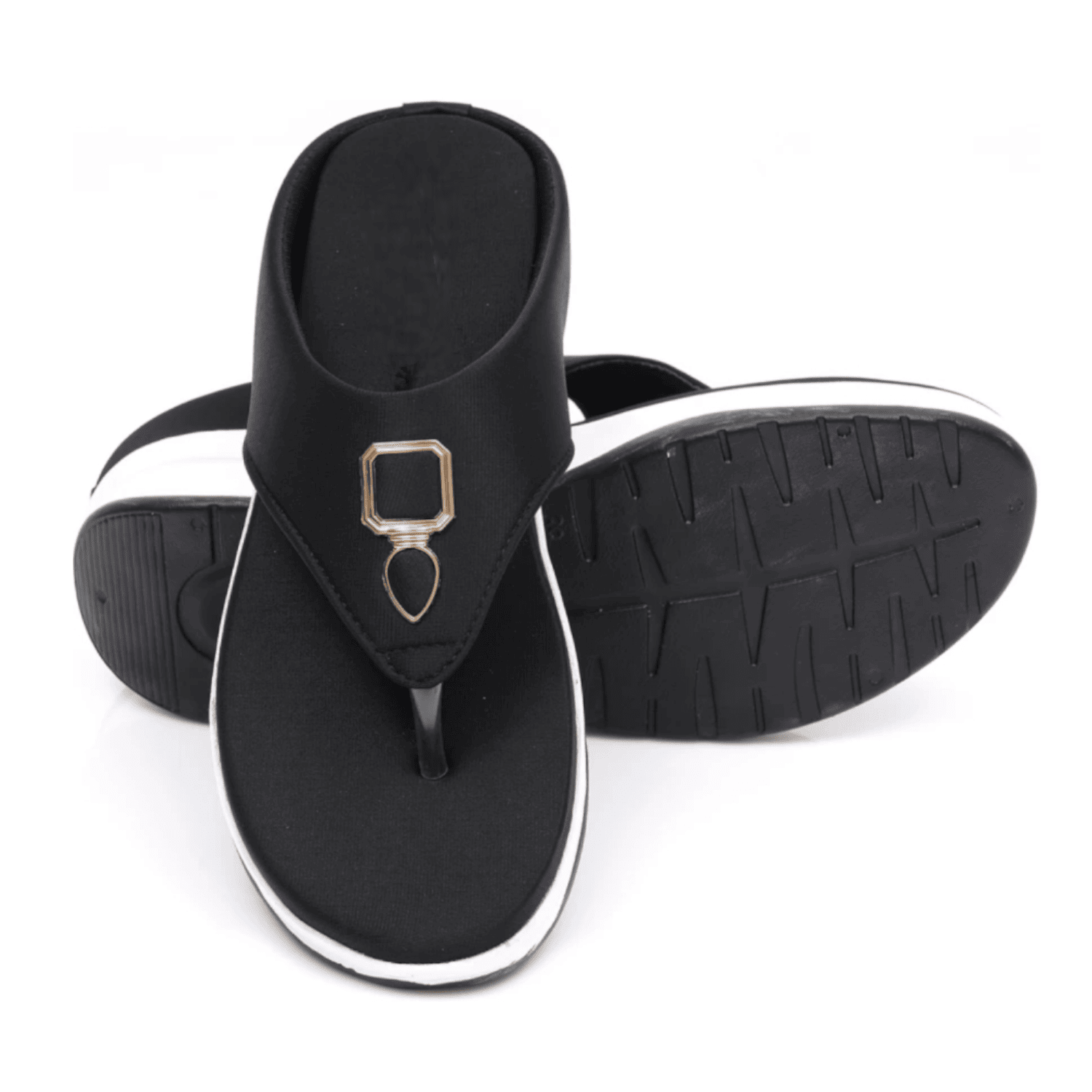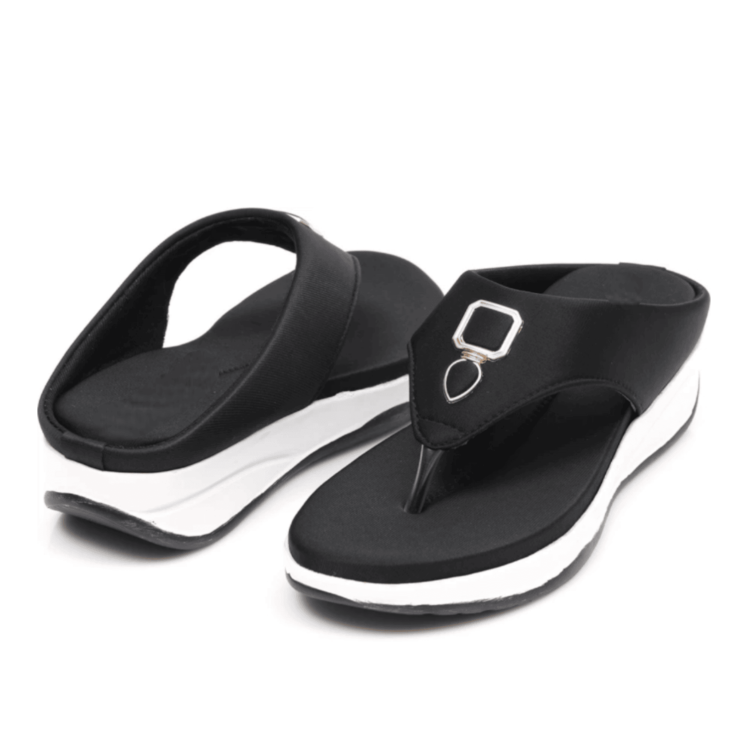 Home / Products / Comfortable Black Thong Wedge Sandals with Buckle Price inclusive of all tax
