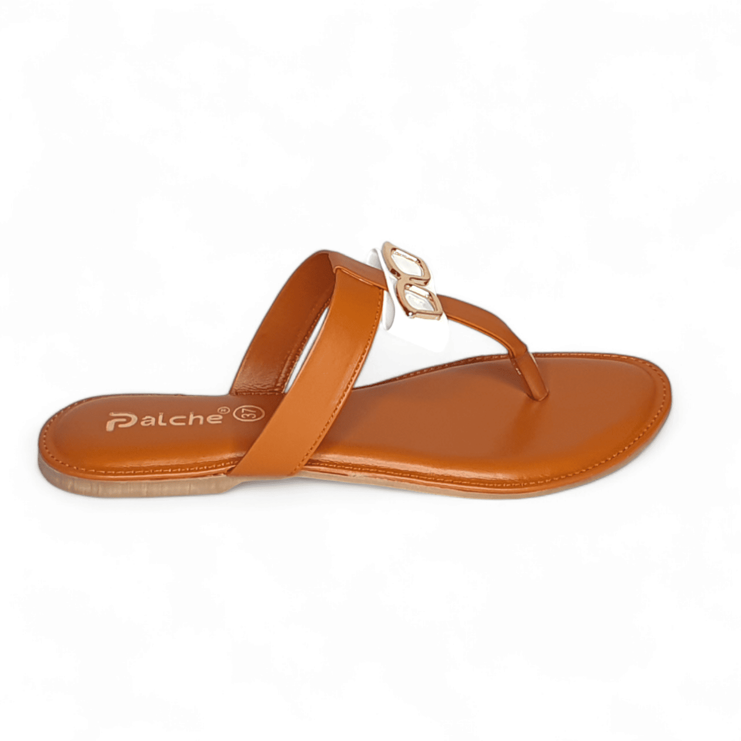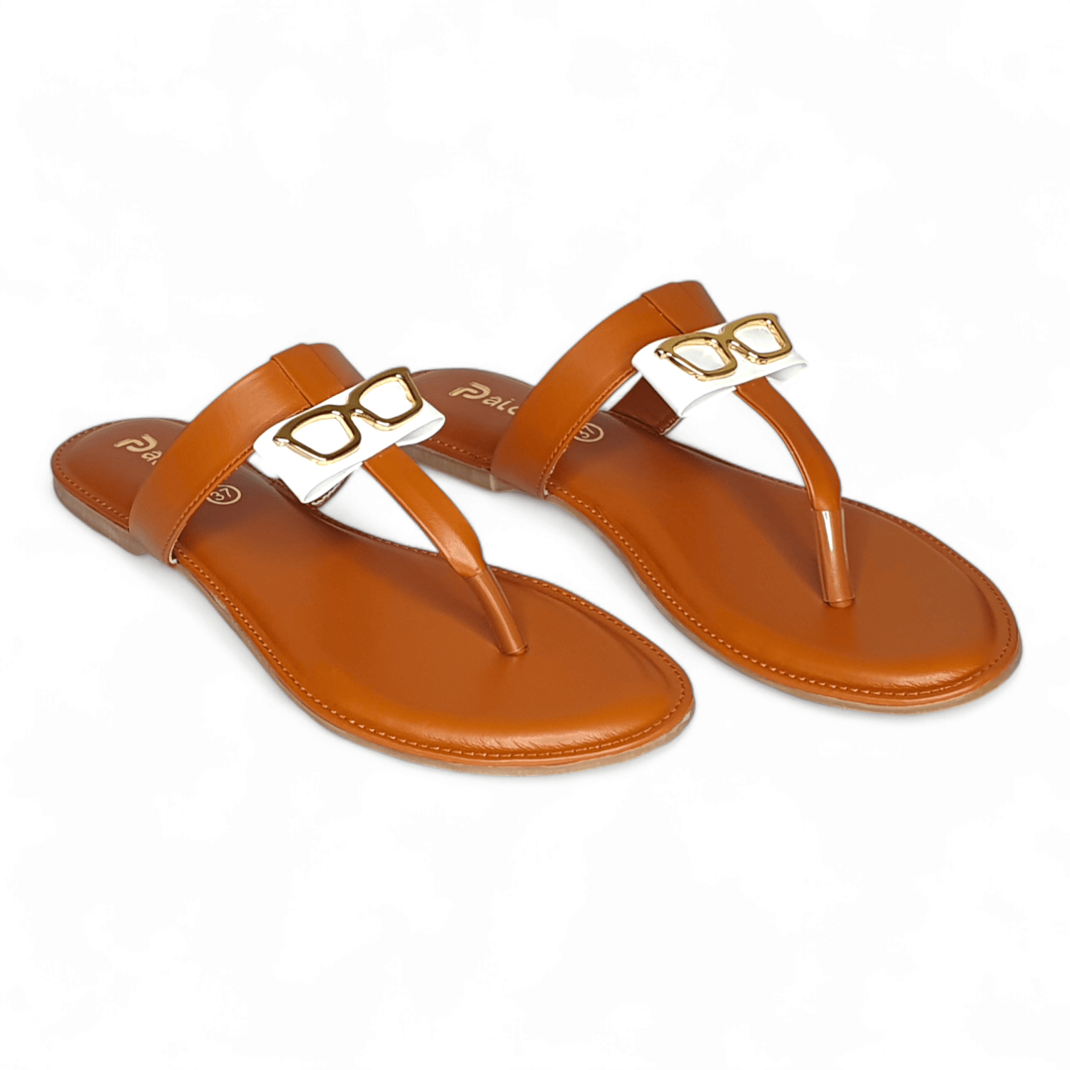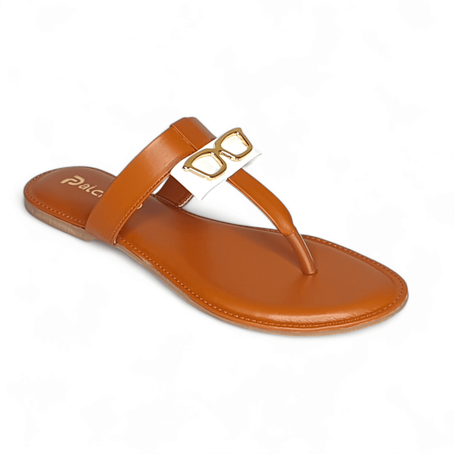 Unique Tan Thong Sandals with Gold