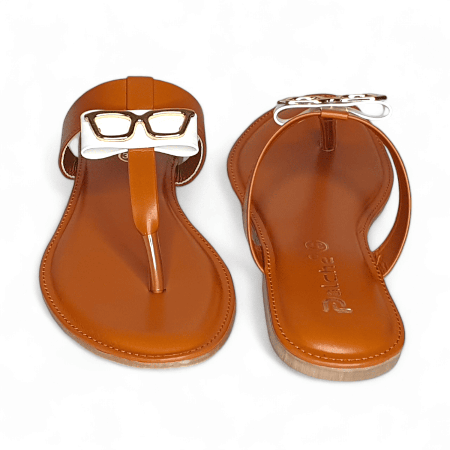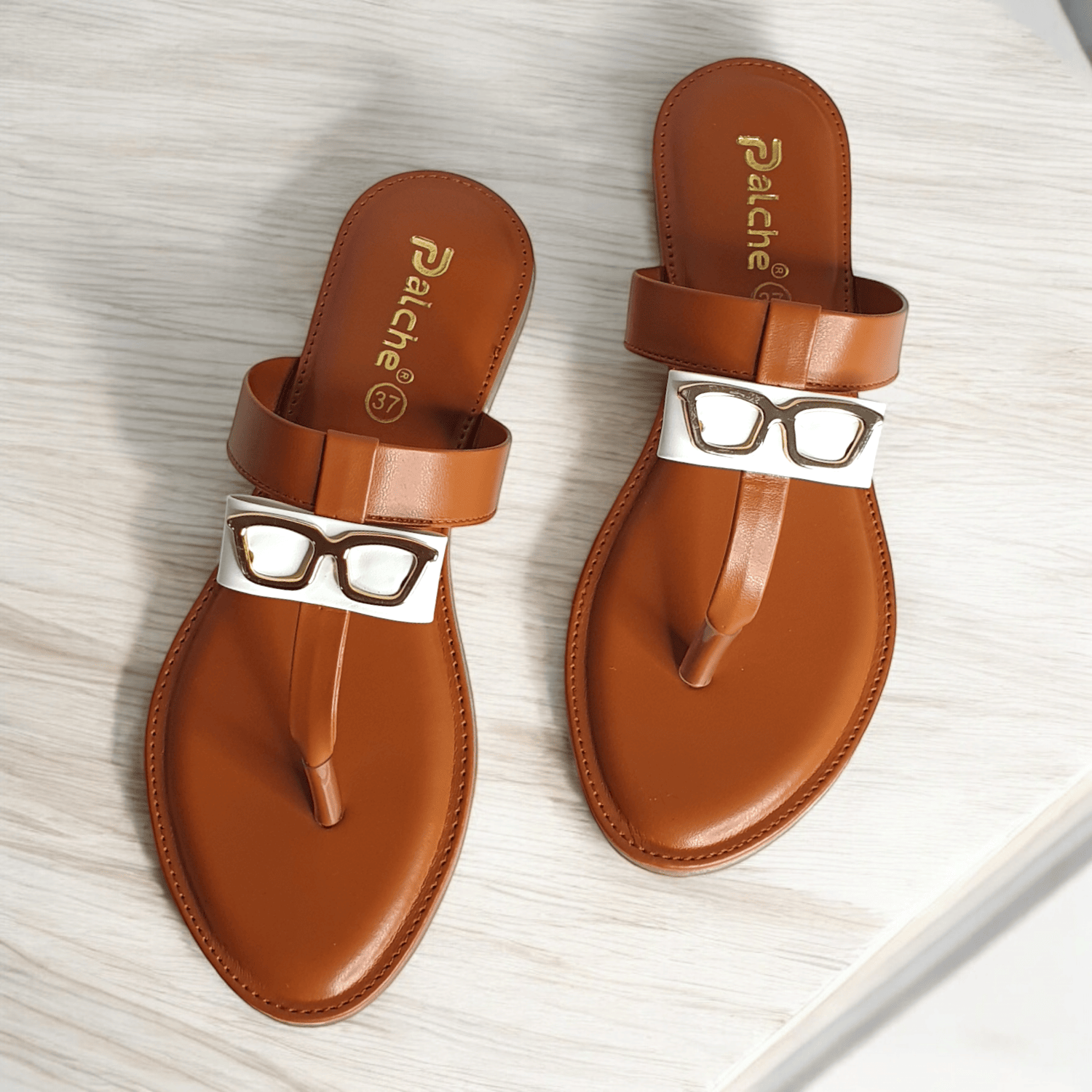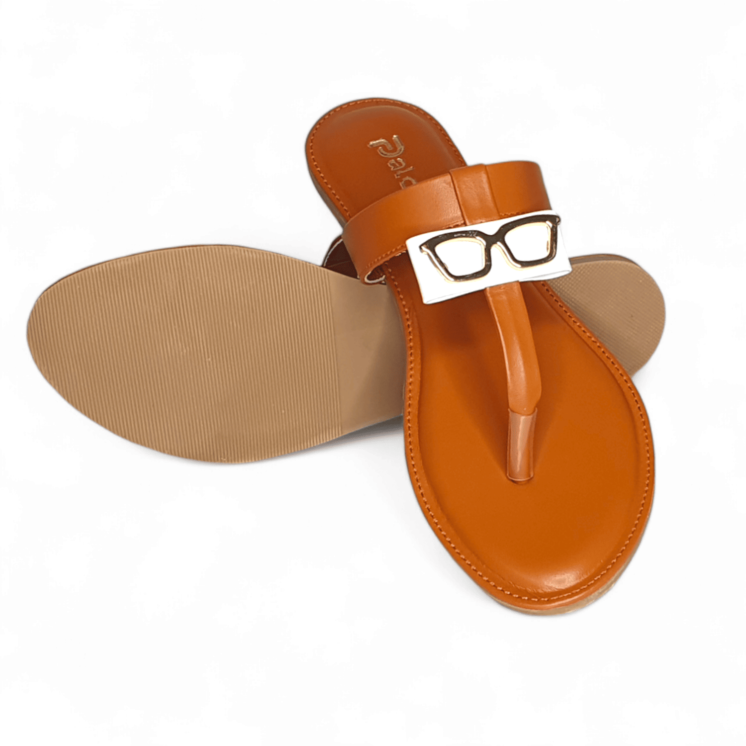Unique Tan Thong Sandals with Gold