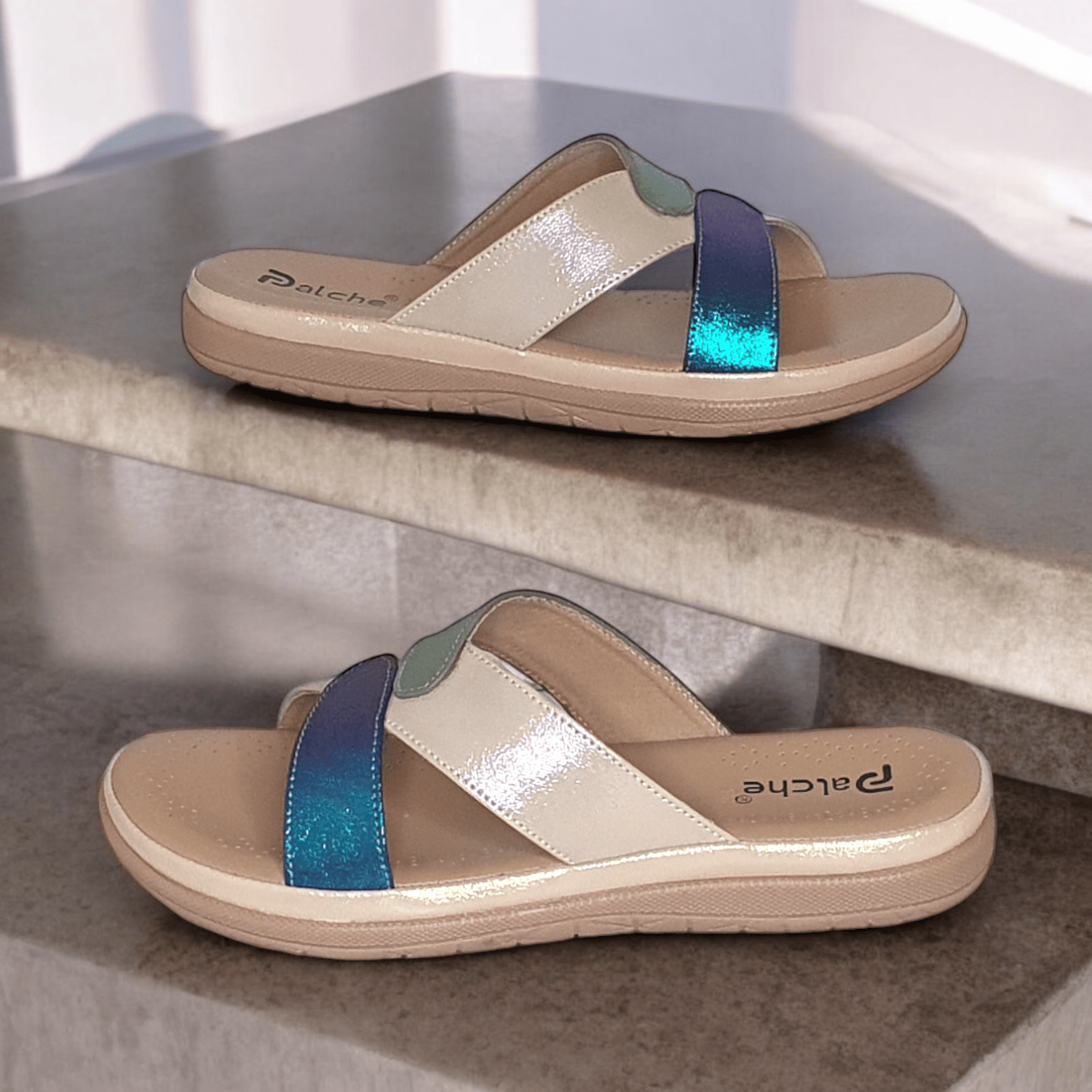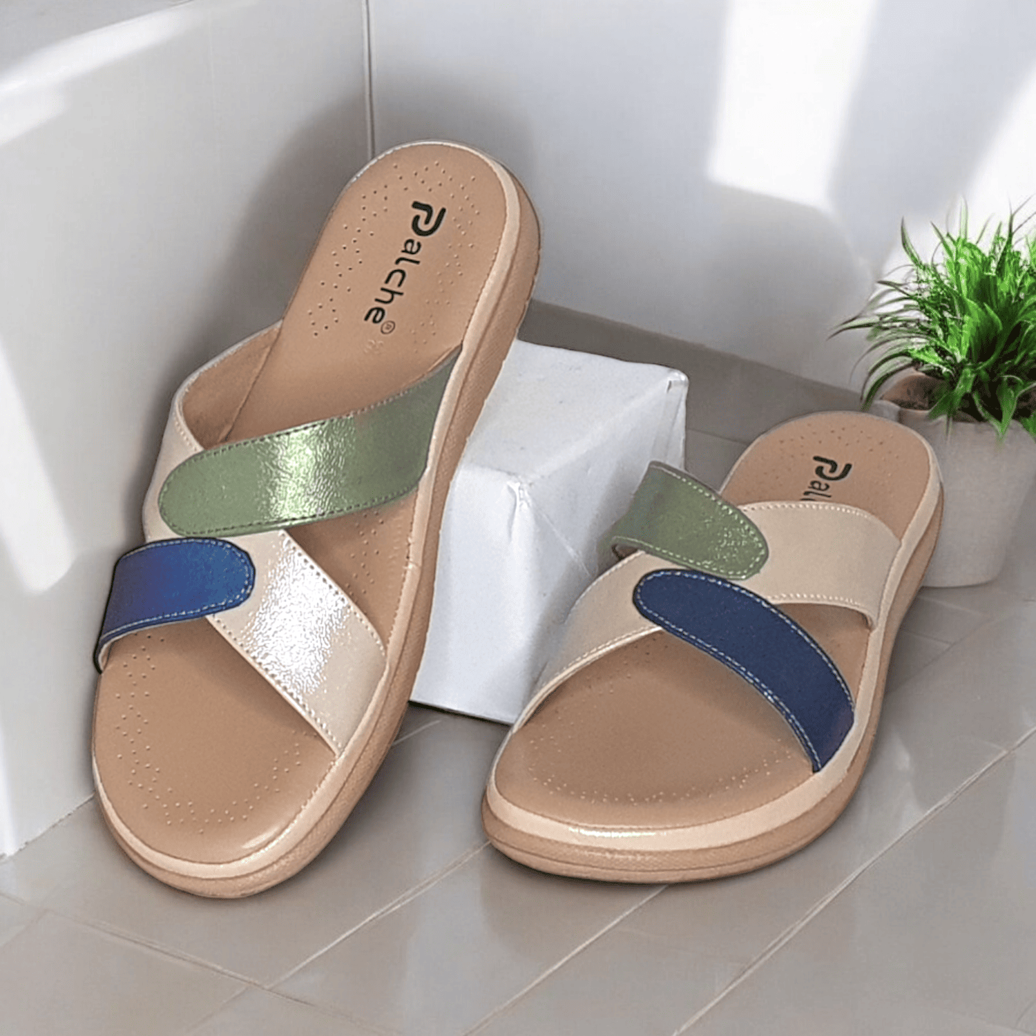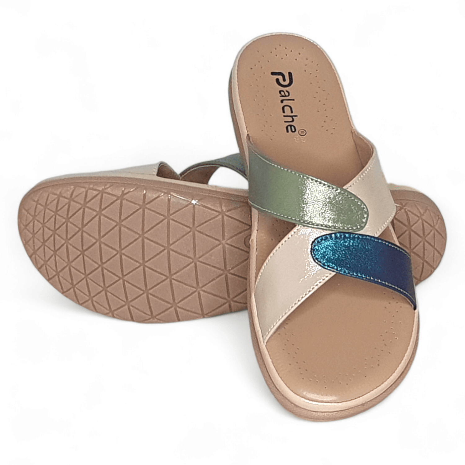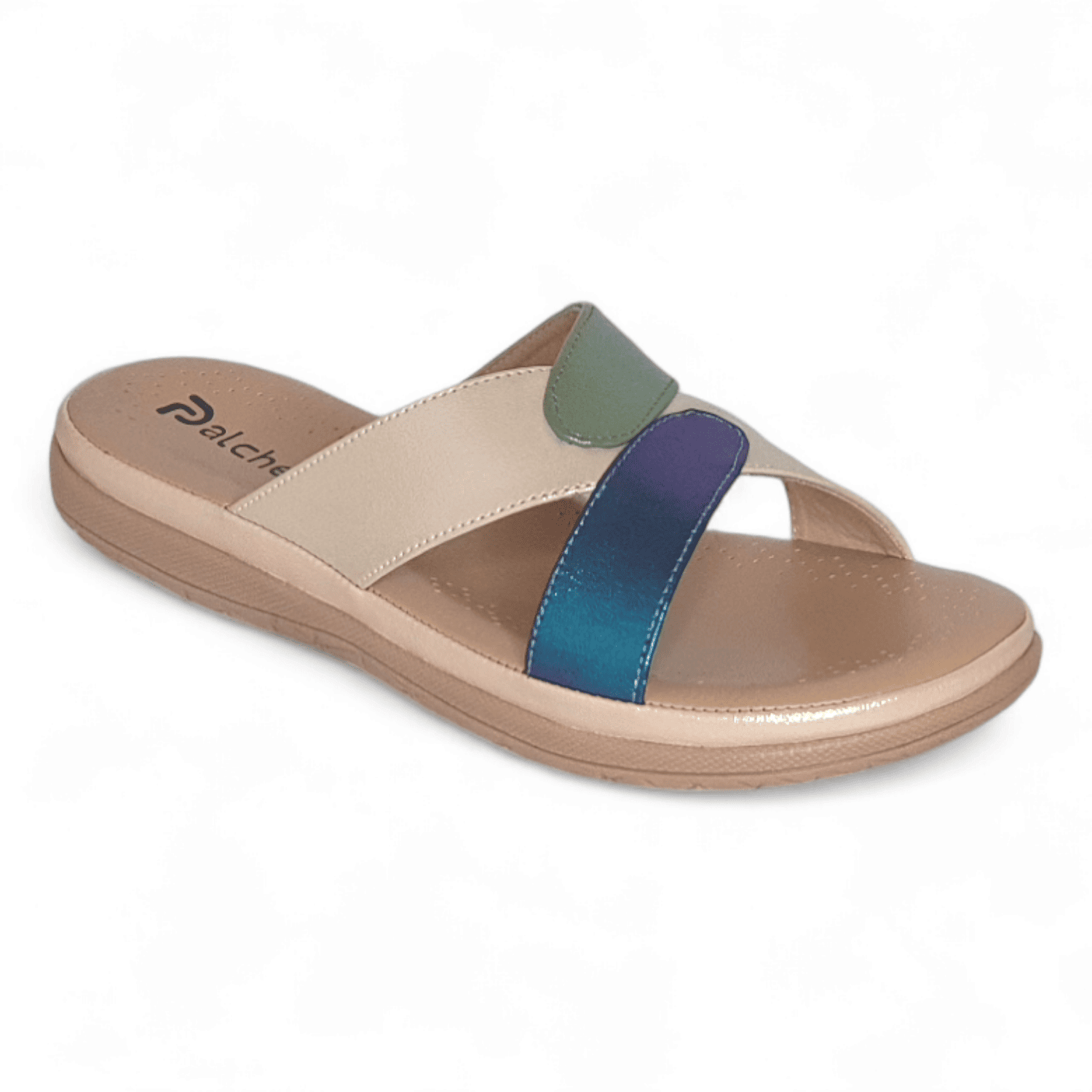 Beige, Green & Blue Strap Sandals for Women