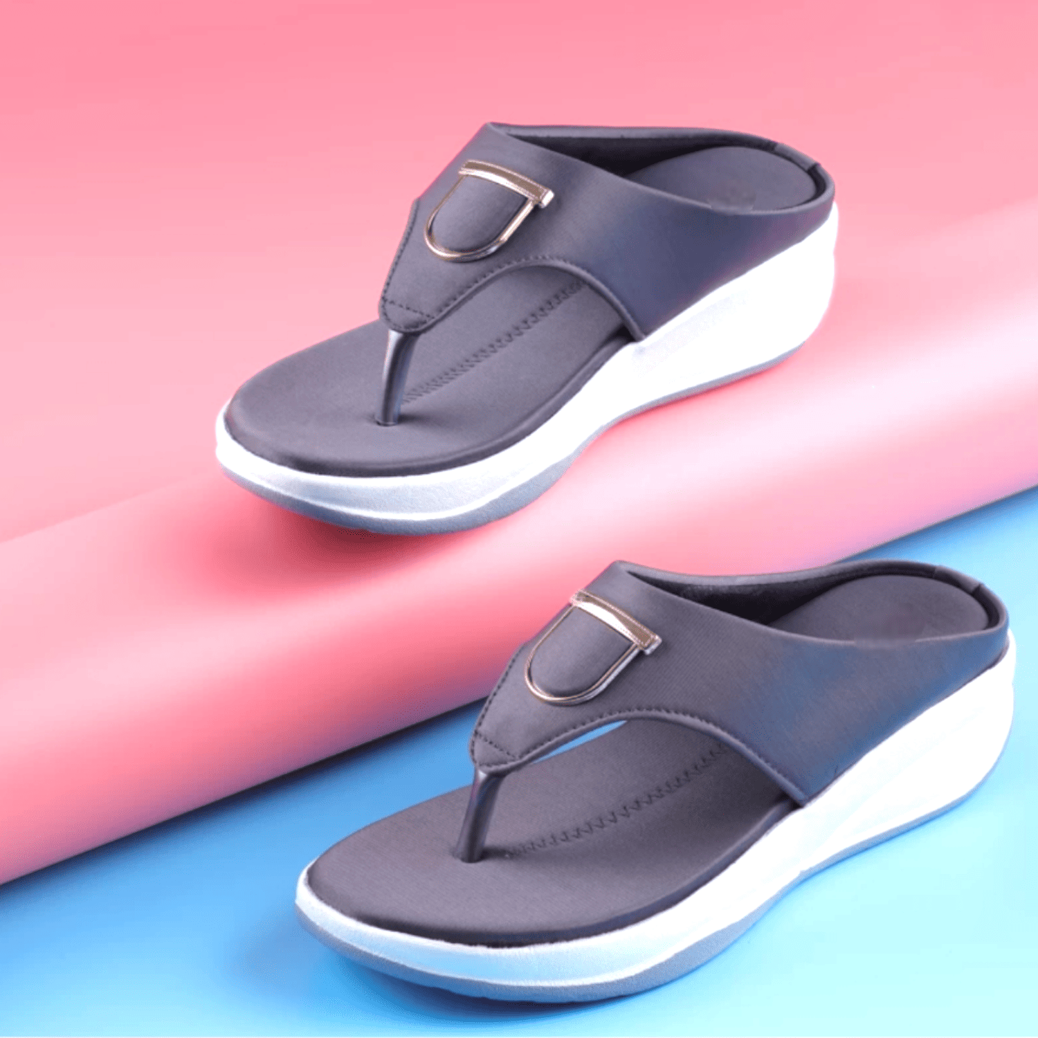 Home / Products / Trendy Grey Thong Sandals with Gold D-Ring | India ₹ 449 - 500