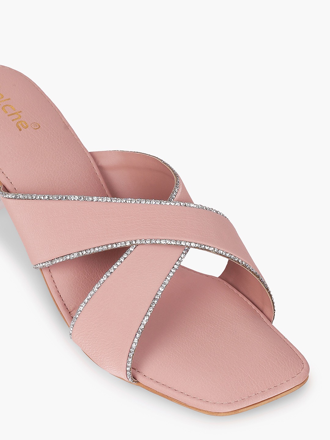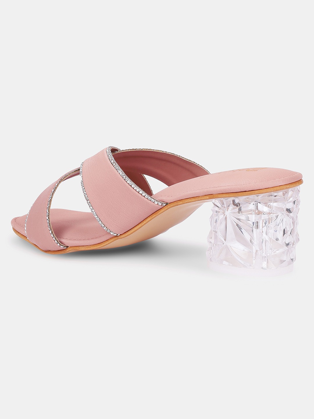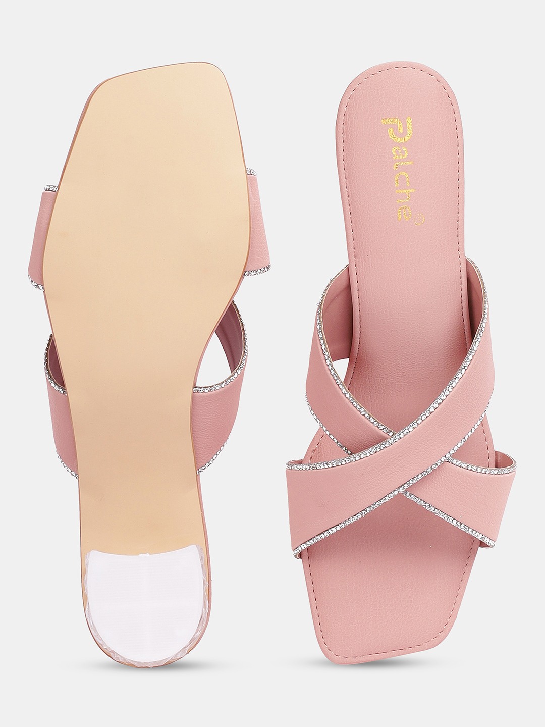 Home / Products / Women's Rhinestone Cross Strap Heeled Sandals – Pink | SawadiMart ₹ 495 - 500