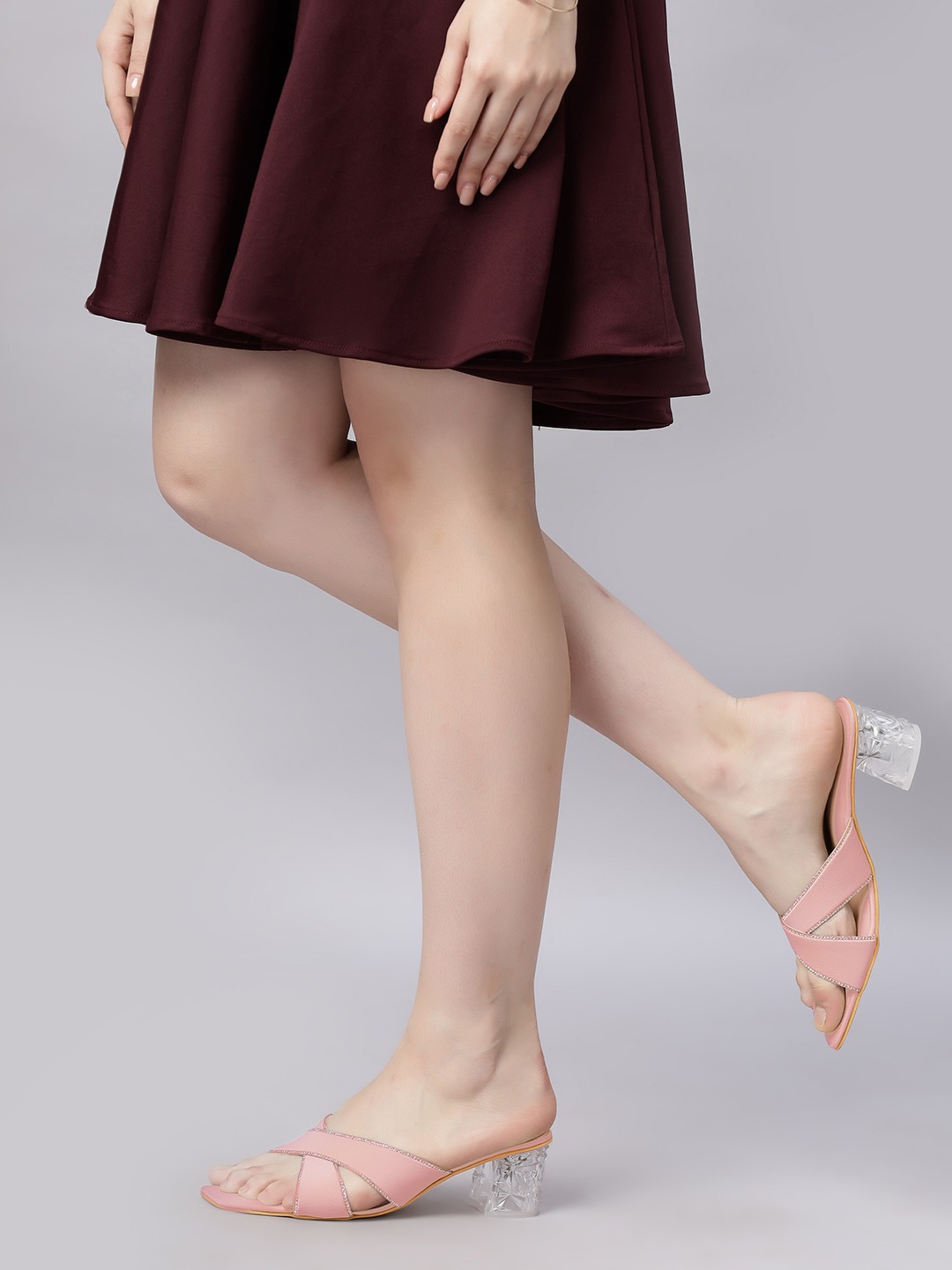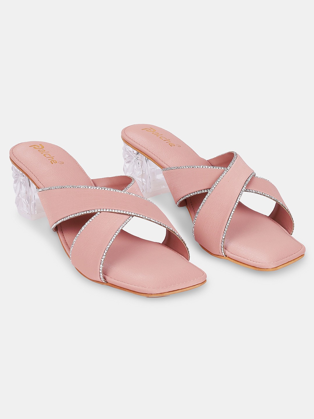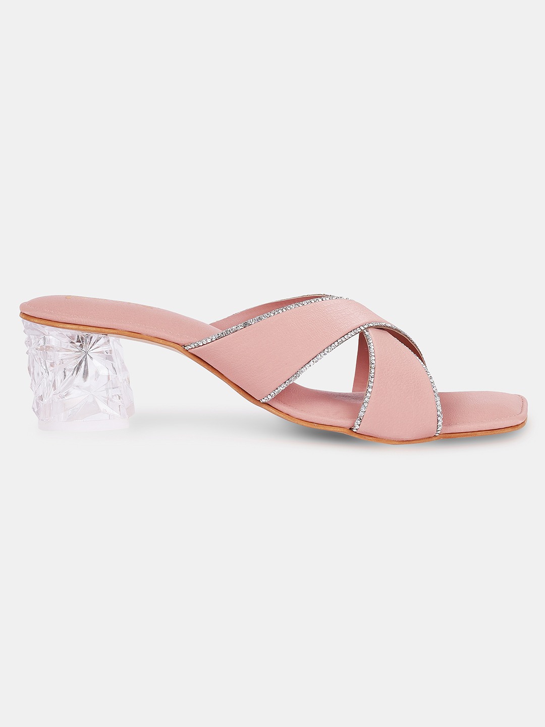 Home / Products / Women's Rhinestone Cross Strap Heeled Sandals – Pink | SawadiMart ₹ 495 - 500