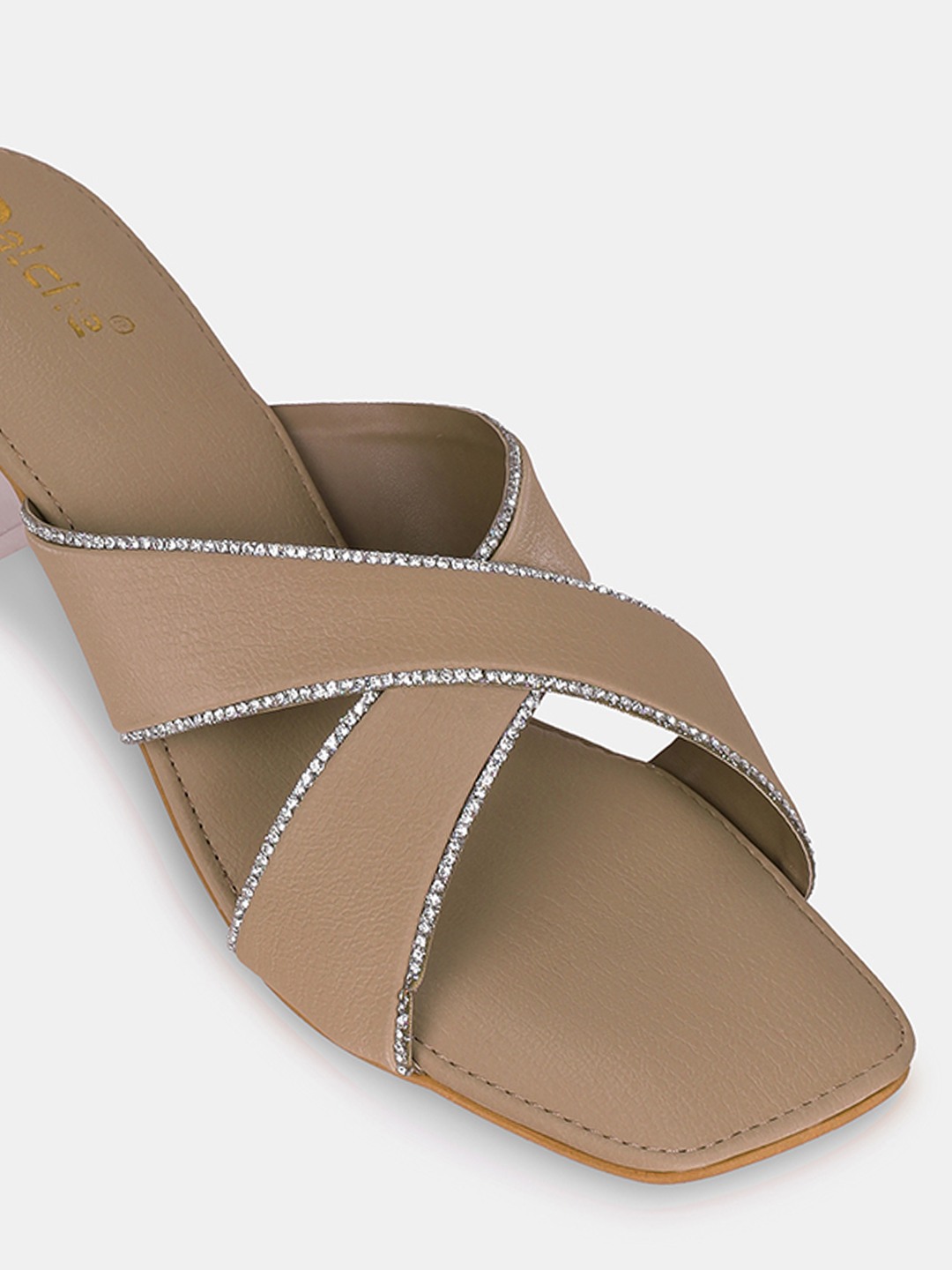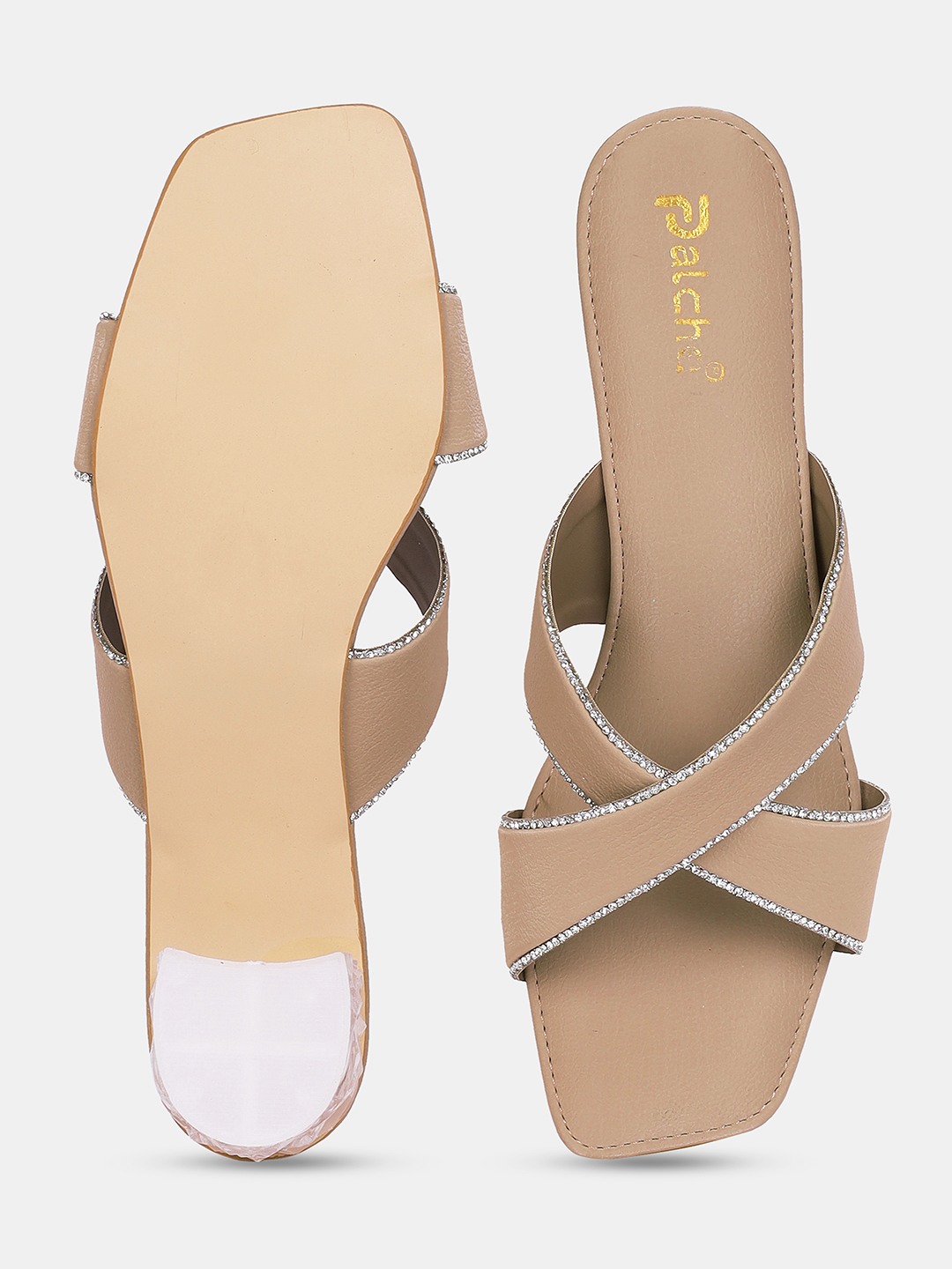 Home / Products / Women's Beige Slip-On Sandals with Rhinestone Straps | SawadiMart ₹ 495 - 500