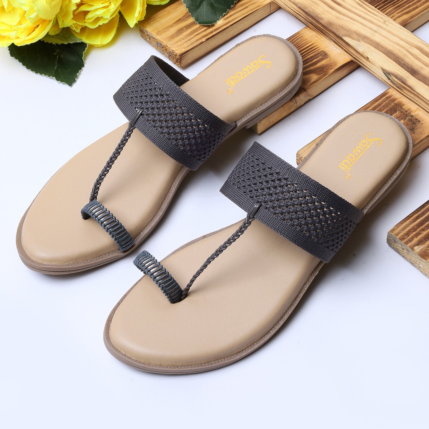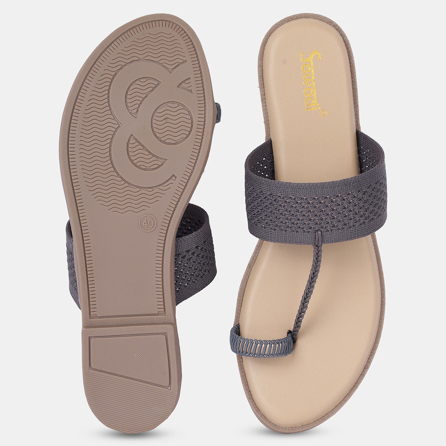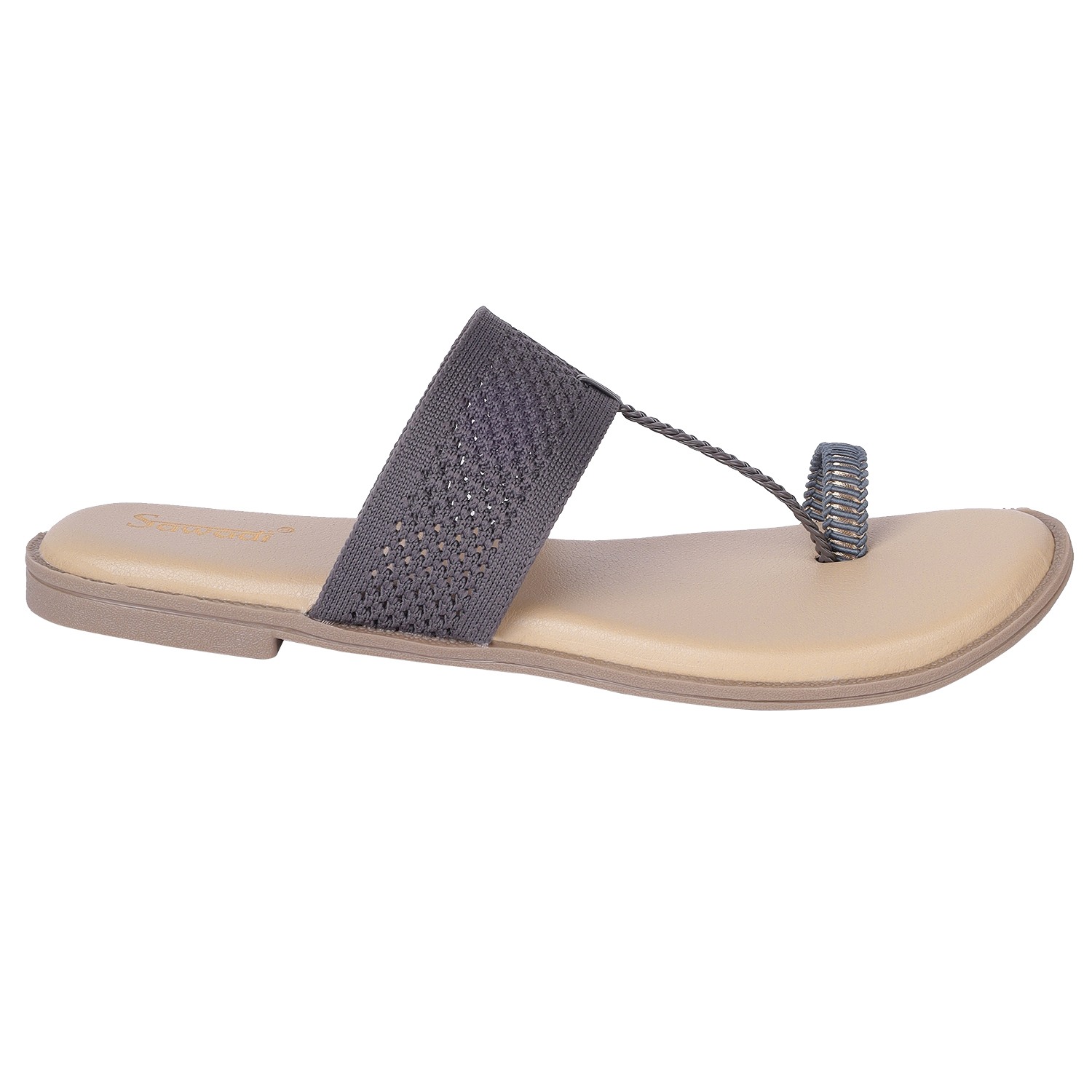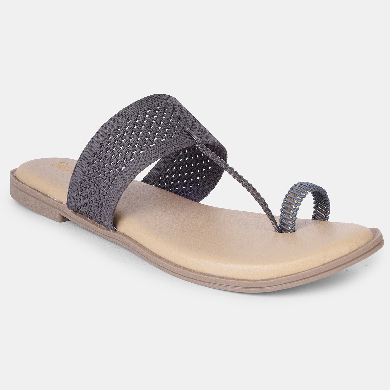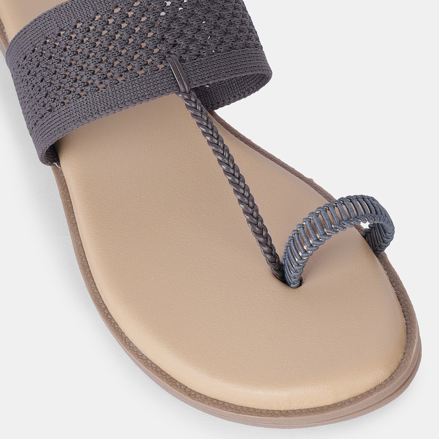 Comfortable Grey Wide Strap Toe-Ring Sandals