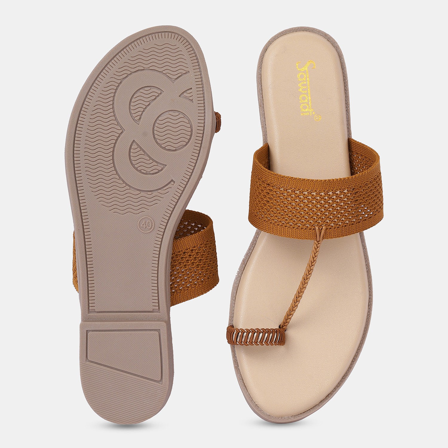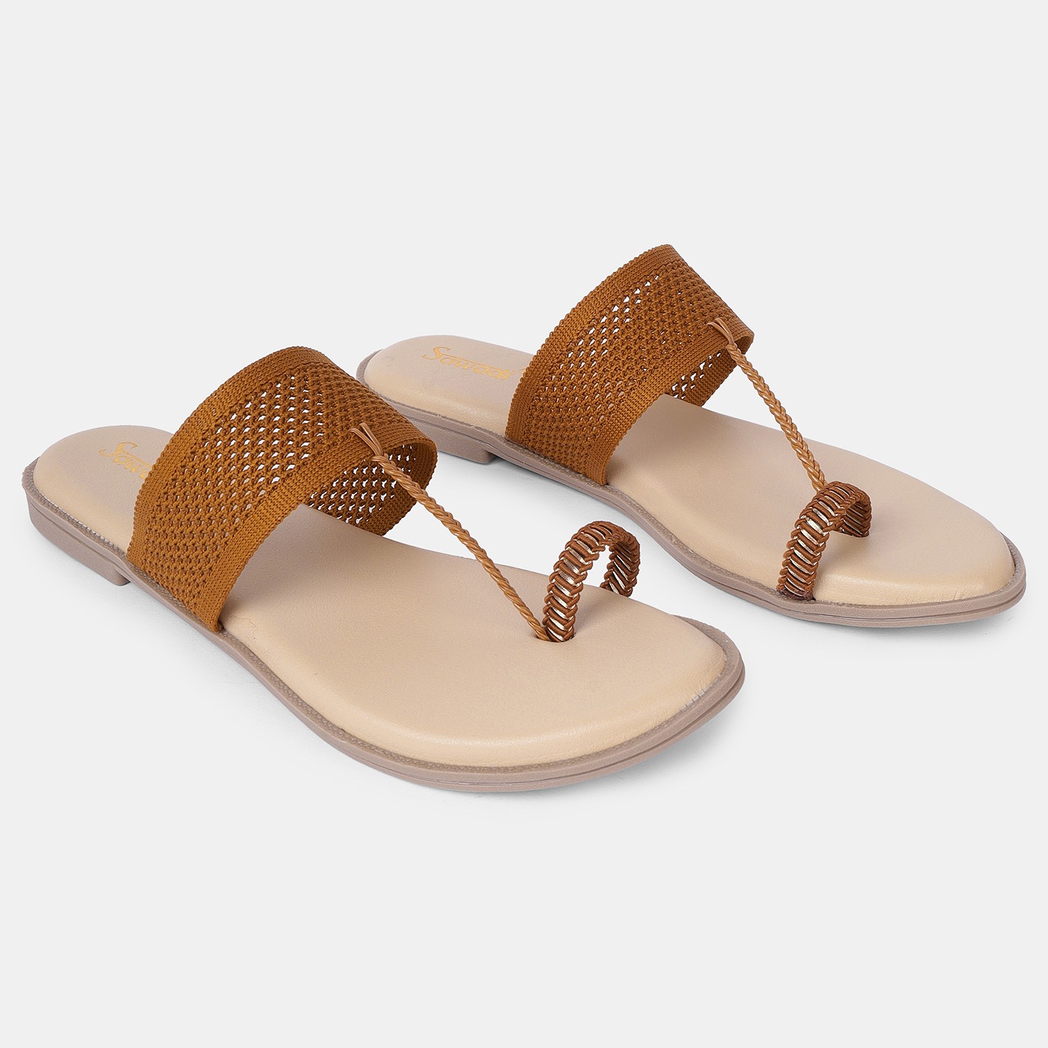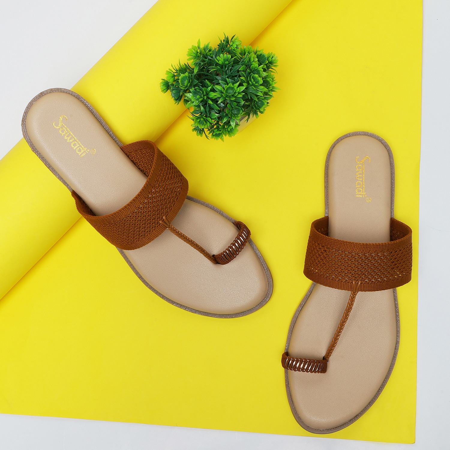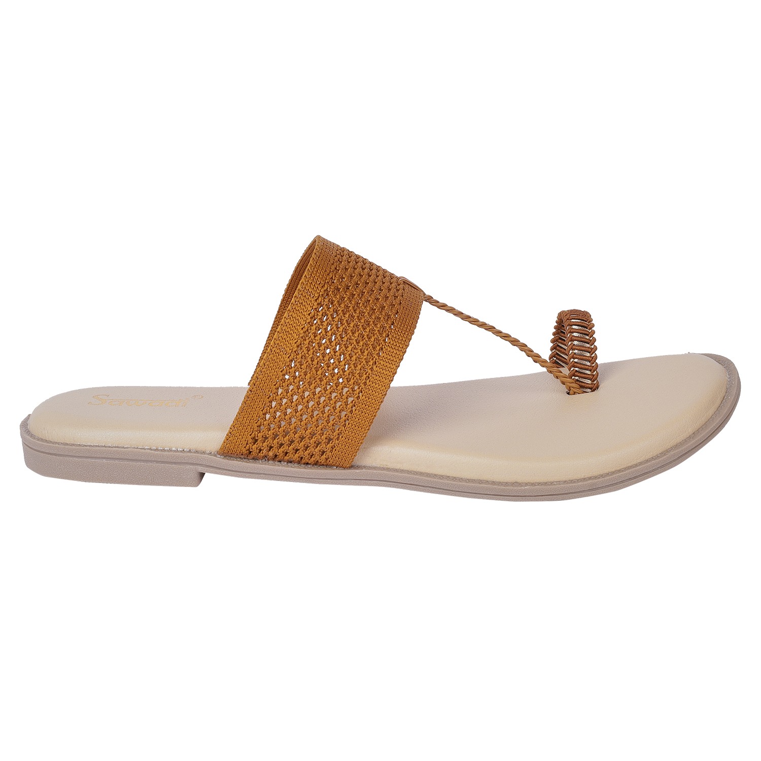 Comfortable Sawadi Tan Toe Ring Chappals for Women - Shop Stylish Flat Sandals at Sawadimart