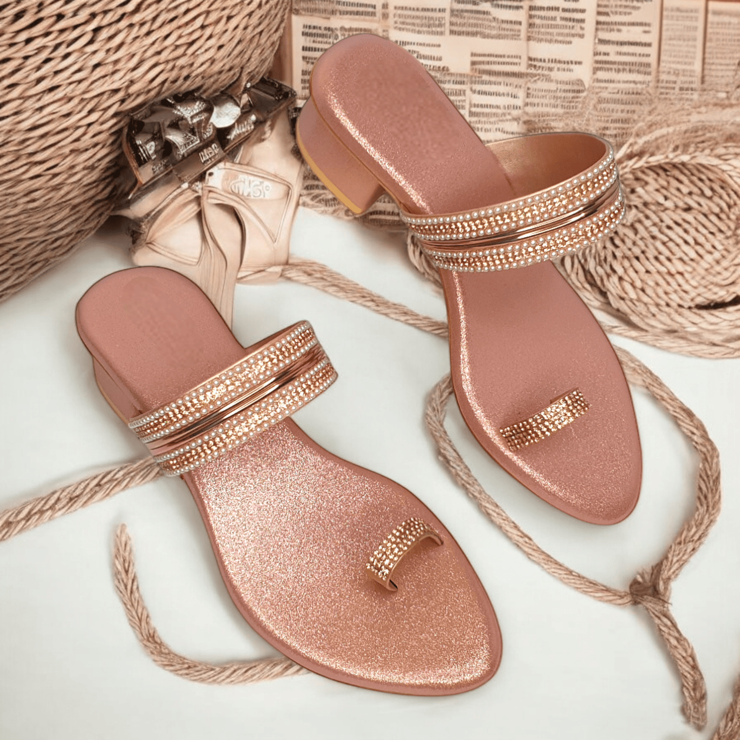 Home / Products / Elegant Rose Gold Toe Ring Block Heel Sandals Price inclusive of all tax