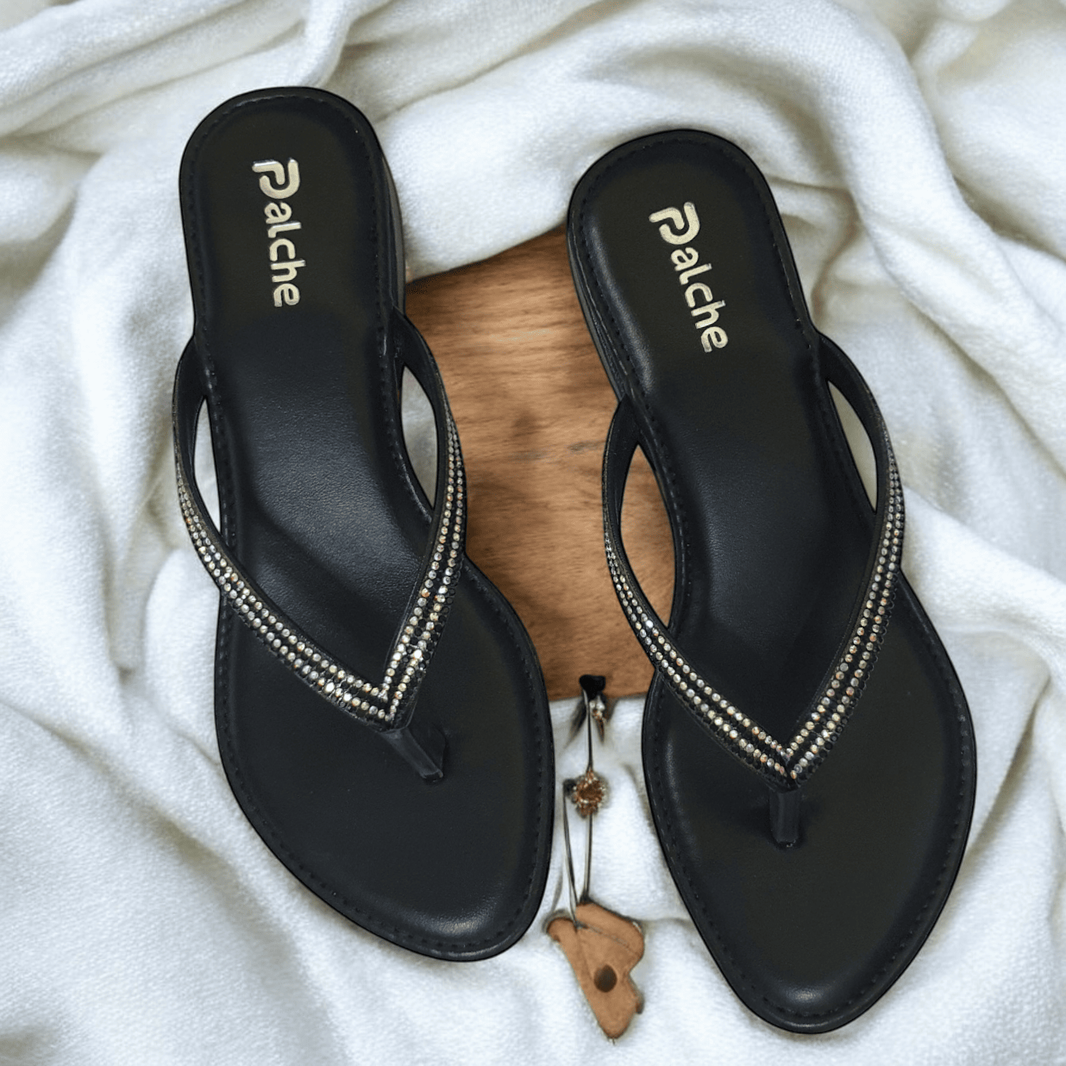 Home / Products / Elegant Black Thong Sandals with Rhinestone Detail ₹ 449 - 492