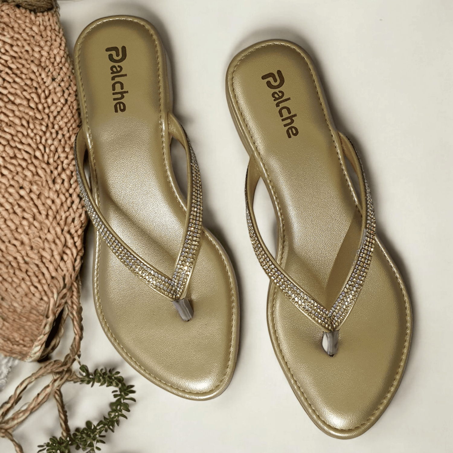 Home / Products / Elegant Gold Thong Sandals with Rhinestone Detail ₹ 449 - 492