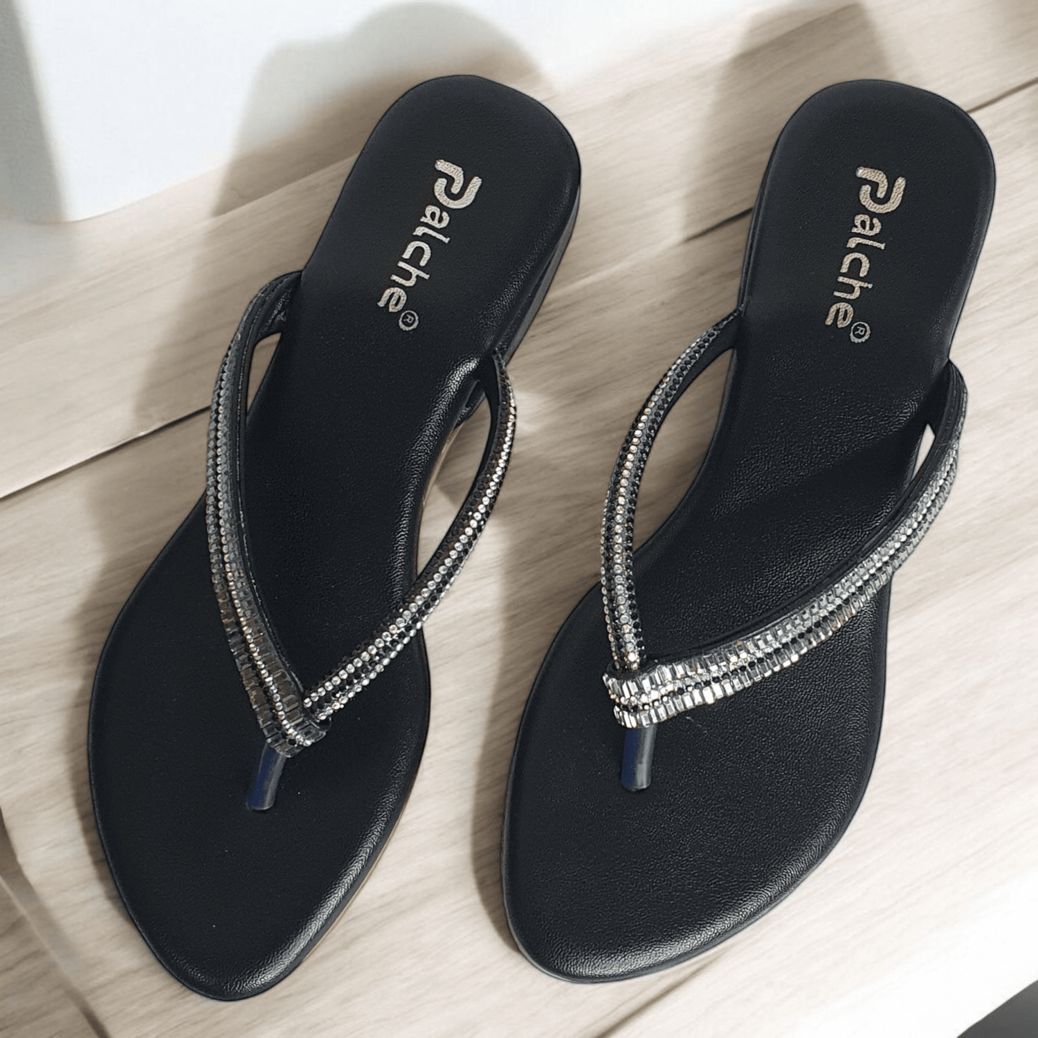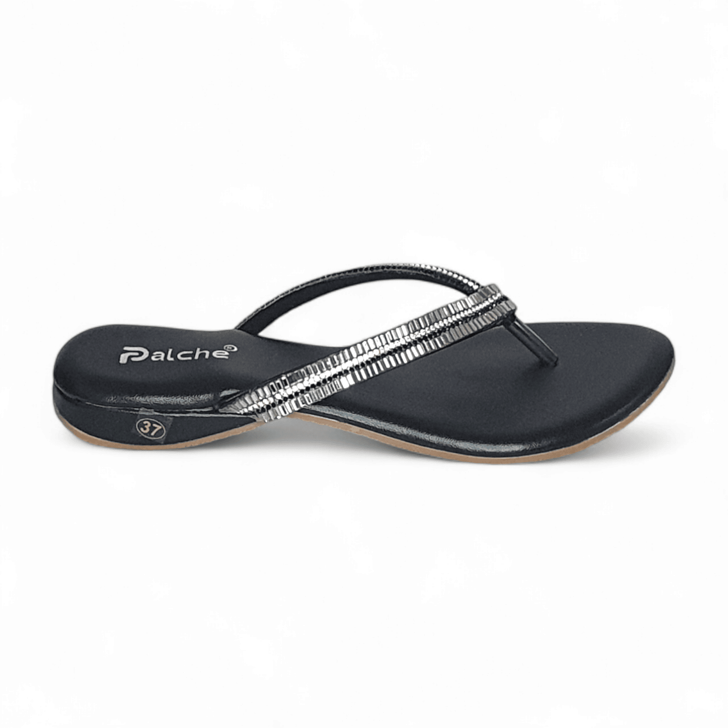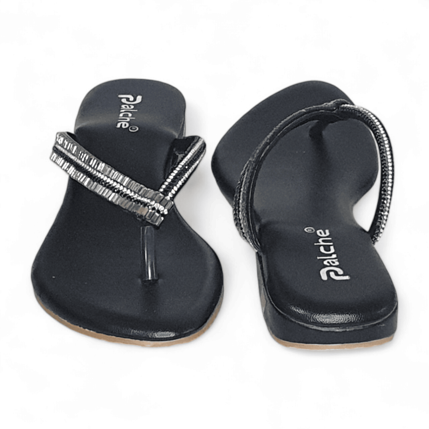 Discover glamorous black flat thong slippers with dazzling silver embellishments at SawadiMart. Perfect for adding a touch of elegance to any occasion. Shop online across India.