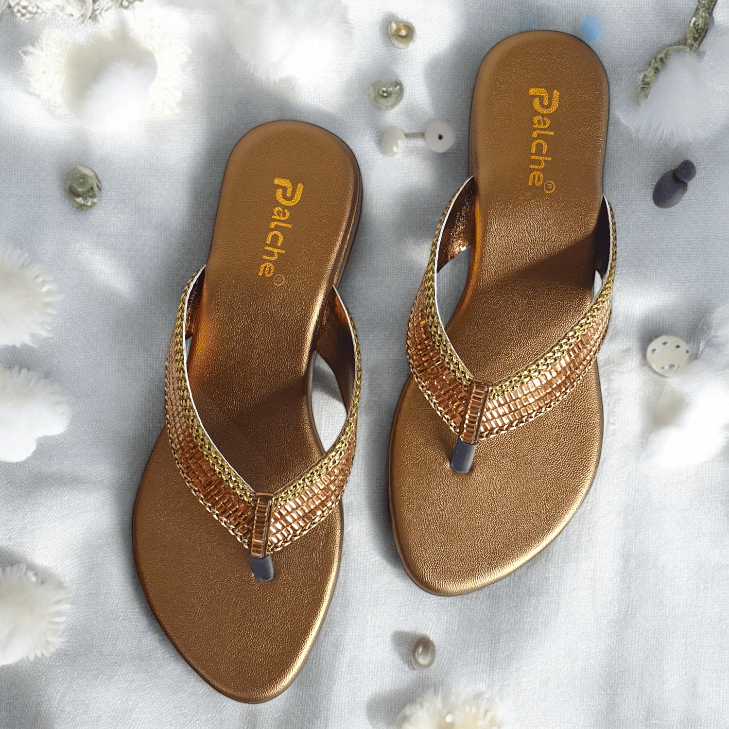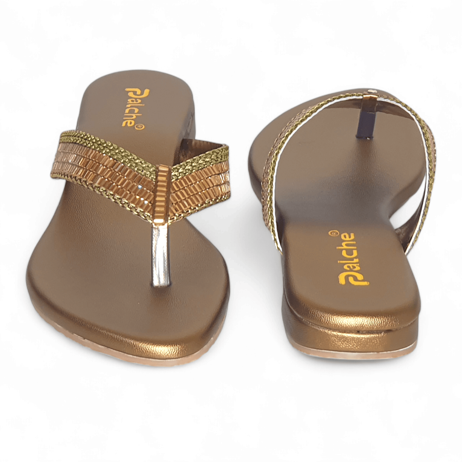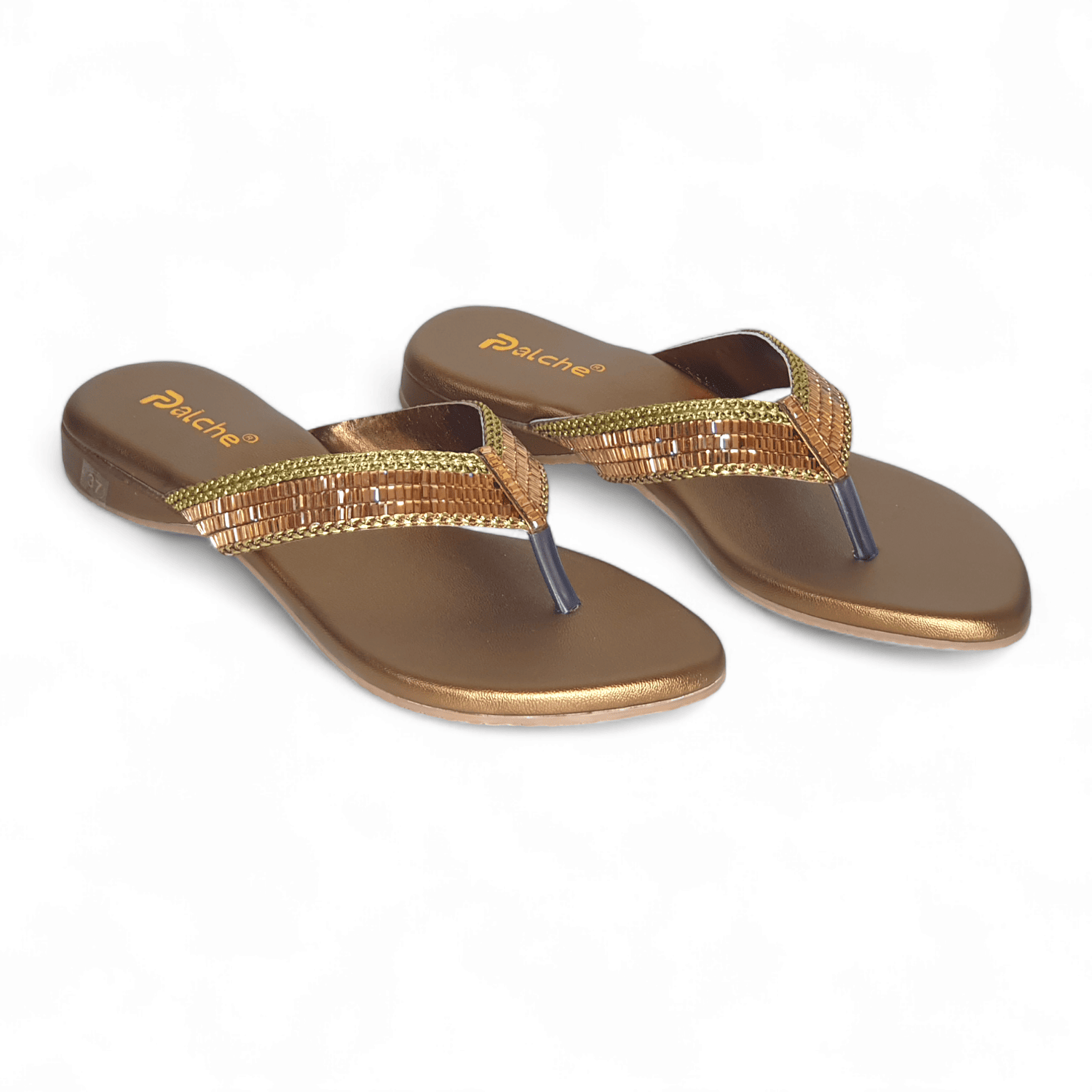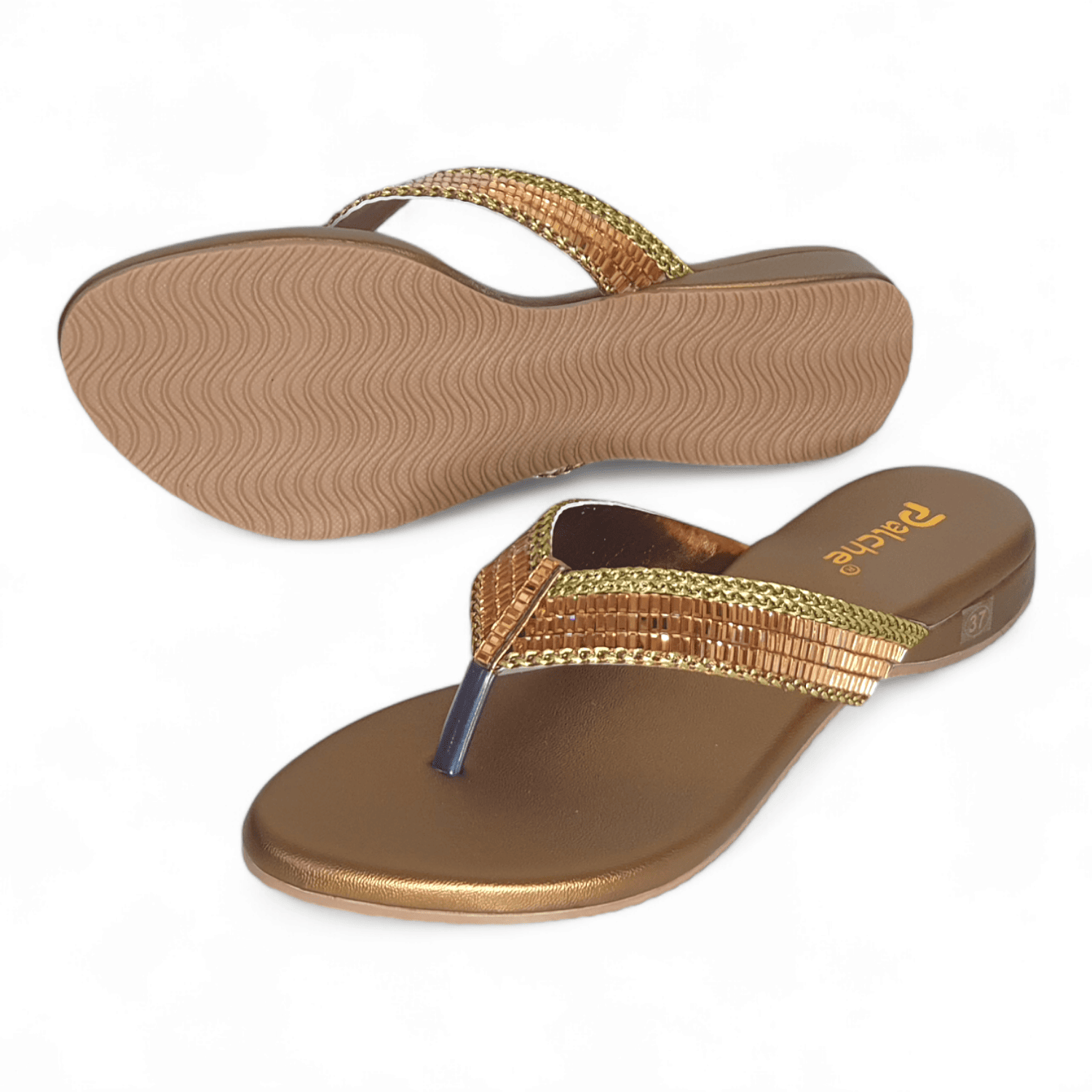 70% OFFBronze Thong Sandals with Fine Embellishment