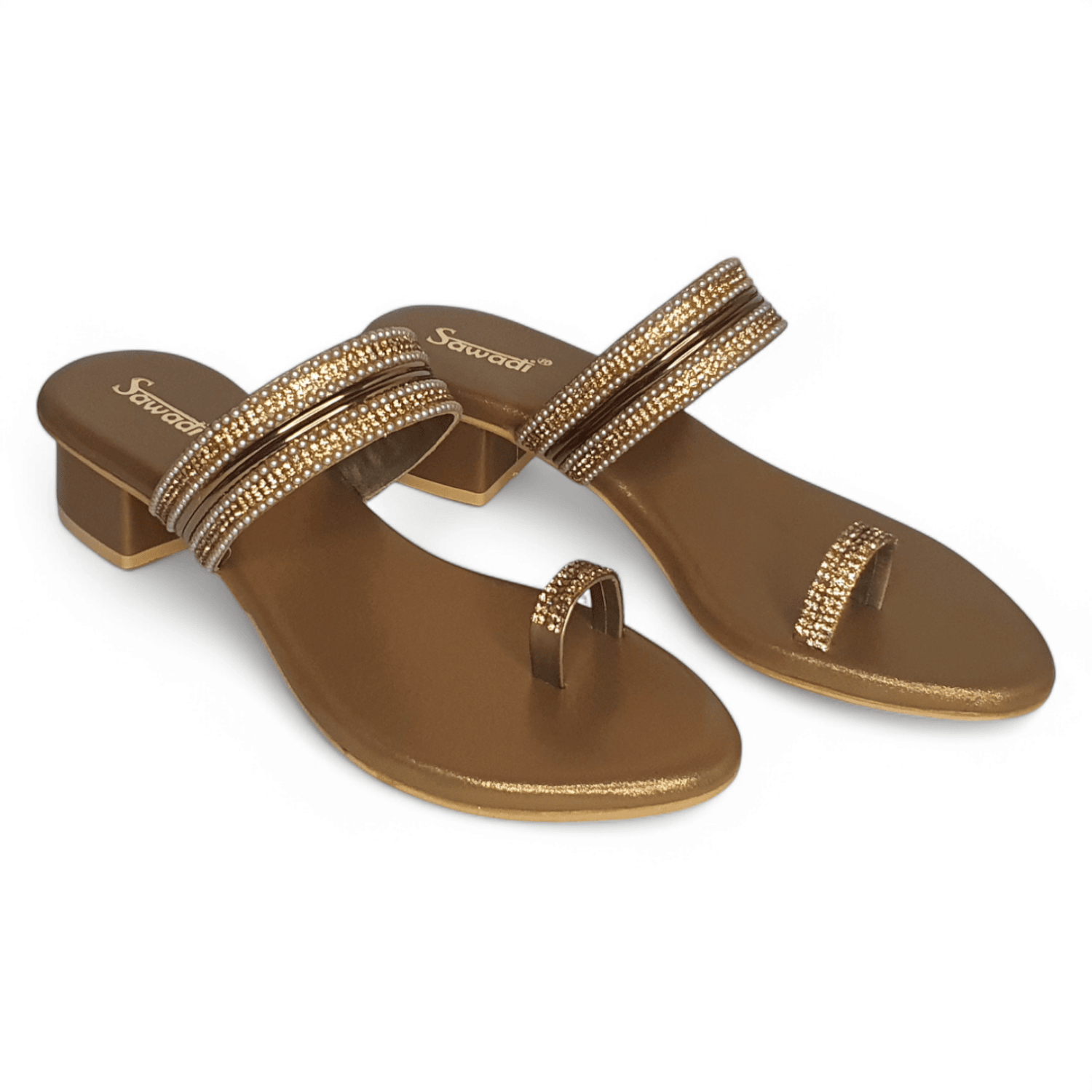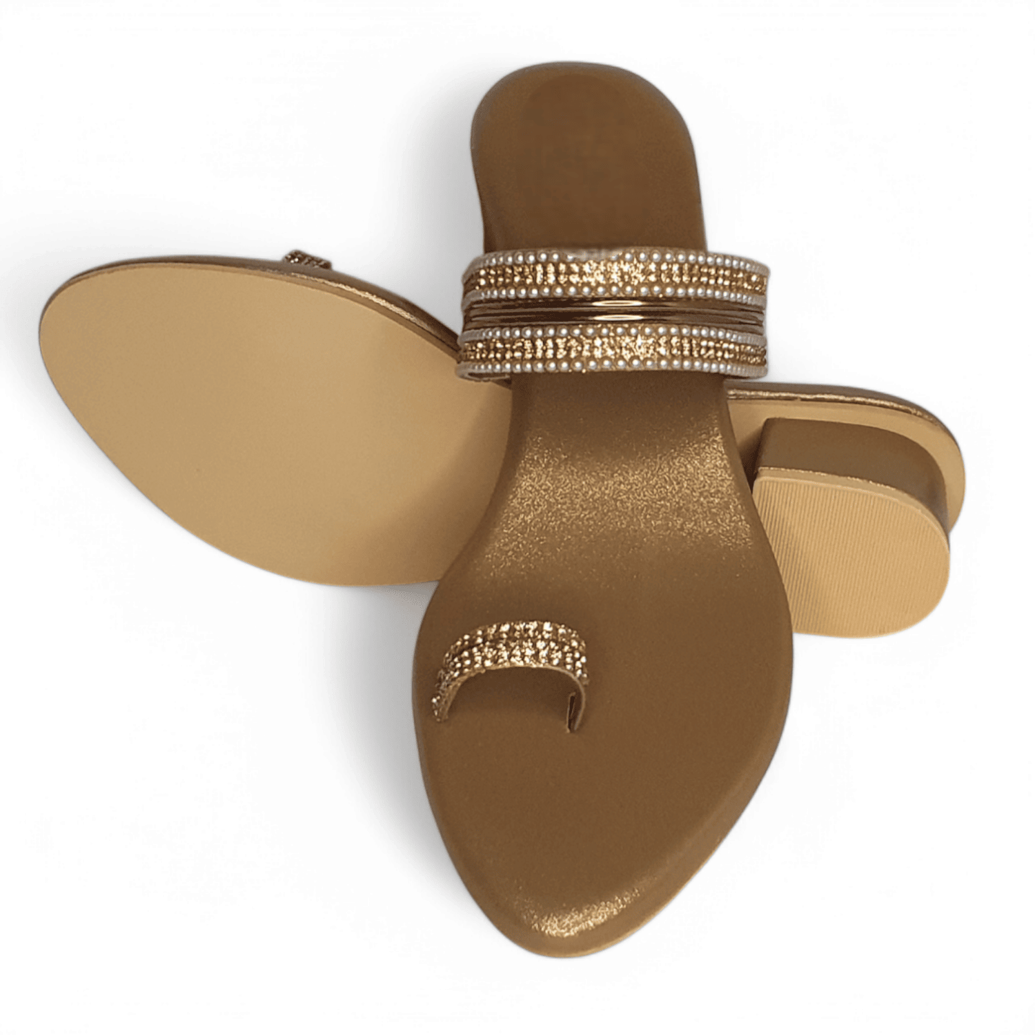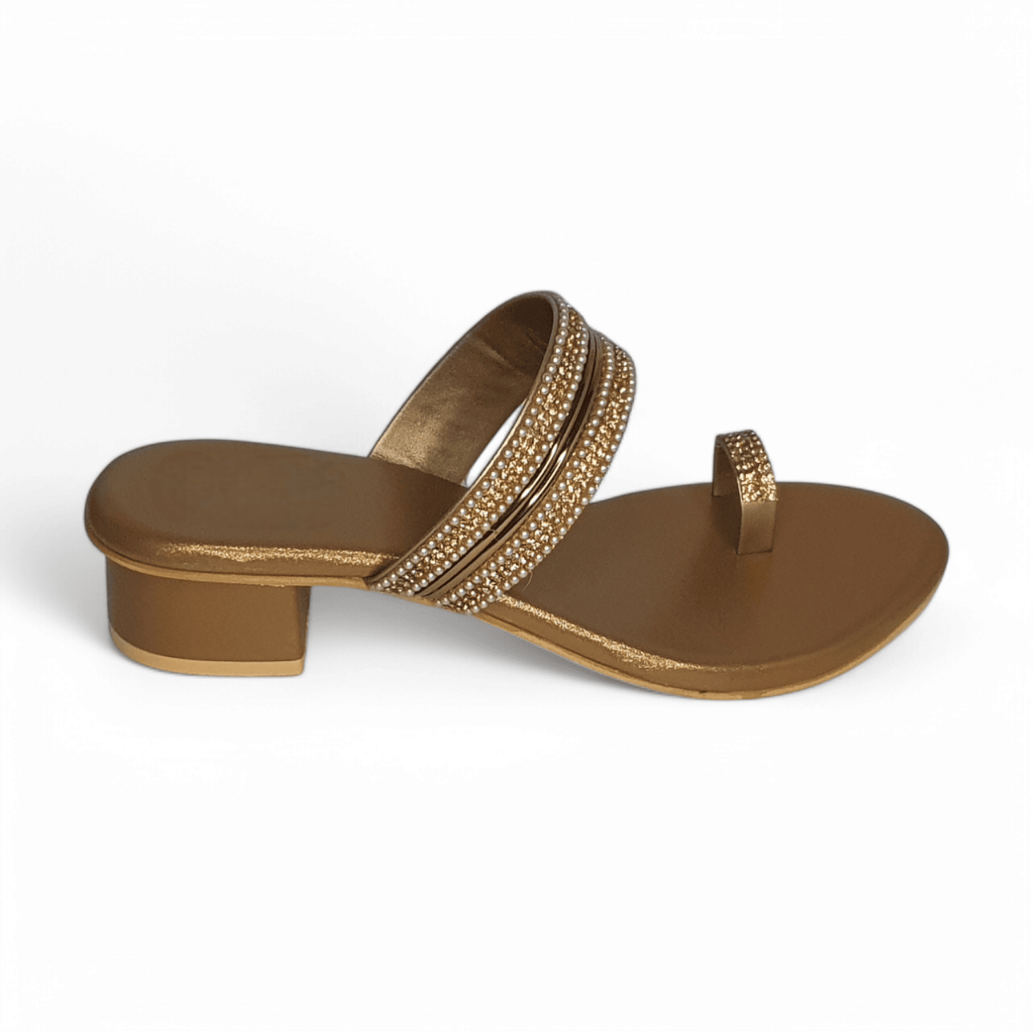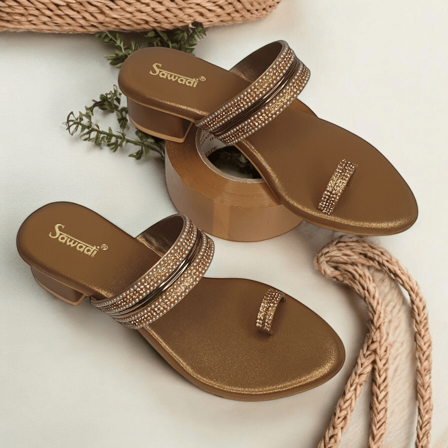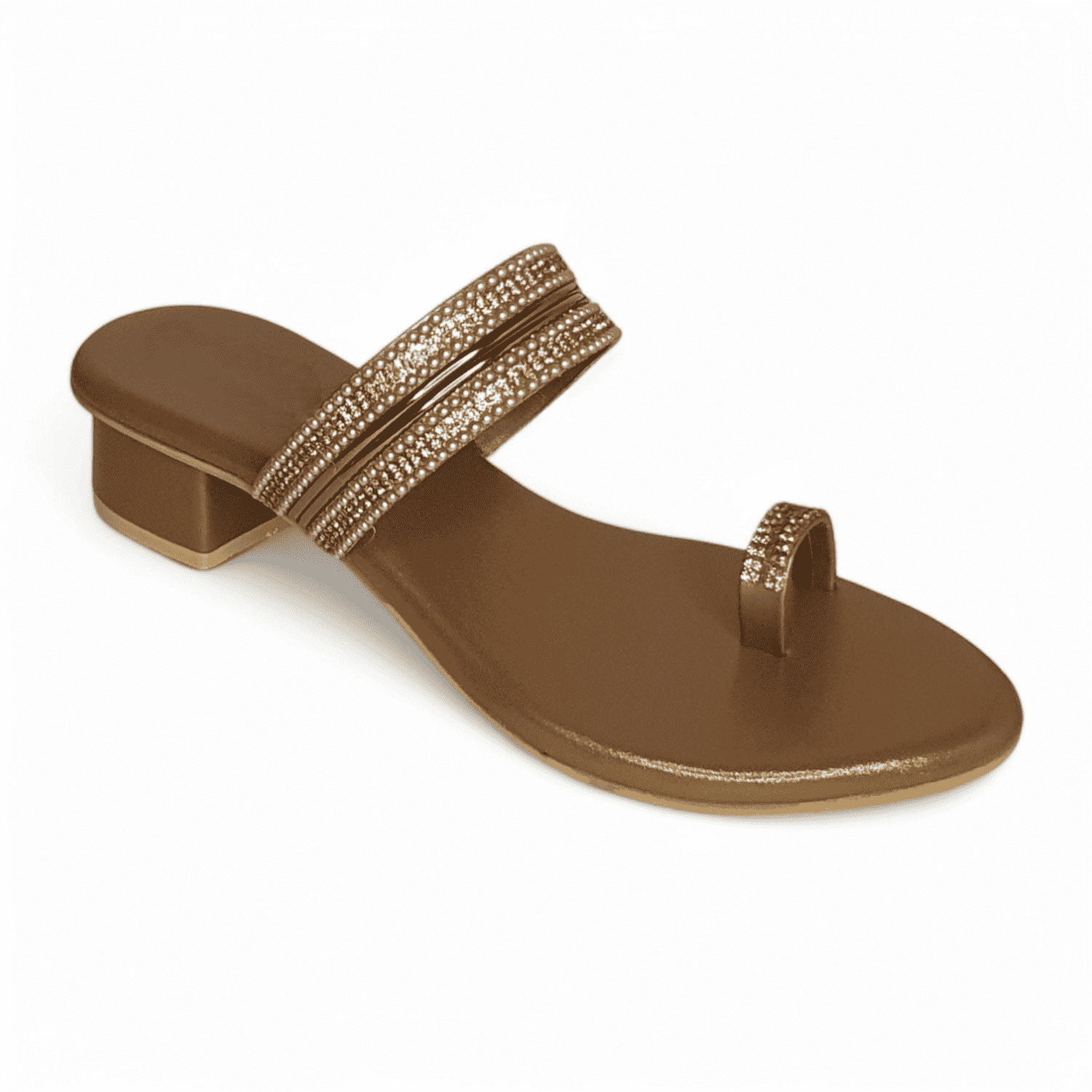 Home / Products / Elegant Tan Toe Ring Block Heel Sandals with Rhinestones