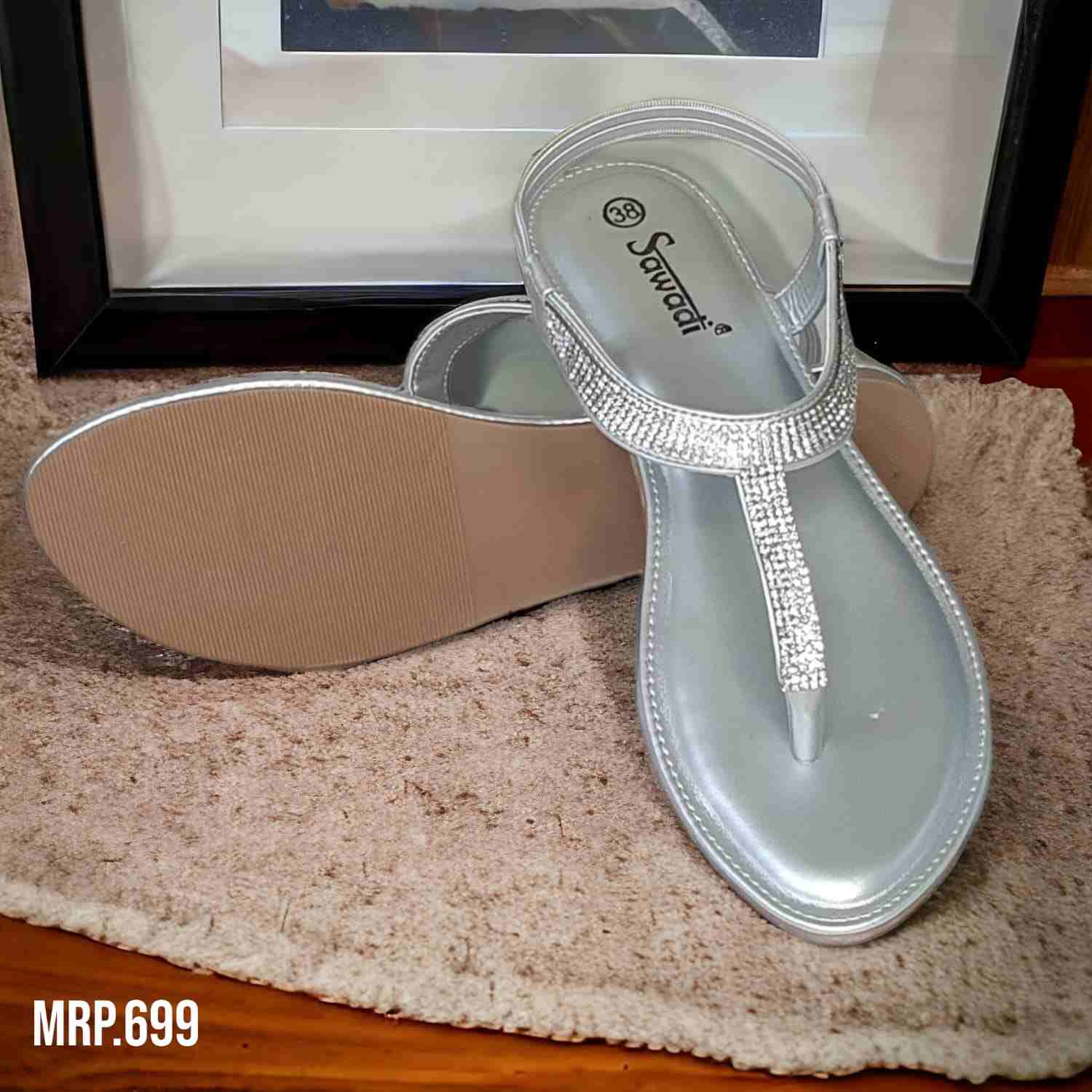 Home / Products / Women sawadi casulas and party wear flat sandals Home / Products / Women sawadi casulas and party wear flat sandals - Primary Colour : Silver