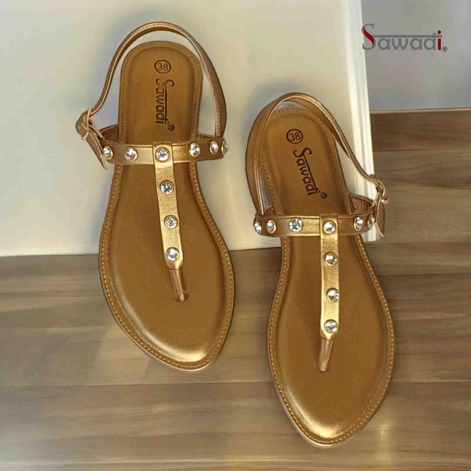 Home / Products / Women sawadi casulas and party wear flat sandals Home / Products / Women sawadi casulas and party wear flat sandals - Primary Colour : Copper