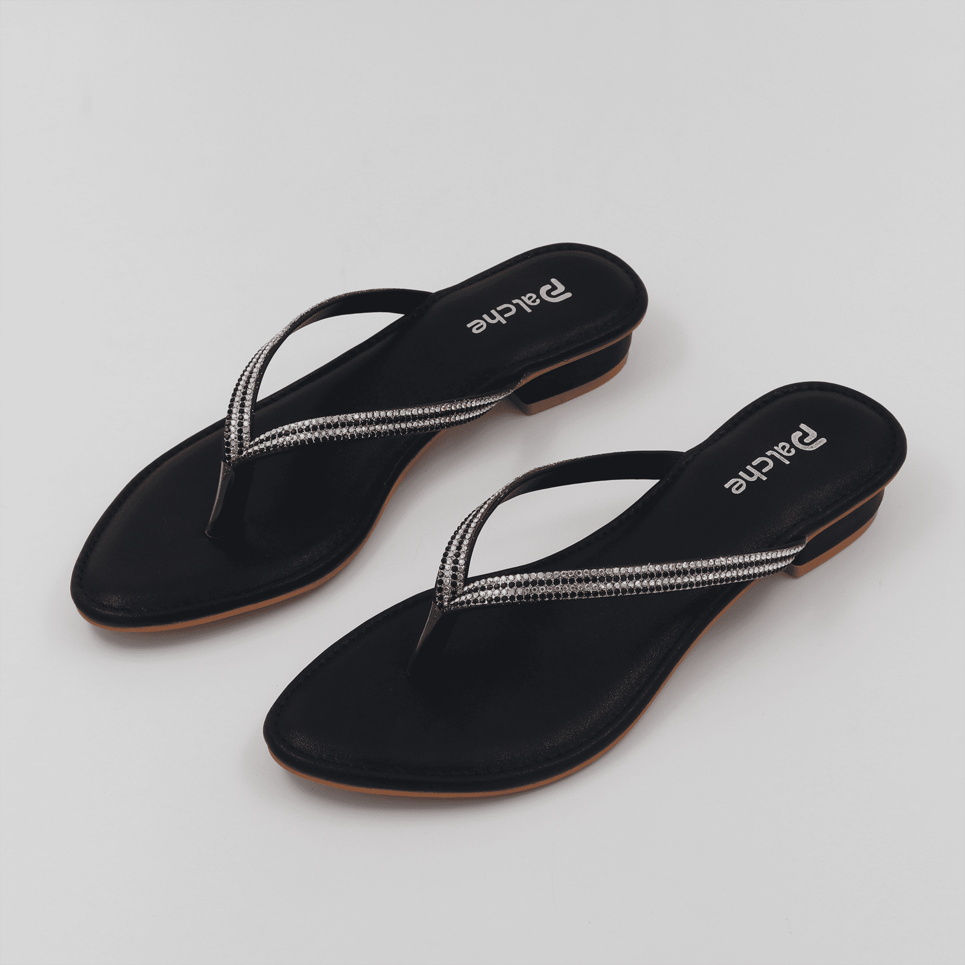 Palche Womens Elegant Rhinestone Strap Thong Flats Casual and Party Wear Sandals